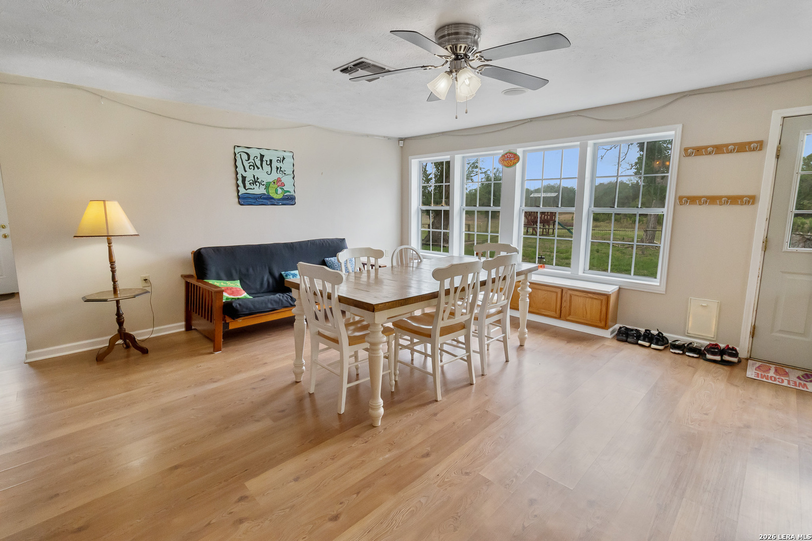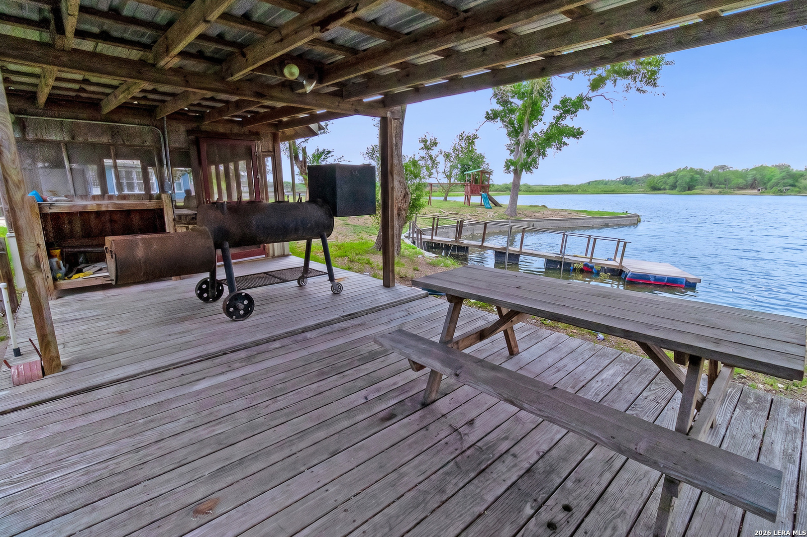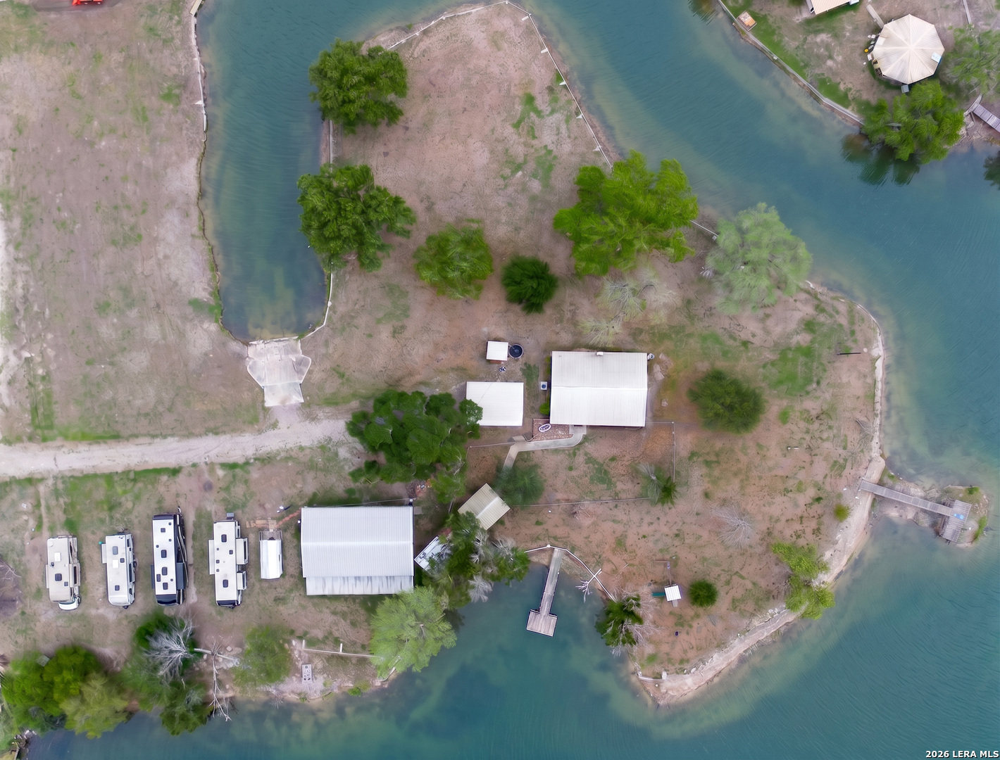 Lakefront retreat on three acres offering rare privacy, versatility, and exceptional lake access on three sides of the property. This unique waterfront setting includes a private boat ramp and a floating boat dock, as well as its own private pier/dock, providing multiple access points for future enjoyment when lake levels are present, along with the full benefit of true lakefront living in higher water conditions. The property is thoughtfully designed for recreation and entertaining with four RV hookups, including one covered RV spot, making it ideal for extended stays or hosting family and friends in comfort. A spacious 30x60 metal shop provides abundant storage for boats, jet skis, and lake equipment. A detached utility room adds convenience with laundry facilities and an additional full bathroom, perfectly suited for outdoor living and lake lifestyle needs. The 1,200 sq ft home features an open and inviting floor plan with two guest bedrooms and one full bathroom, offering a comfortable and efficient layout. A breezy screened-in porch overlooks the lake, creating a peaceful setting to relax and take in the expansive views and natural surroundings. Whether envisioned as a weekend retreat, full-time residence, or multi-use lake compound, this property delivers space, functionality, and a rare opportunity for lake living with extensive infrastructure already in place, ready to fully enjoy when the lake is at capacity.