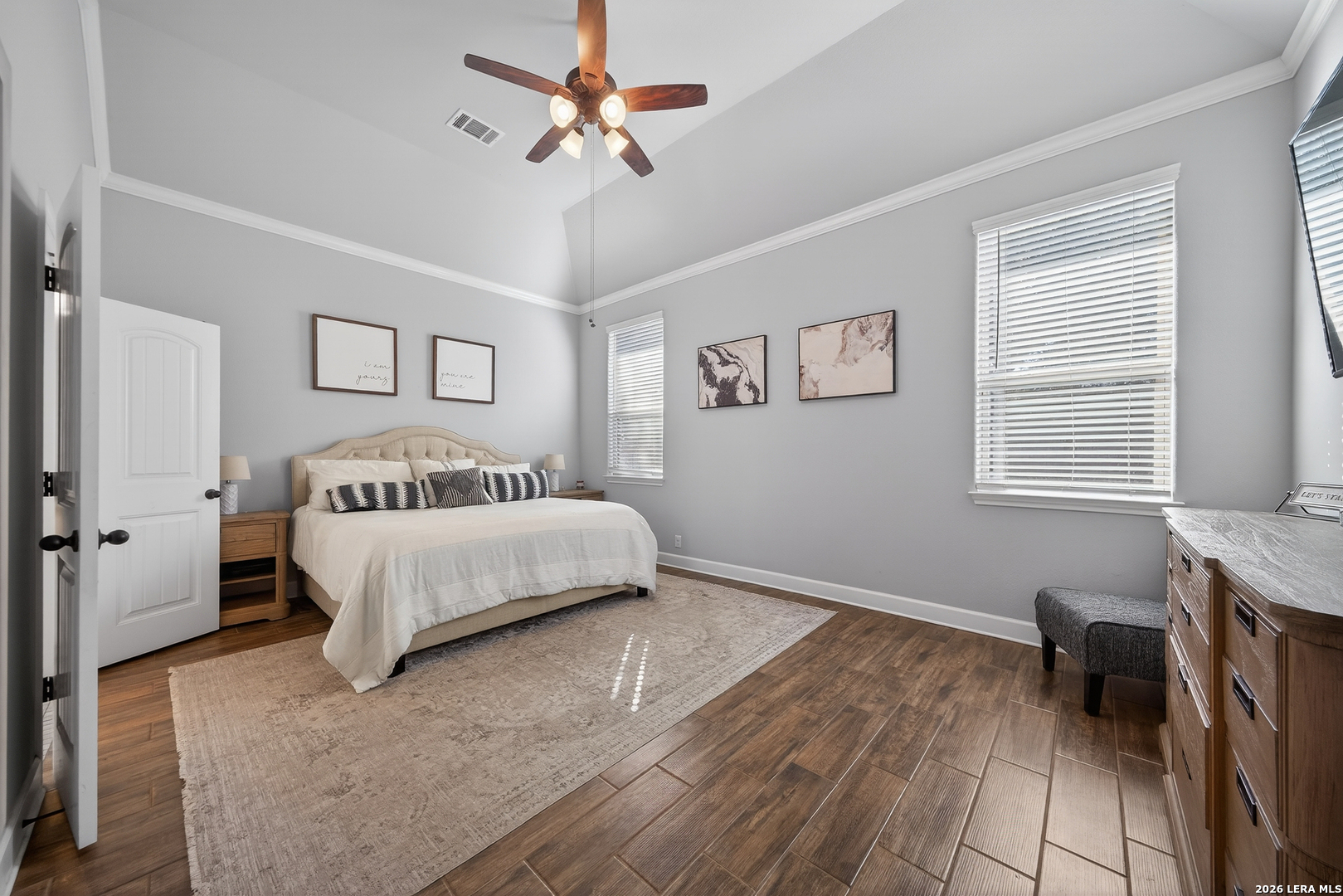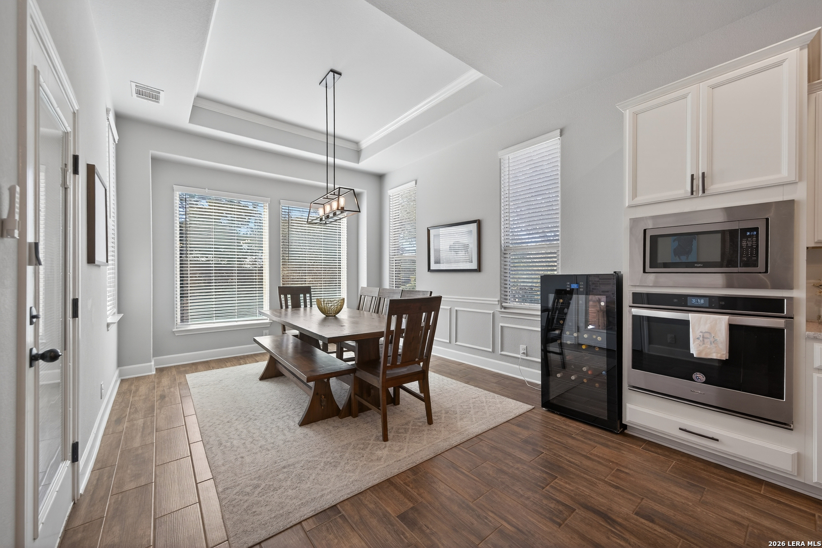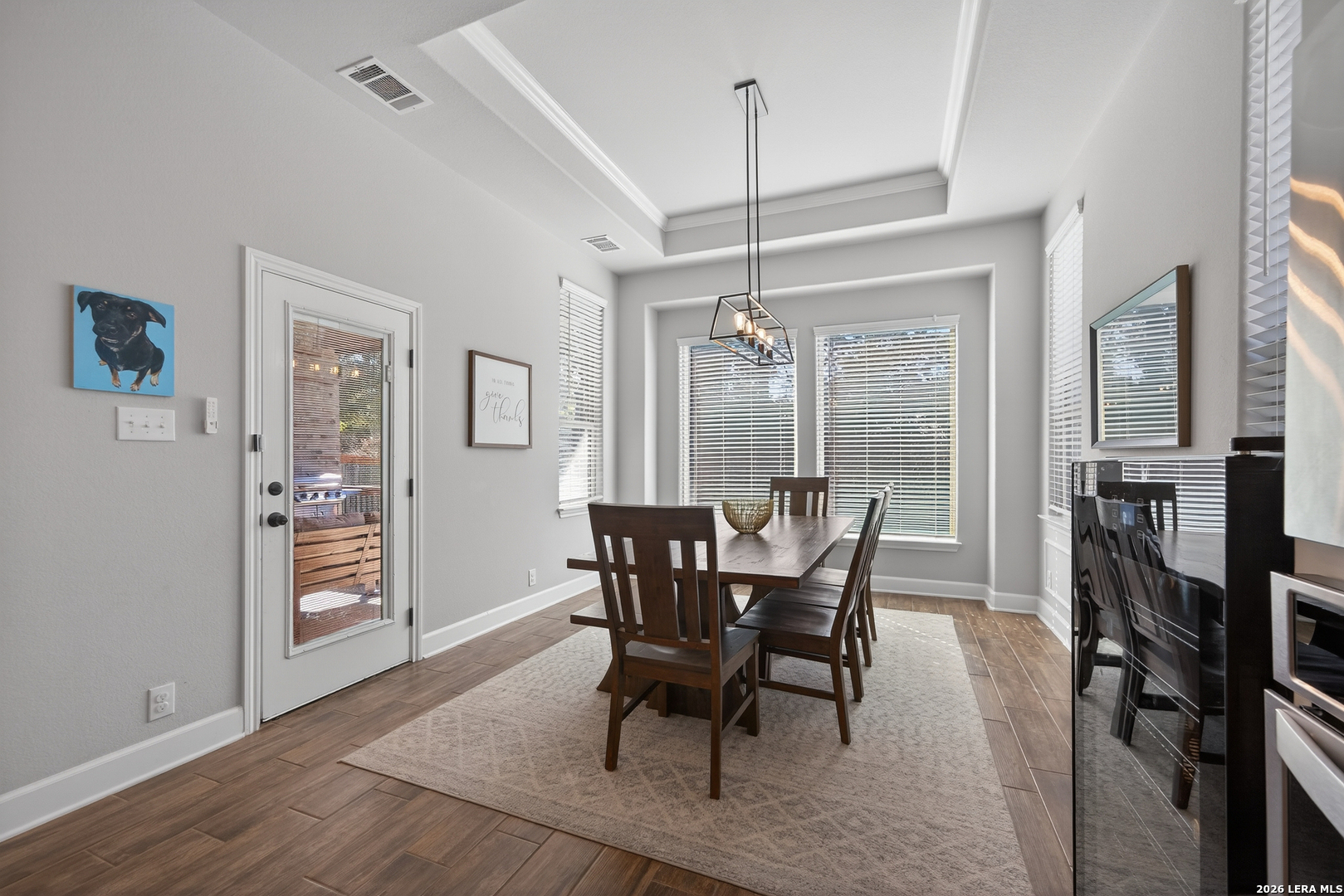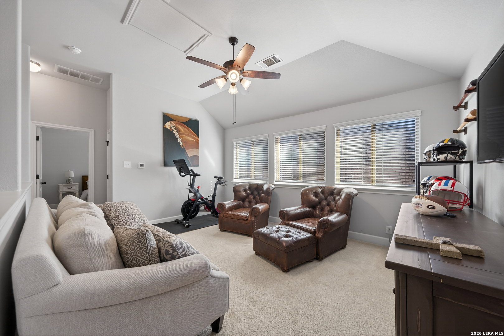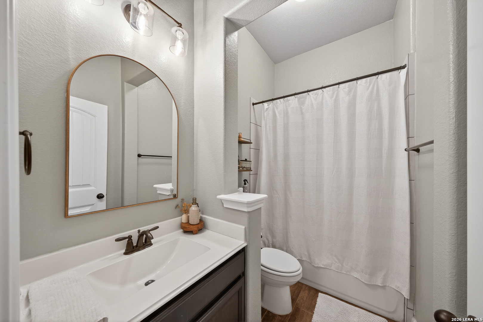 Offering 2,509 square feet of well-designed living space, this two-story brick home features an open floor plan with wood-look tile flooring throughout the main living areas and abundant natural light. The family room showcases a stone fireplace and flows seamlessly into the kitchen and dining area. The kitchen is equipped with a large island, ample cabinetry, walk-in pantry, built-in oven and microwave, built-in gas cooktop, dishwasher, and a white tile backsplash. The primary bedroom includes a full bath with separate vanities, a garden tub, and a walk-in shower. In total, the home offers four bedrooms, with the fourth bedroom located upstairs alongside a spacious loft, creating a private retreat ideal for guests or additional living space. Exterior features include mature trees, a sprinkler system, privacy fencing, and a covered patio for outdoor enjoyment. The property also offers excellent garage flexibility with a front-entry two-car garage and an additional side-entry one-car garage. Located within the gated Front Gate community in Fair Oaks Ranch, this home combines space, function, and privacy in the Texas Hill Country