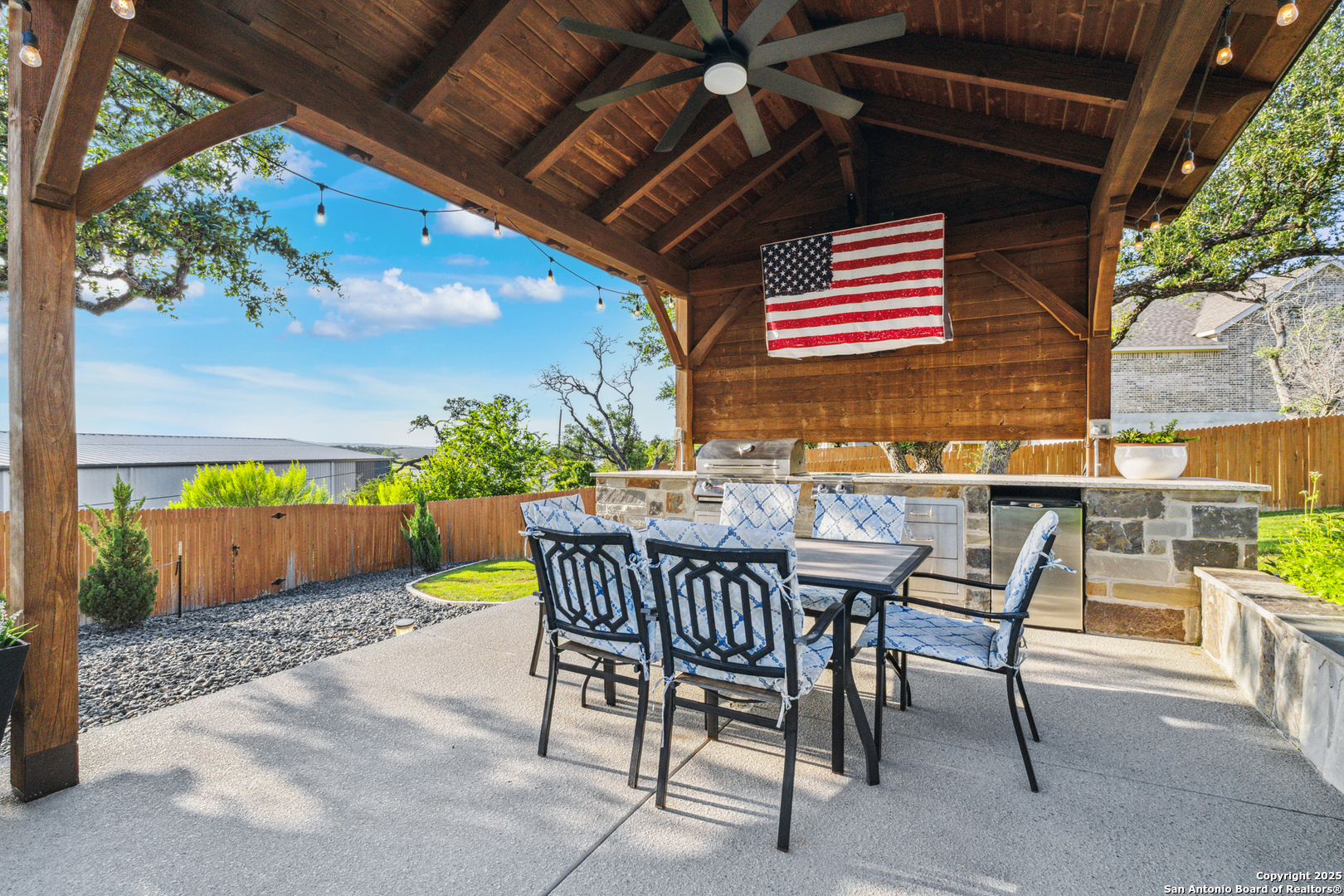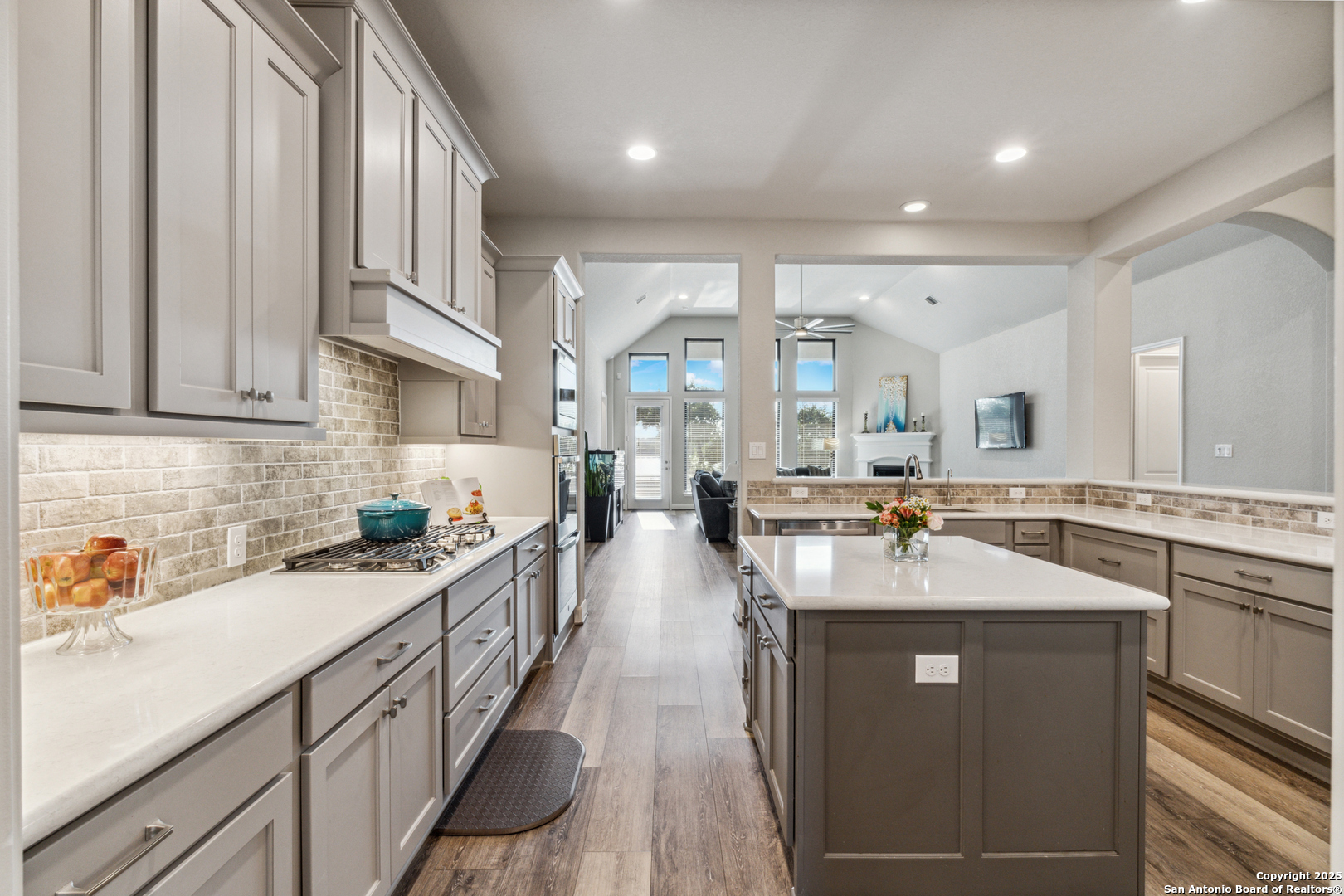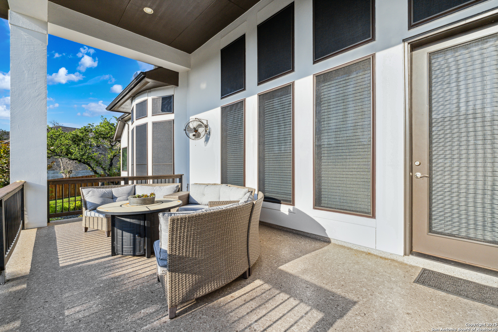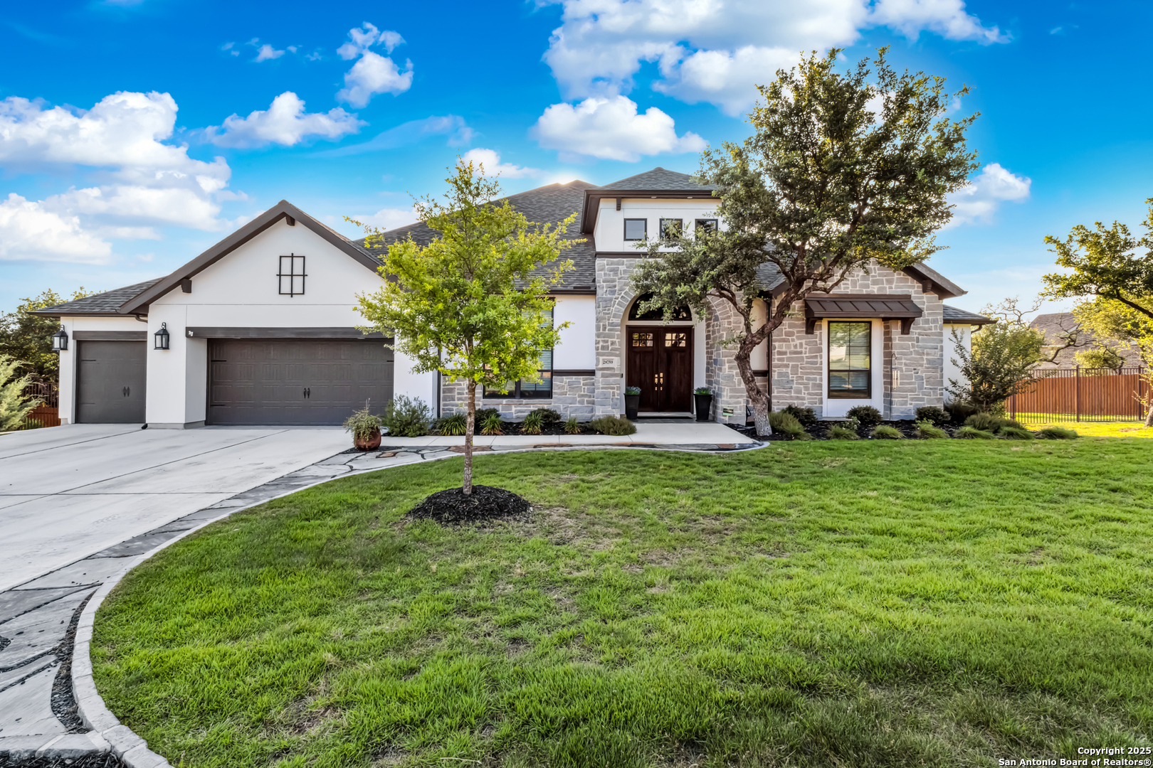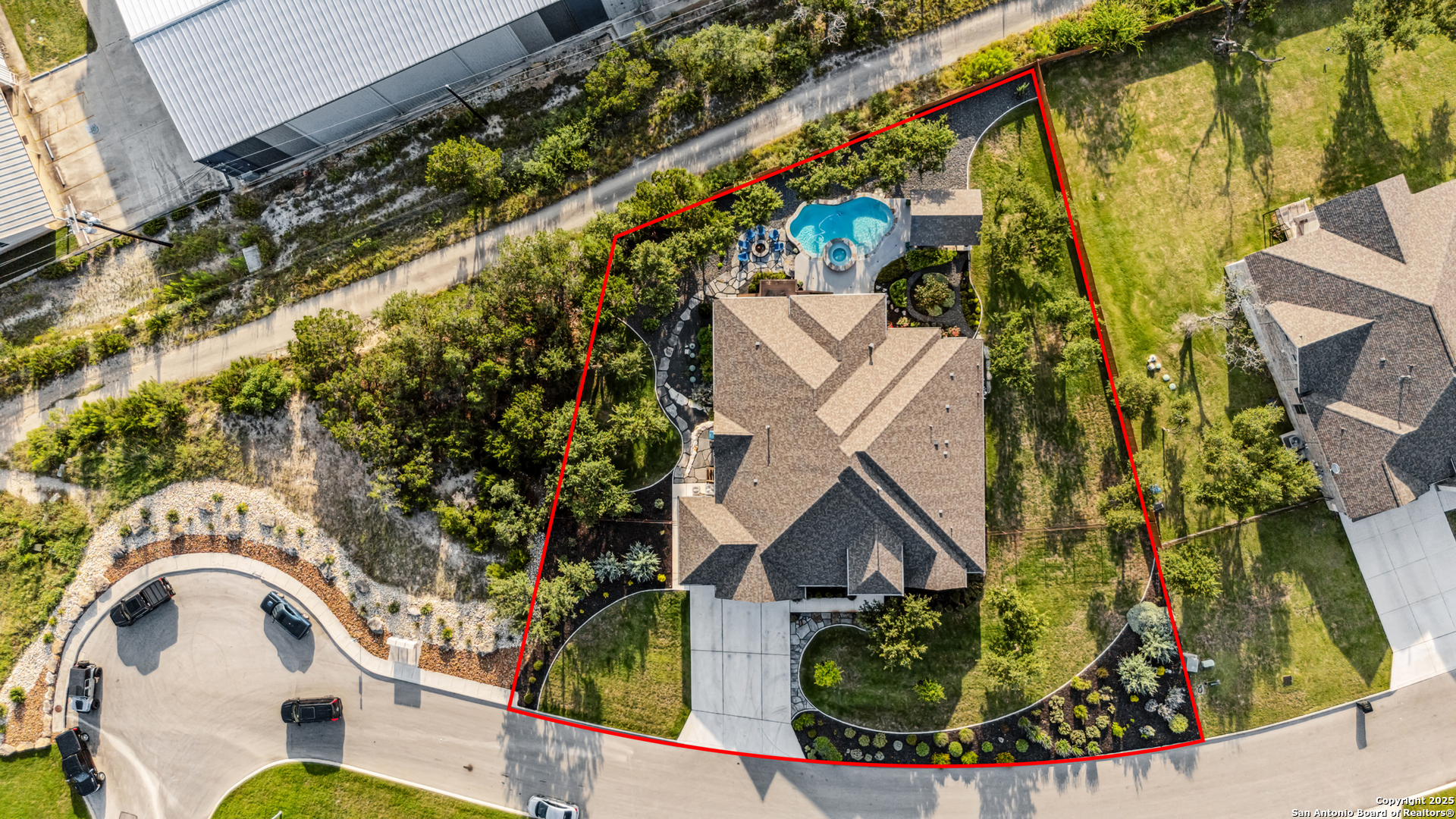 Welcome to the coveted Balcones Creek gated community in Boerne, where elegance, comfort, and exceptional craftsmanship come together in a truly one-of-a-kind home. From the moment you arrive, you'll be impressed by the meticulous attention to detail from the grand curb appeal to the thoughtfully designed interior spaces and 5 car garage with epoxy floors and overhead storage. Inside, expansive living areas are highlighted by soaring ceilings, luxury vinyl plank flooring, and a seamless flow that's perfect for everyday living and entertaining. Each oversized bedroom offers walk-in closets. The chef's kitchen includes a large walk-in pantry and cabinet lighting. The media room is a standout with double insulation and solid doors for an immersive theater experience. A hidden safe room adds a unique layer of security and functionality. Step outside to your half-acre personal resort, where more than $300K of professional xeriscaping and hardscaping create the ultimate outdoor retreat with bee and butterfly conservation in mind. Entertain in style with a custom-built pool, relaxing hot tub, fully equipped outdoor kitchen, cozy firepit, and a spacious covered patio providing generous gathering areas for all your guests. The home backs to Boerne Stage Airfield, a private airport serving local pilots and small aircraft with fixed-base operations and occasional community events. A service road separates the property from the airfield, and the home has been thoughtfully insulated for sound, offering peace and quiet while enjoying a truly unique setting. Learn more at boernestageairfield dot com. With timeless style, thoughtful upgrades, and unmatched outdoor living, this home is a true Hill Country masterpiece.