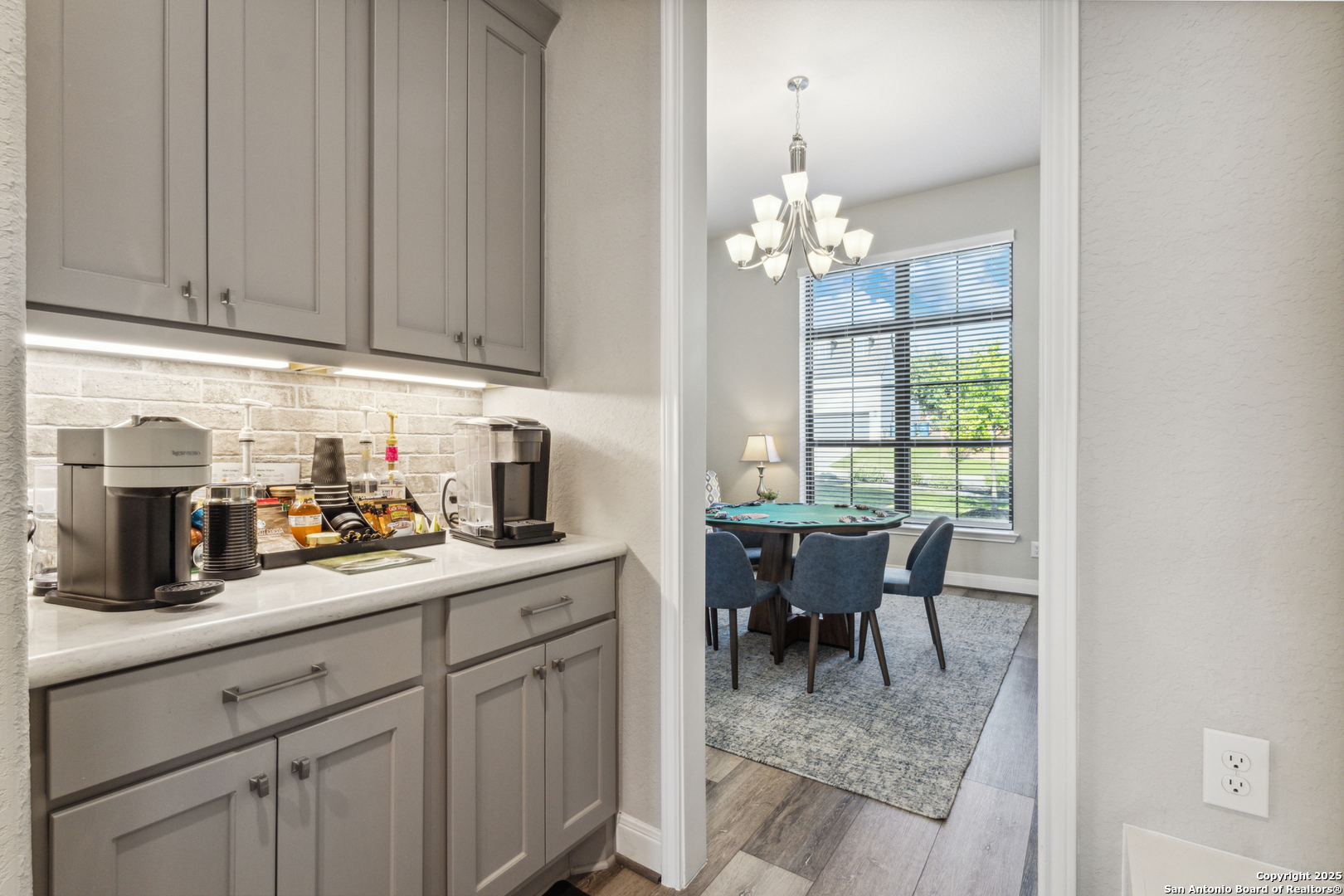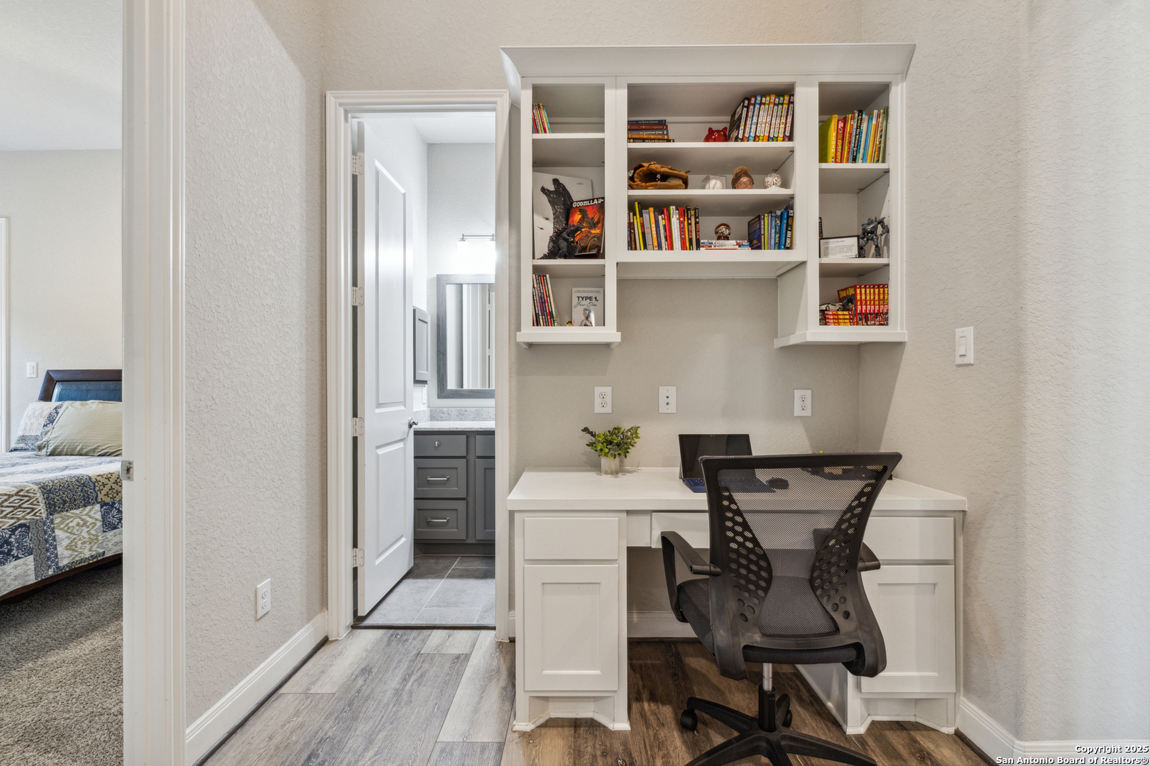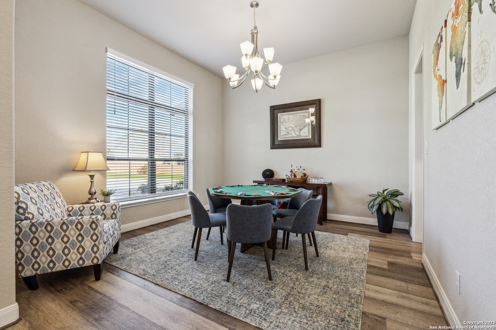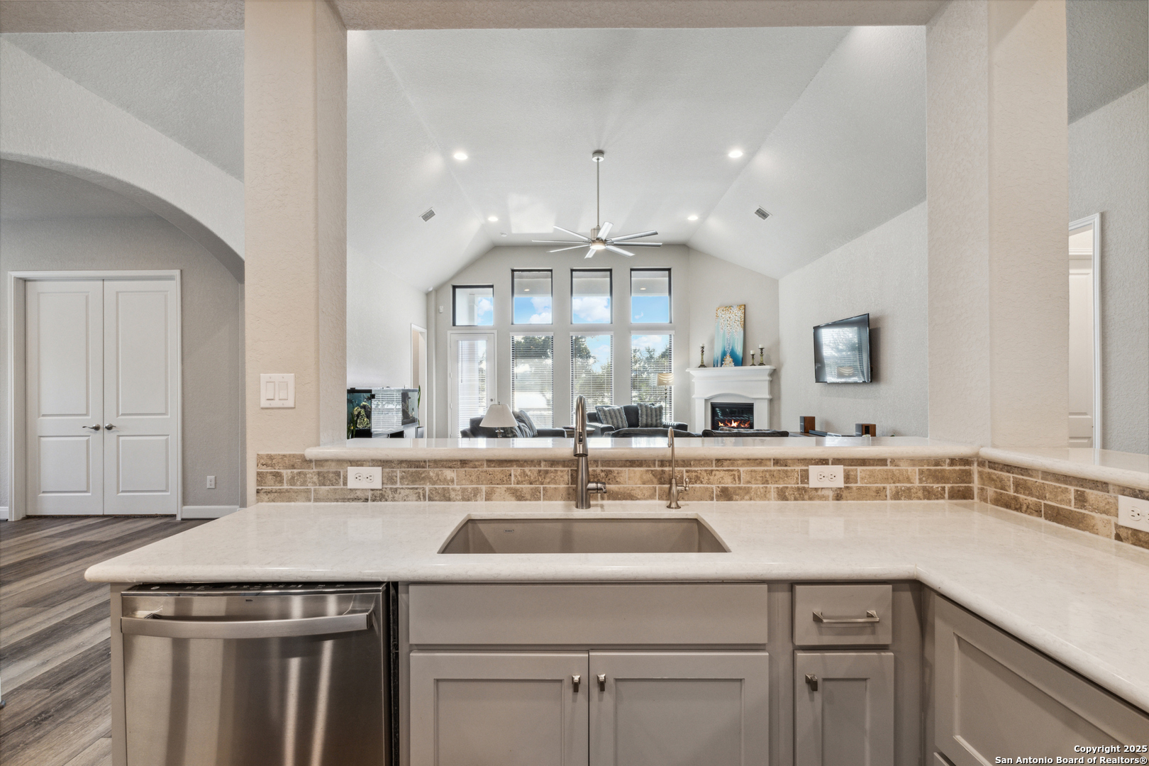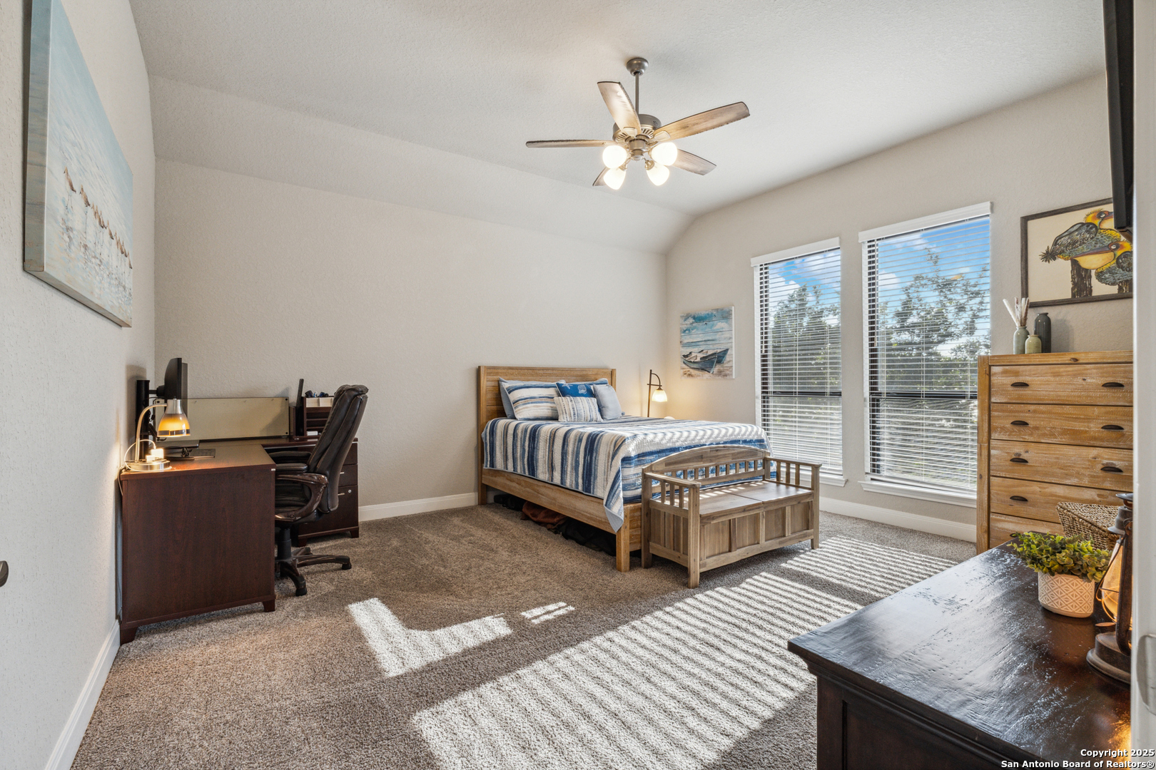 Welcome to the coveted Balcones Creek gated community in Boerne, where elegance, comfort, and exceptional craftsmanship come together in a truly one-of-a-kind home. From the moment you arrive, you'll be impressed by the meticulous attention to detail from the grand curb appeal to the thoughtfully designed interior spaces and 5 car garage with epoxy floors and overhead storage. Inside, expansive living areas are highlighted by soaring ceilings, luxury vinyl plank flooring, and a seamless flow that's perfect for everyday living and entertaining. Each oversized bedroom offers walk-in closets. The chef's kitchen includes a large walk-in pantry and cabinet lighting. The media room is a standout with double insulation and solid doors for an immersive theater experience. A hidden safe room adds a unique layer of security and functionality. Step outside to your half-acre personal resort, where more than $300K of professional xeriscaping and hardscaping create the ultimate outdoor retreat with bee and butterfly conservation in mind. Entertain in style with a custom-built pool, relaxing hot tub, fully equipped outdoor kitchen, cozy firepit, and a spacious covered patio providing generous gathering areas for all your guests. The home backs to Boerne Stage Airfield, a private airport serving local pilots and small aircraft with fixed-base operations and occasional community events. A service road separates the property from the airfield, and the home has been thoughtfully insulated for sound, offering peace and quiet while enjoying a truly unique setting. Learn more at boernestageairfield dot com. With timeless style, thoughtful upgrades, and unmatched outdoor living, this home is a true Hill Country masterpiece.