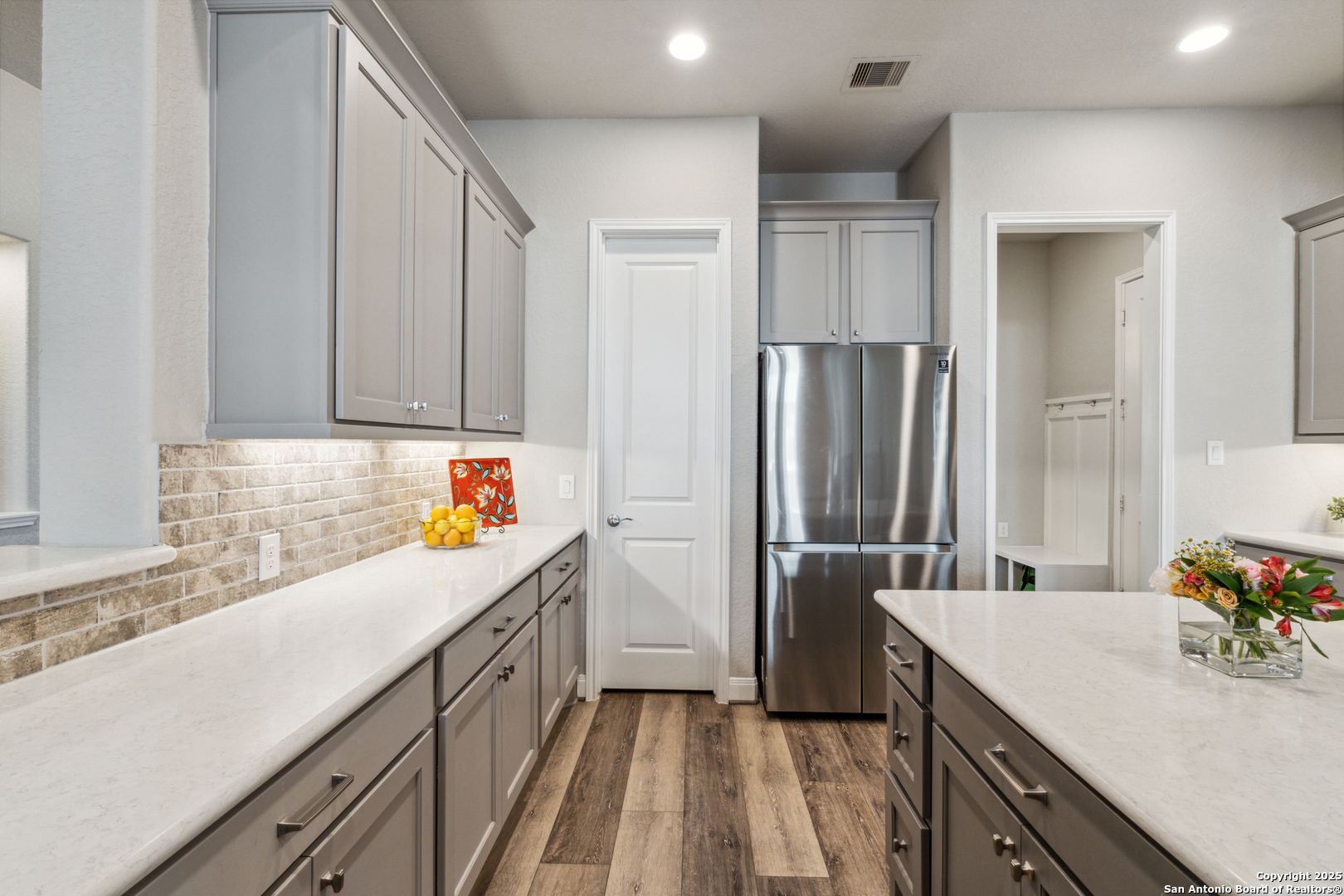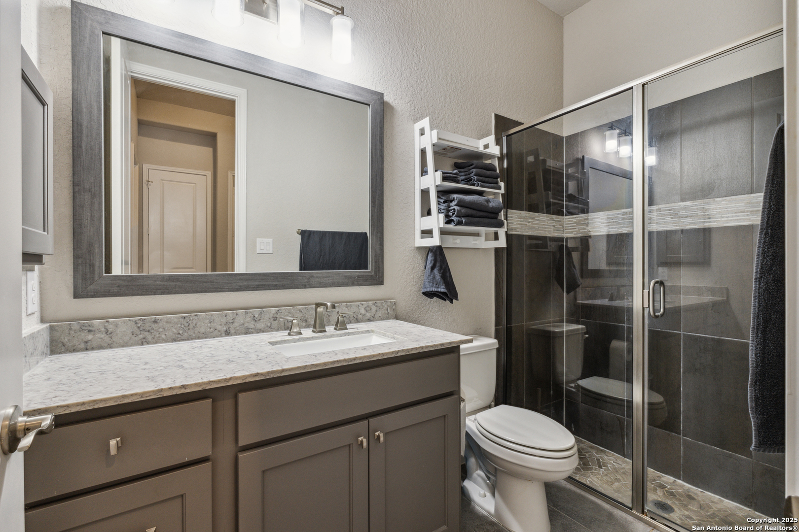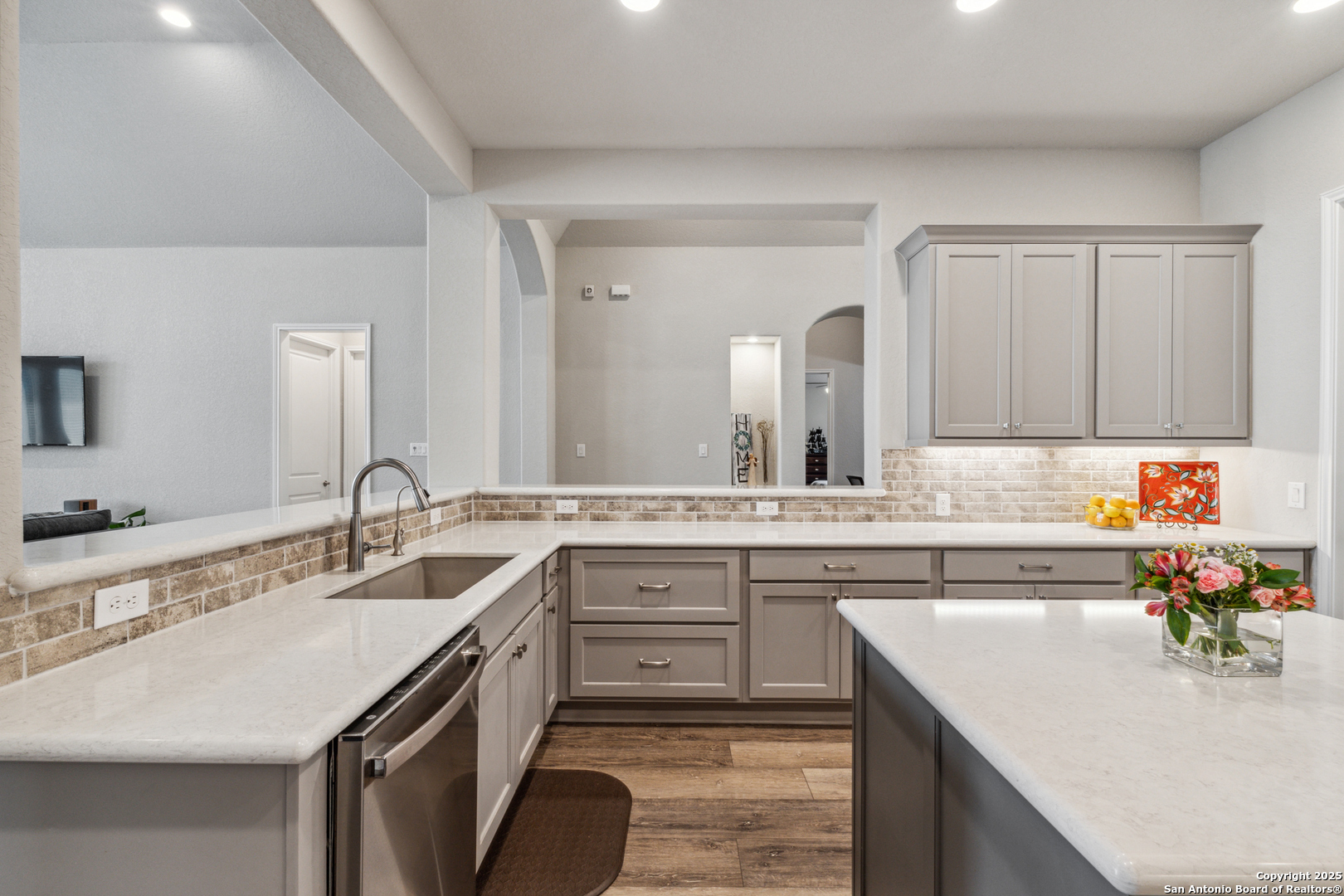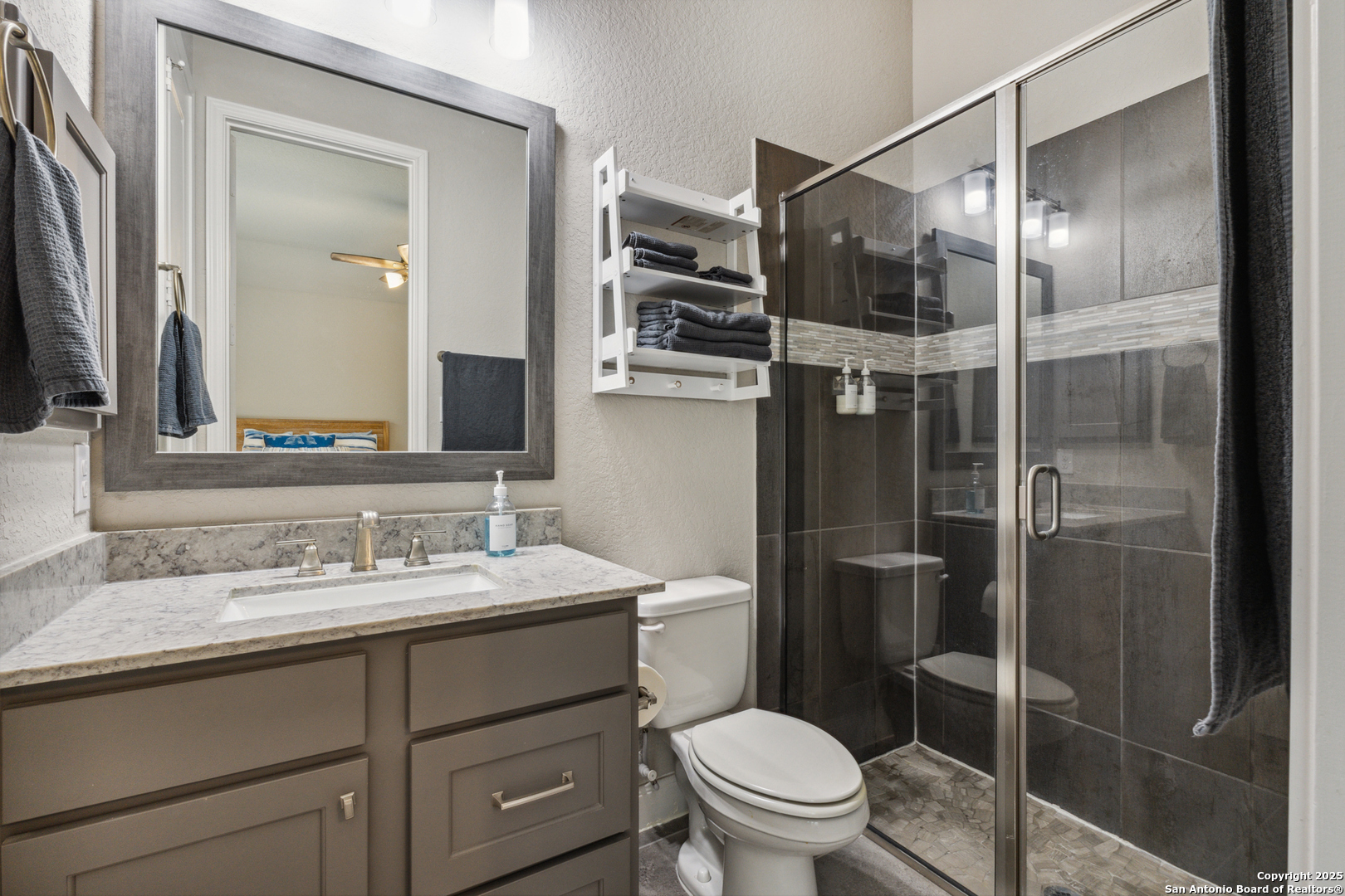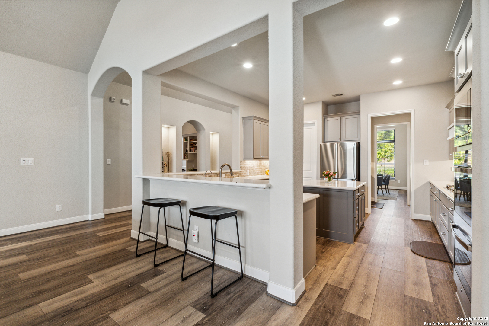 Welcome to the coveted Balcones Creek gated community in Boerne, where elegance, comfort, and exceptional craftsmanship come together in a truly one-of-a-kind home. From the moment you arrive, you'll be impressed by the meticulous attention to detail from the grand curb appeal to the thoughtfully designed interior spaces and 5 car garage with epoxy floors and overhead storage. Inside, expansive living areas are highlighted by soaring ceilings, luxury vinyl plank flooring, and a seamless flow that's perfect for everyday living and entertaining. Each oversized bedroom offers walk-in closets. The chef's kitchen includes a large walk-in pantry and cabinet lighting. The media room is a standout with double insulation and solid doors for an immersive theater experience. A hidden safe room adds a unique layer of security and functionality. Step outside to your half-acre personal resort, where more than $300K of professional xeriscaping and hardscaping create the ultimate outdoor retreat with bee and butterfly conservation in mind. Entertain in style with a custom-built pool, relaxing hot tub, fully equipped outdoor kitchen, cozy firepit, and a spacious covered patio providing generous gathering areas for all your guests. The home backs to Boerne Stage Airfield, a private airport serving local pilots and small aircraft with fixed-base operations and occasional community events. A service road separates the property from the airfield, and the home has been thoughtfully insulated for sound, offering peace and quiet while enjoying a truly unique setting. Learn more at boernestageairfield dot com. With timeless style, thoughtful upgrades, and unmatched outdoor living, this home is a true Hill Country masterpiece.