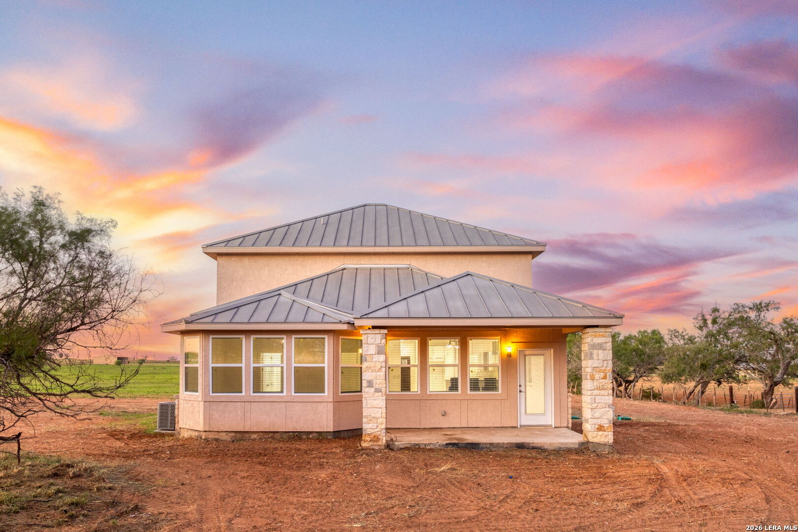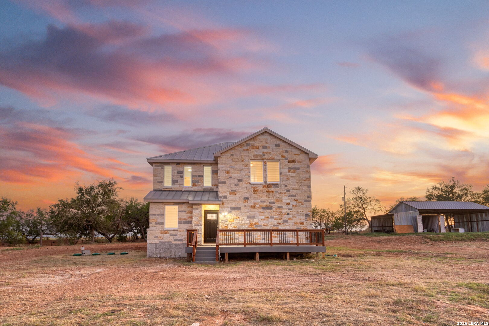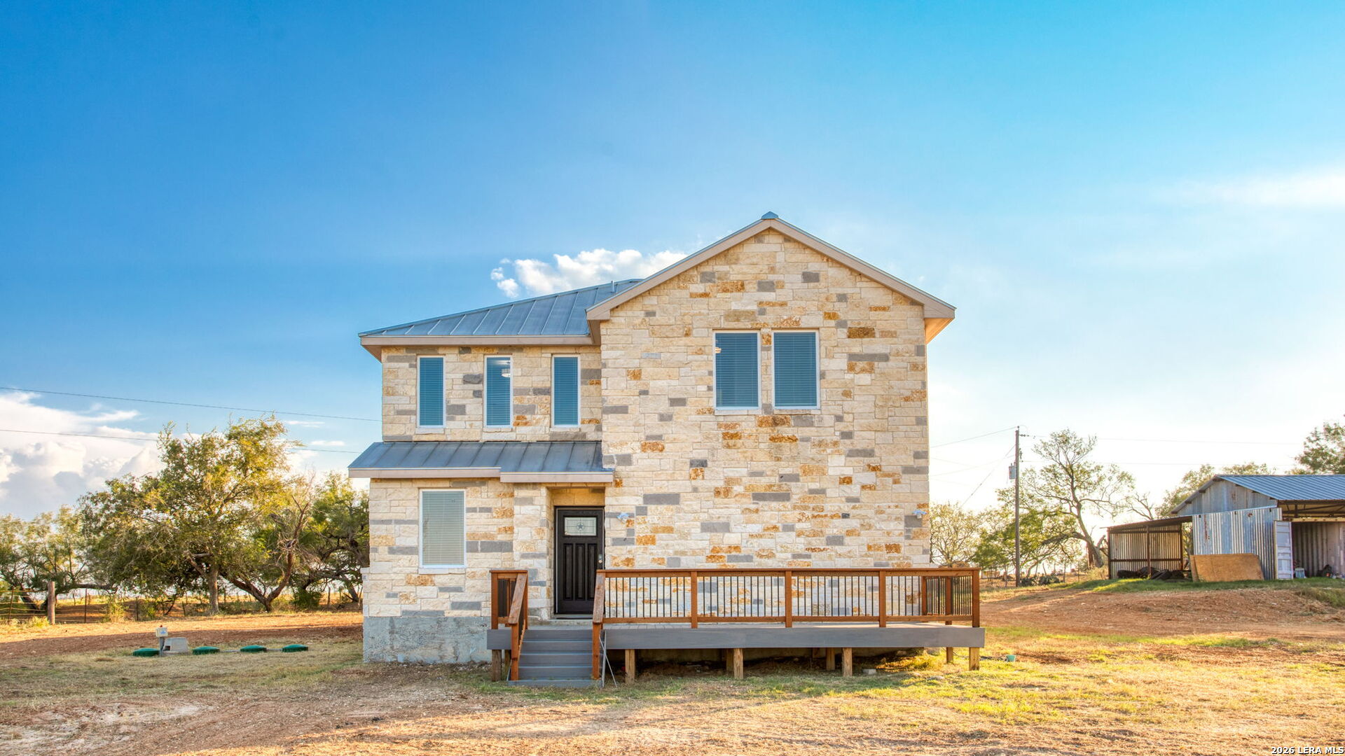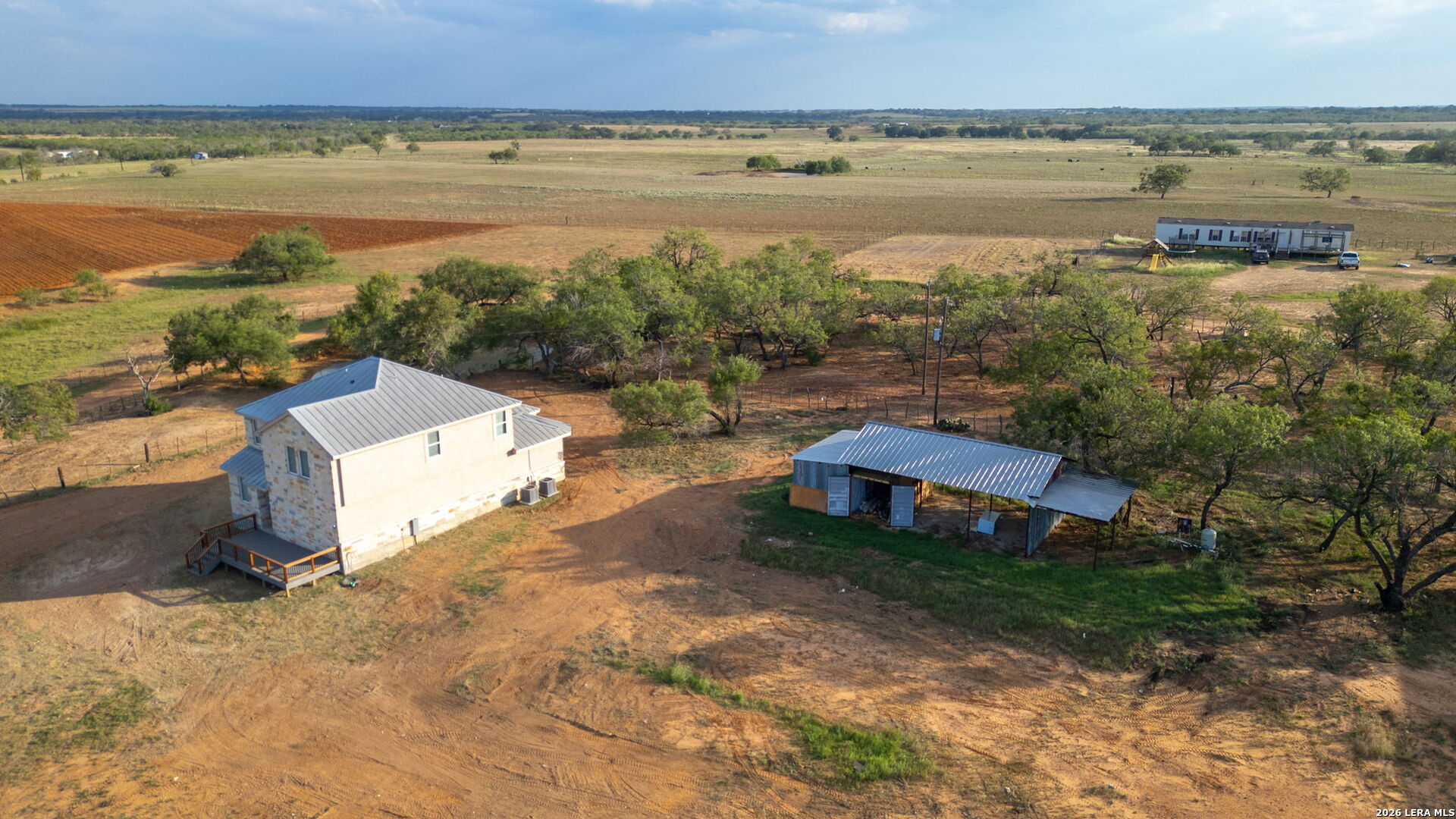 Welcome to your private oasis at 288 County Road 105, Floresville, TX! This beautiful 4-bedroom, 2.5-bath home sits on an expansive 12.78 acres, offering peace, privacy, and endless possibilities. As you step inside, you'll love the open floor plan, featuring stunning tile flooring throughout the first floor. The spacious downstairs master suite is a true retreat with a walk-in shower for ultimate relaxation. The kitchen is a modern chef's dream, featuring contemporary white and blue cabinets, stainless steel appliances, and a generous walk-in pantry. The converted garage offers extra space for storage, and with two HVAC systems, the home stays comfortable year-round. Step outside to the large front wood deck or the covered back patio, perfect for morning coffee or evening sunsets. The property also includes a second concrete slab, ready for you to build another home with the exact same floor plan-perfect for multigenerational living or guest accommodations. This property is a rare find with so much to offer. Don't miss your chance to own this stunning piece of Texas countryside!