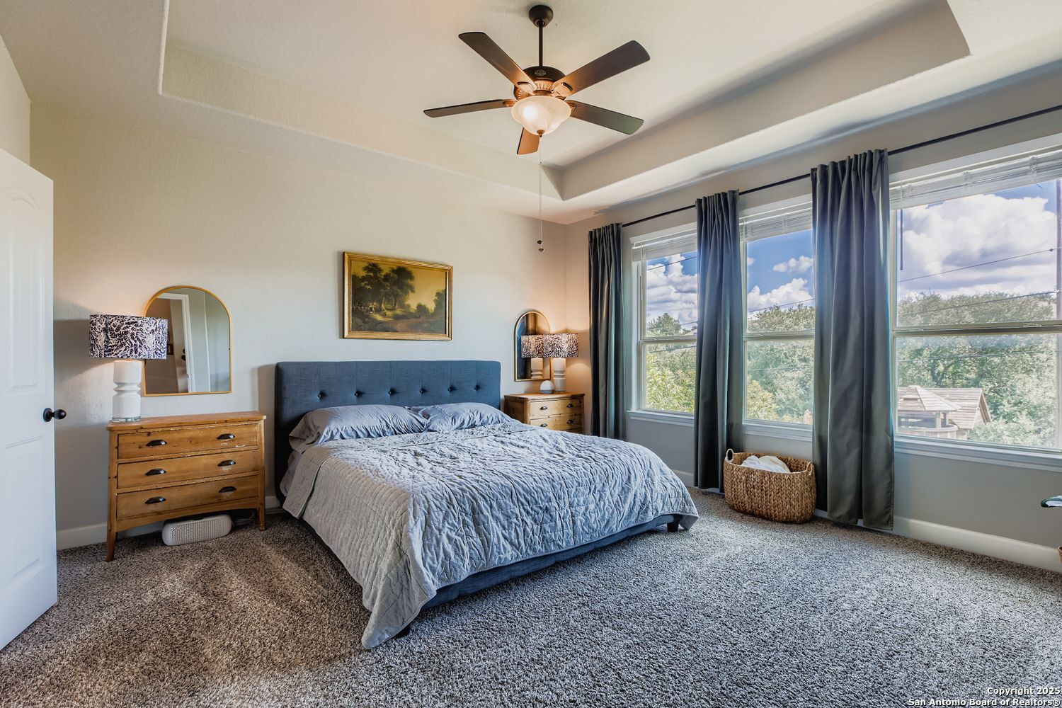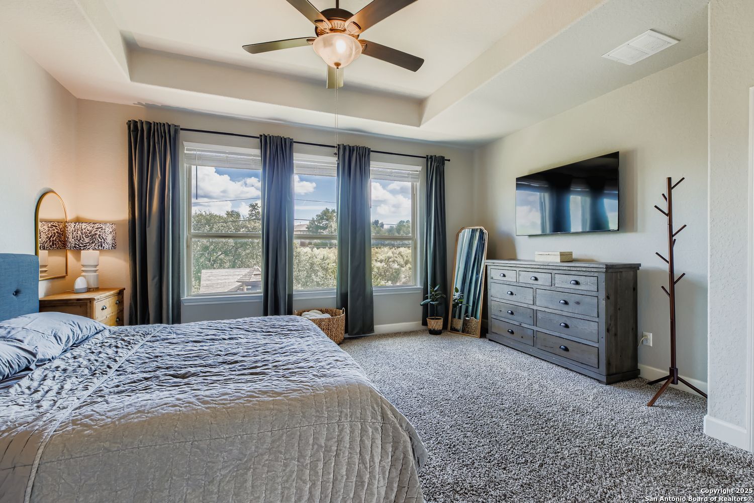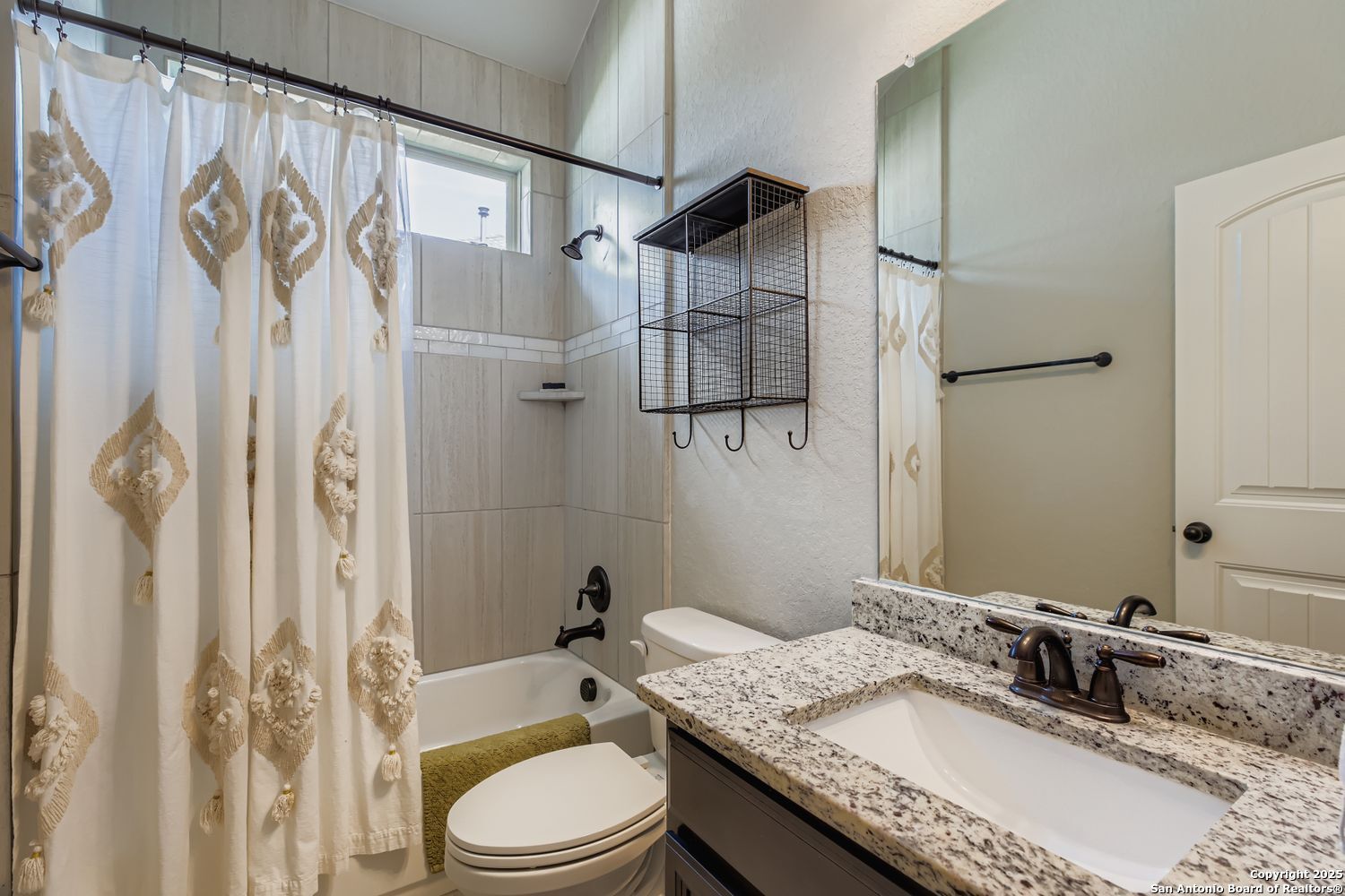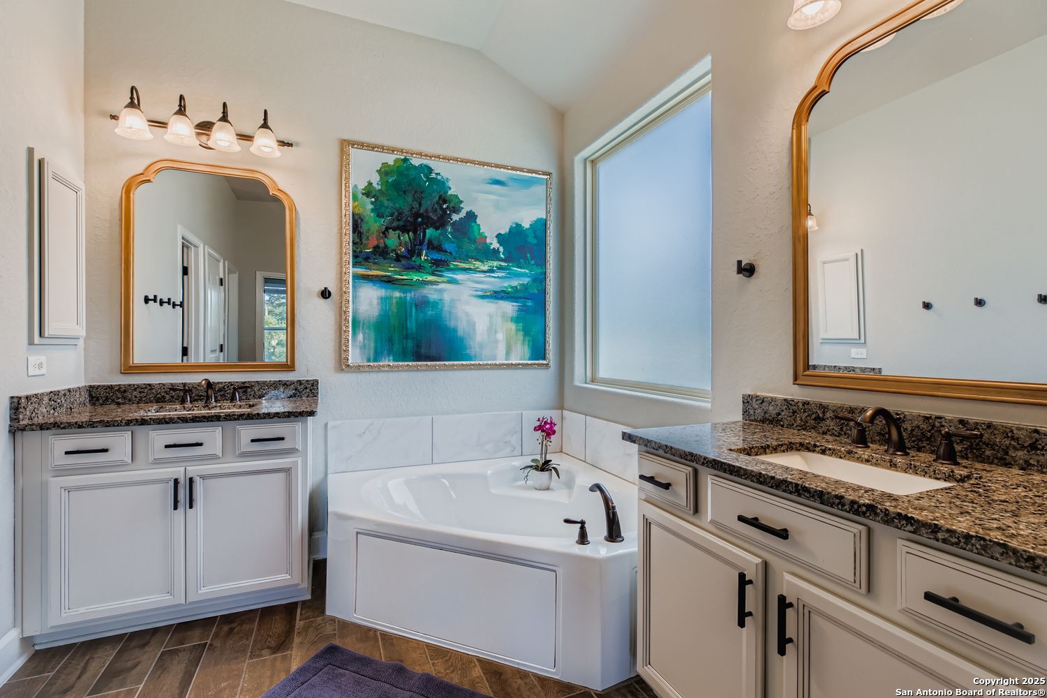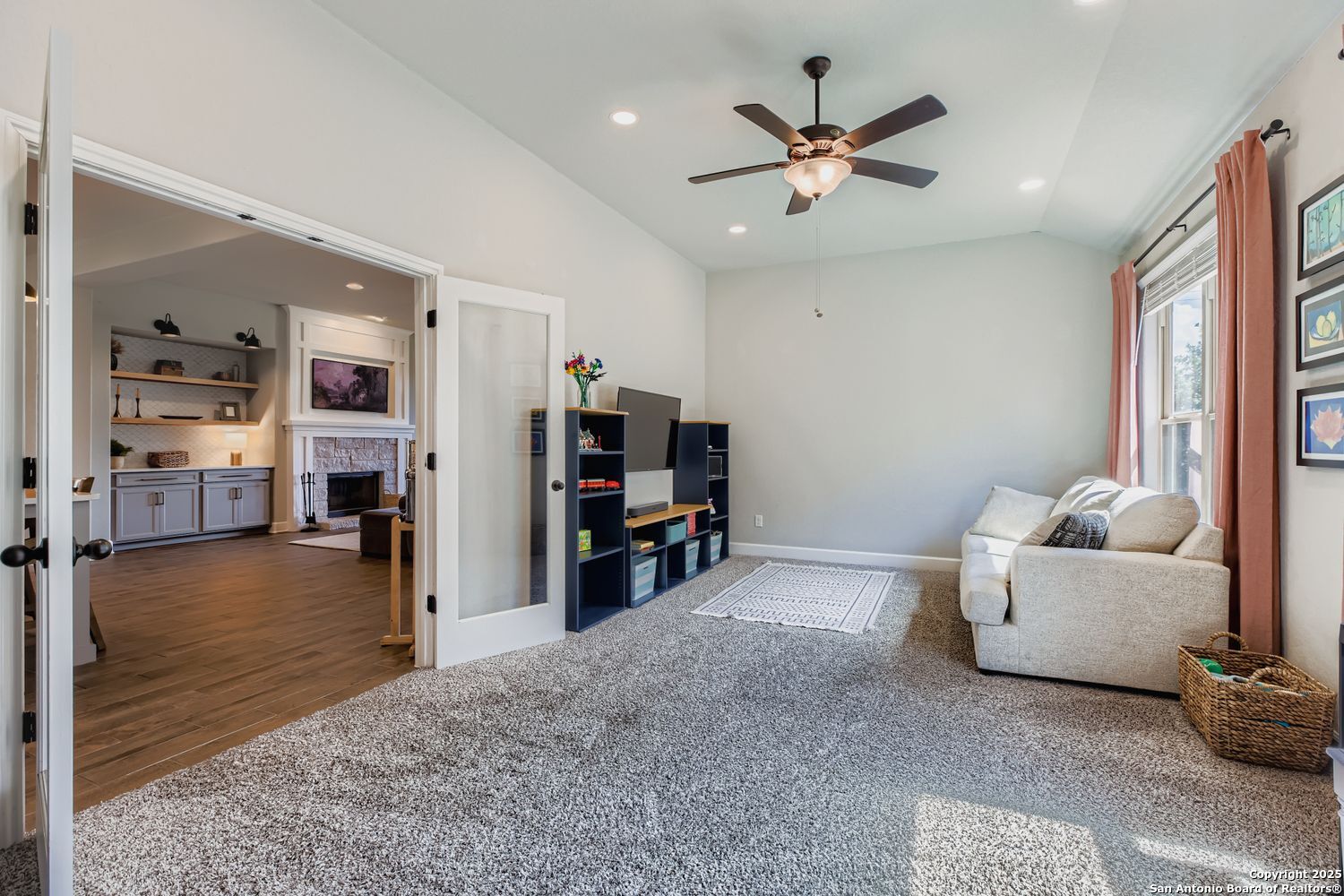 Welcome to your dream home in the highly sought-after Sunday Creek at Kinder Ranch! This meticulously maintained 4-bedroom, 3.5-bathroom one-story beauty offers luxury, functionality, and space for everyone. Step inside to find wood-look tile floors flowing through the main living areas, adding warmth and durability. The chef's kitchen is a showstopper with an oversized island, gas cooking, and designer touches throughout - perfect for hosting and everyday living. Enjoy the elegance of custom wainscoting in both the dining and living rooms, and take advantage of the multiple bonus spaces, including a private office, flex room off the kitchen/living area, and a fully equipped media room complete with movie chairs! The spacious primary suite is thoughtfully separated from the secondary bedrooms and features a large ensuite bath, offering the perfect retreat. Outside, entertain with ease under the covered patio, surrounded by professionally designed landscaping and a fun playscape that makes the backyard enjoyable for all ages. Located minutes from top-rated schools, quaint Bulverde shops, and local dining, this home offers the perfect blend of comfort and convenience.