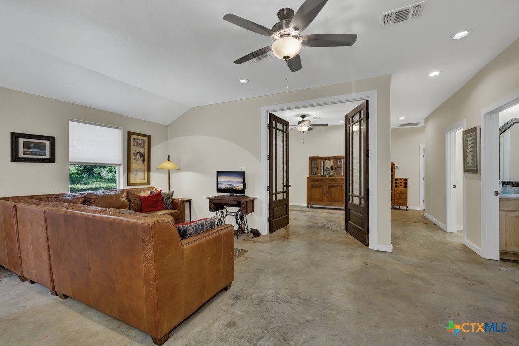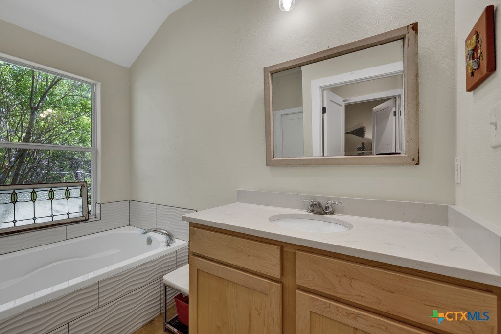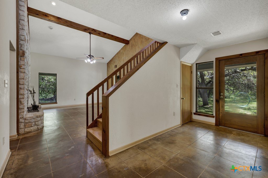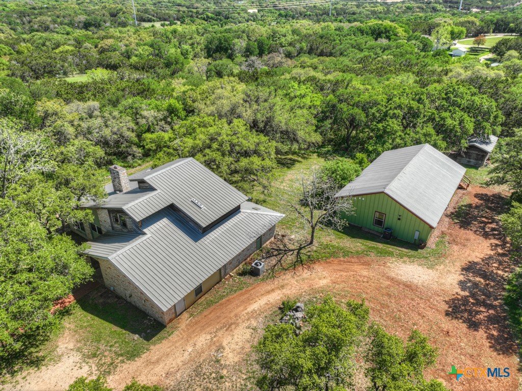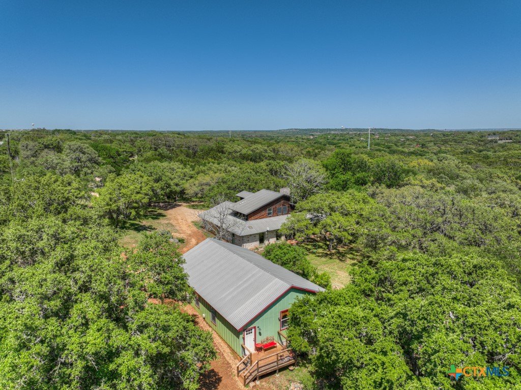 **Rare Dual-Home Opportunity on 5 Acres in the Texas Hill Country!** Nestled in the scenic rolling hills just outside San Marcos city limits, this unique property in the Siesta Verde subdivision offers two homes on a beautifully wooded 5-acre lot with no HOA. The main residence is a 1,978 sq ft, 3-bedroom, 2 & 1/2-bath stone and wood home with a metal roof, built in 1979. It features a floor-to-ceiling stone wood-burning fireplace in the living room, a main-floor primary suite, and two upstairs bedrooms. The home is ready for your vision and updates, with incredible potential and character. Enjoy peaceful Hill Country views from the wraparound back porch shaded by a canopy of mature oaks. The second residence, built in 2020, is a thoughtfully designed 3-bedroom, 2-bath, 1,500 sq ft cottage. It features an efficient layout with dual living spaces—one of which could easily serve as a media room or home office—and a cleverly designed utility area that incorporates washer/dryer access with closet and dressing space. Live in the cottage while renovating the main house, then transition it into a guest home, short-term rental, or multigenerational space. Located near the San Marcos Outlet Malls with easy access to I-35, this property offers space, privacy, and versatility in a prime location. Surrounded by majestic native oaks and elms, both homes sit at an elevated point on the property, providing a serene Hill Country setting just minutes from convenient shopping, dining, and entertainment.