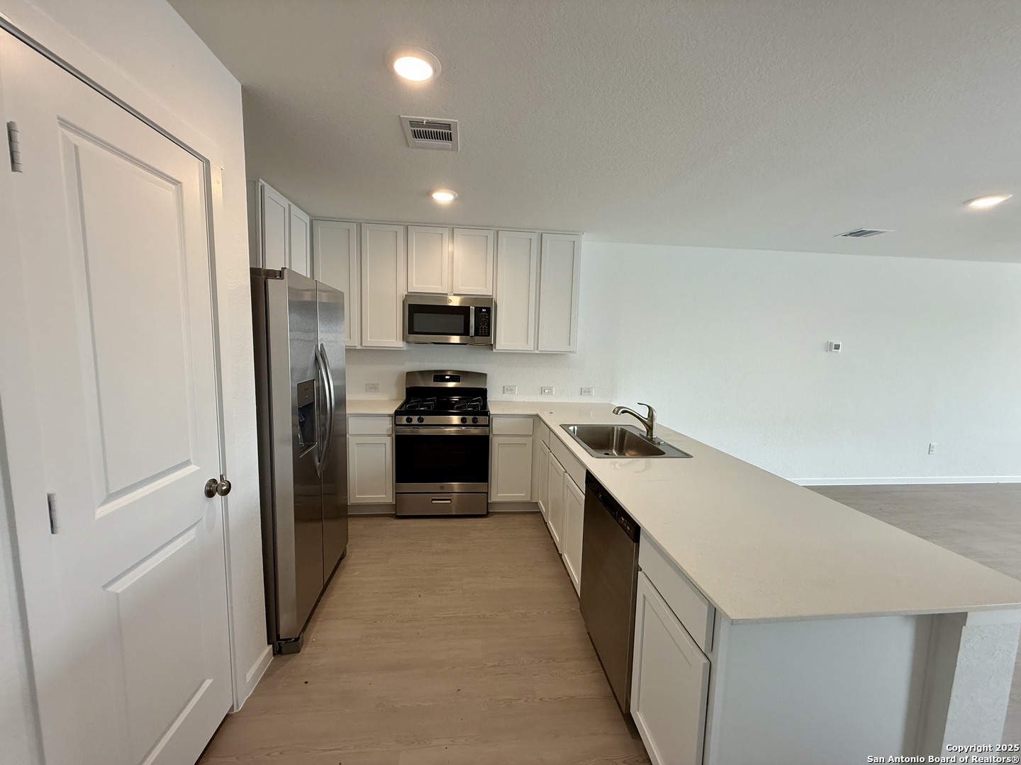 Welcome to this Brand NEW 4-bedroom, 2-bathroom home for lease in a fabulous New Braunfels neighborhood! This modern home offers a 2-car garage with smart garage door opener. This 2025 newly built home provides a fresh and contemporary feel. This property is perfect for those seeking a spacious and comfortable, stair-free living environment. Main bedroom is tucked away towards the back of the house for added privacy and comes with a walk-in closet + toilet & bath. The interior features a well-designed layout with ample natural light, creating a bright and inviting atmosphere. The spacious living & dining room with luxury vinyl plank throughout. The kitchen has a large quartz countertop, all white soft close cabinets, an extra-large sink, and stainless-steel appliances which includes a gas stove and double-sided refrigerator. The exterior features a covered front porch, fully sodded with a fully stained and sealed fence with a side gate. High Speed internet provided by Fision X is included in the rent. A community amenities center that will include a children's play area, pickleball court, multi-use gathering space, pool, benches and restroom is currently being built and will offer a lifestyle program full of events and activities to help you feel right at home. Located in a desirable neighborhood, this house is conveniently situated in Kyndwood by Lennar with easy access to I-35. A quick drive to Creekside crossing town center for shopping, entertainment, schools, restaurants, bars, hospitals and more. It is also very close to Mayfair, where over 300 acres of public parks and recreational open space connected by 35 miles of trails, a signature lake, a brand-new Comal ISD school and Costco are being planned. ***This is a new community so the address may not come up correctly. Please use this address for the Lennar sales office in this community, 4051 El Dorado, New Braunfels, TX 78130.***