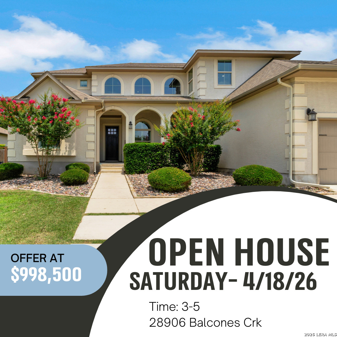 Prepare to fall in LOVE! Do you LOVE to entertain? Welcome to 28906 Balcones Creek located in the coveted Estates section of Balcones Creek. Imagine greeting guests at the breathtaking two-story entry with a formal dining area that is perfect for those holiday dinners and a formal living area that is ideal for quiet moments with a good book! Perhaps you LOVE spending time outdoors by the sparkling pool with dramatic fountains and relaxing in the shade of the HUGE covered patio & charming pergola that overlooks the beautifully landscaped .56 acre lot with a full sprinkler system! Do you LOVE preparing a fabulous meal in a chef's kitchen complete with built-in double ovens, a built-in microwave, a custom designed walk-in pantry, TONS of cabinets, granite counters for miles, a breakfast bar, a 5 burner GAS cooktop and a coffee bar! You will LOVE hanging out with friends and family in the spacious family room with a cozy gas fireplace! Or maybe you LOVE pampering yourself after a hard day in the luxurious primary suite that has a private sitting room and features a beautiful en suite bath with a garden tub, an XL walk-in seamless glass shower, separate vanities & knee space! Did I mention the closet in the primary suite? Oh, the CLOSET! We are talking about floor to ceiling custom built-ins with storage for EVERYTHING from hats to boots! There is a downstairs guest suite with a private bath and a walk-in closet with still more built-ins! You will LOVE having fun in the open game room with space for billiards, a shuffleboard table or any combination of FUN that makes it home! LOVE movies? There is also a massive media room with endless possibilities! Maybe you LOVE garage space? We are talking about a FOUR car tandem garage with beautiful epoxy flooring, overhead storage racks including a motorized rack for convenience, a water softener & upgraded lighting! There are three secondary bedrooms upstairs all with custom closets! Easy access to I-10 and near world class shopping, major employment hubs such as USAA & Medical Center! Add Boerne ISD schools and a new HEB nearby and you have the perfect home in the perfect location! Absolutely a MUST see!!