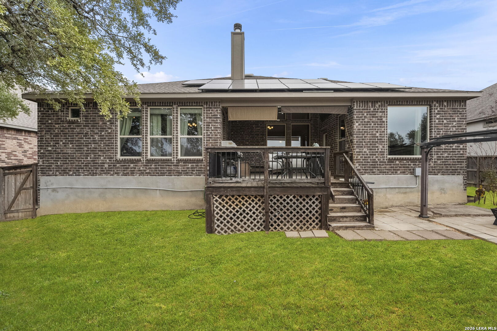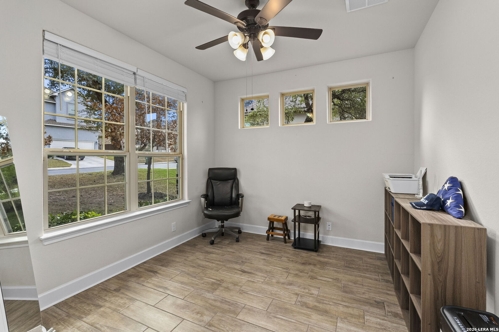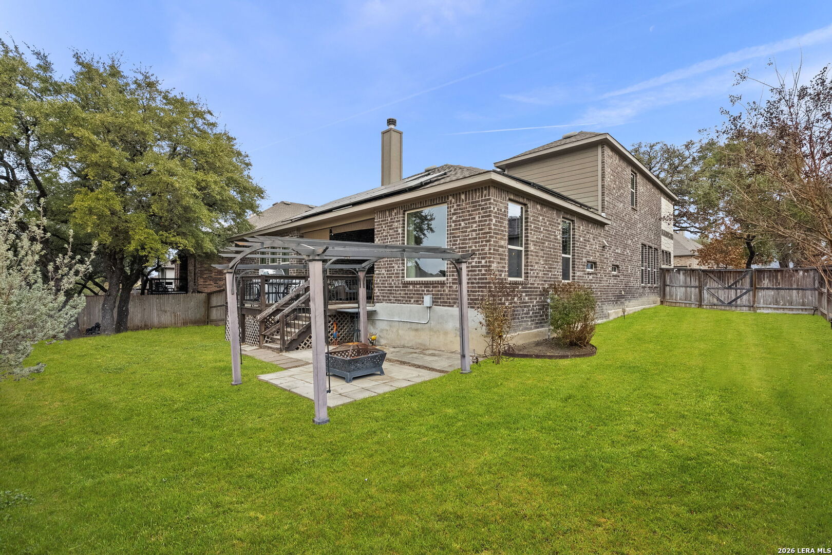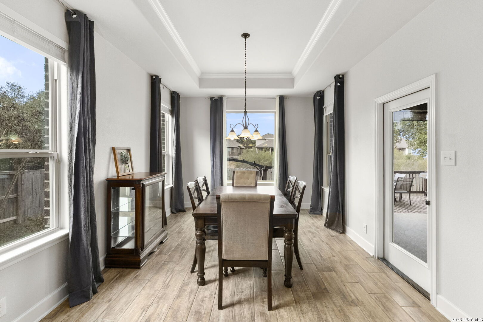 This impressive 4 bedroom, 3.5 bathroom home welcomes you through a foyer with access to a private office or flex room and a comfortable sitting area before opening into a stunning living room anchored by a dramatic floor to ceiling stone fireplace. The open layout flows seamlessly into the kitchen and dining areas, where the eat in kitchen features a large island, abundant counter space, ample storage, and a walk in pantry. The dining room is bathed in natural light from windows on multiple sides, creating a bright and inviting atmosphere. The primary bedroom is spacious and well appointed, with an ensuite bathroom offering a double vanity, a standing shower with built in bench, a large soaking tub, and a generous walk in closet with shelving. Upstairs, additional bedrooms feature large walk in closets and flexible layouts suitable for family, guests, or office use. Outdoor living is enhanced by a deck and covered seating area, providing the perfect setting for relaxing or entertaining.