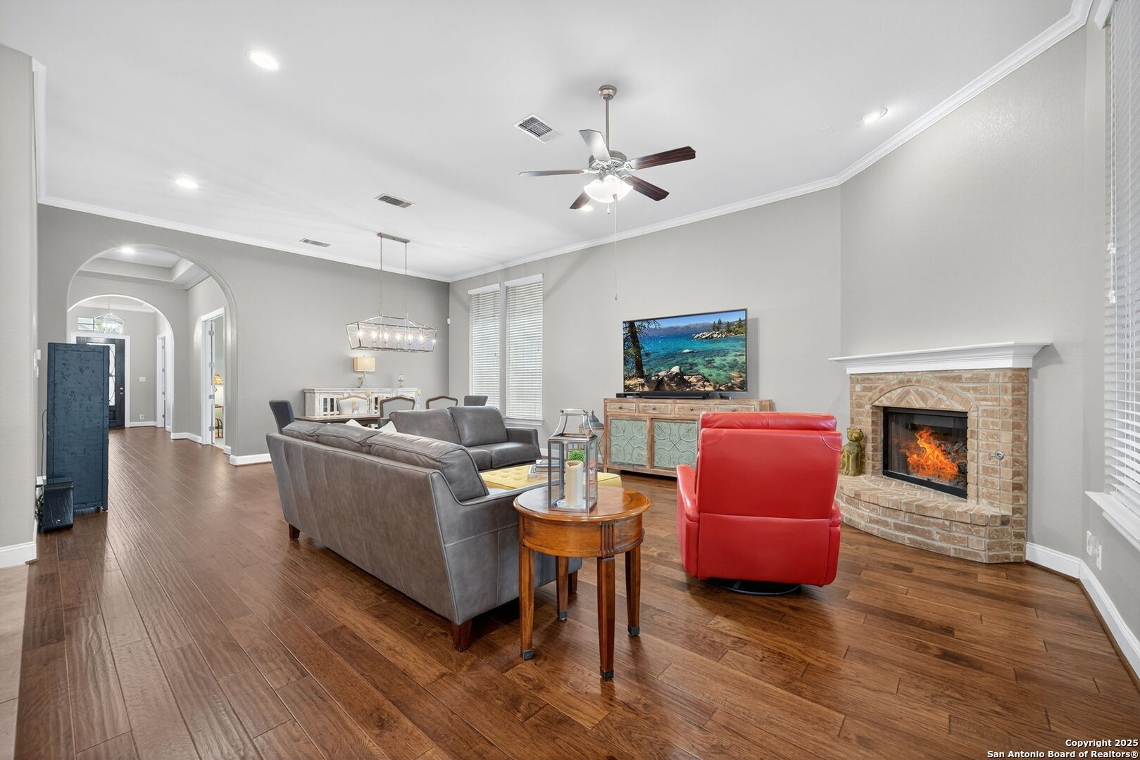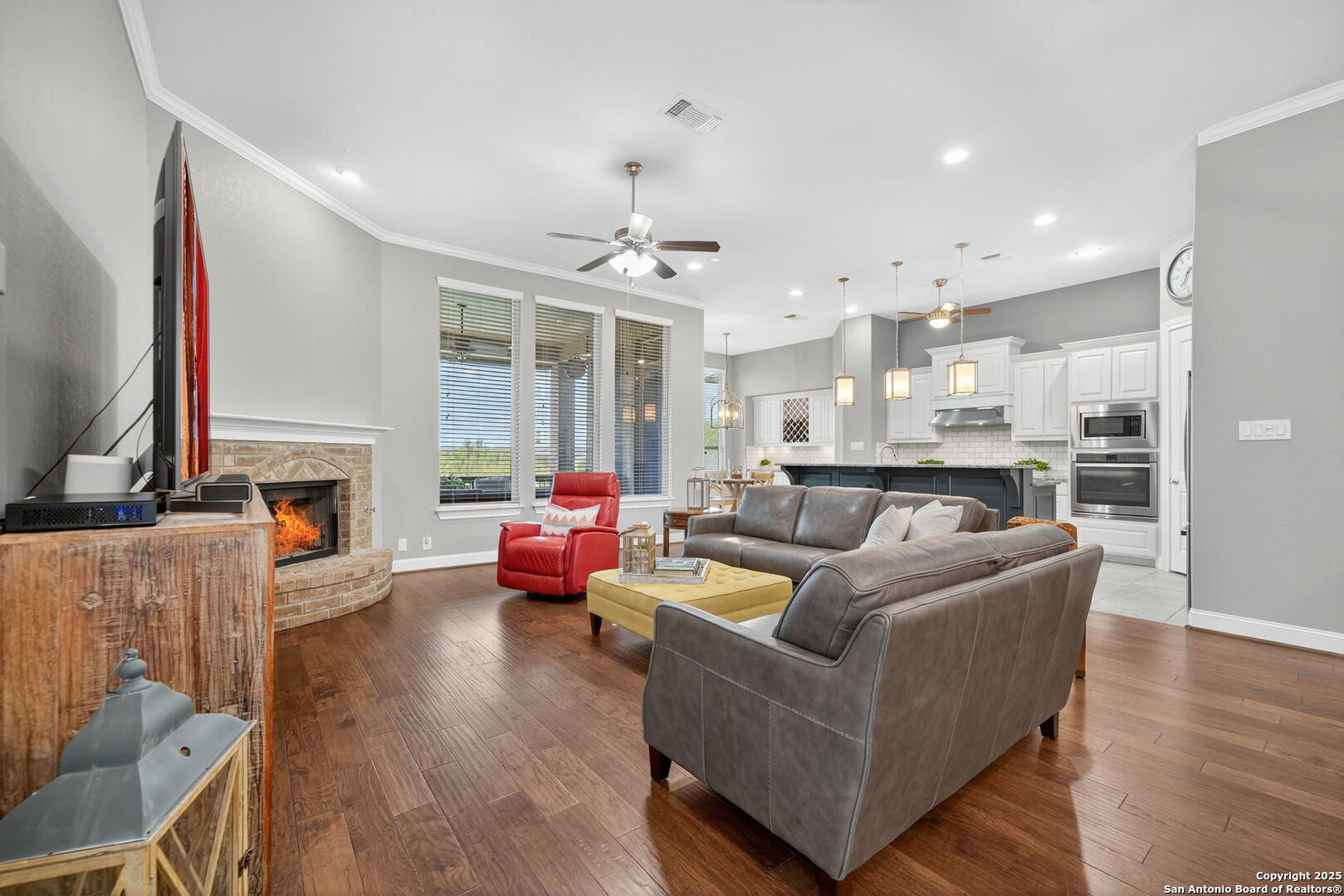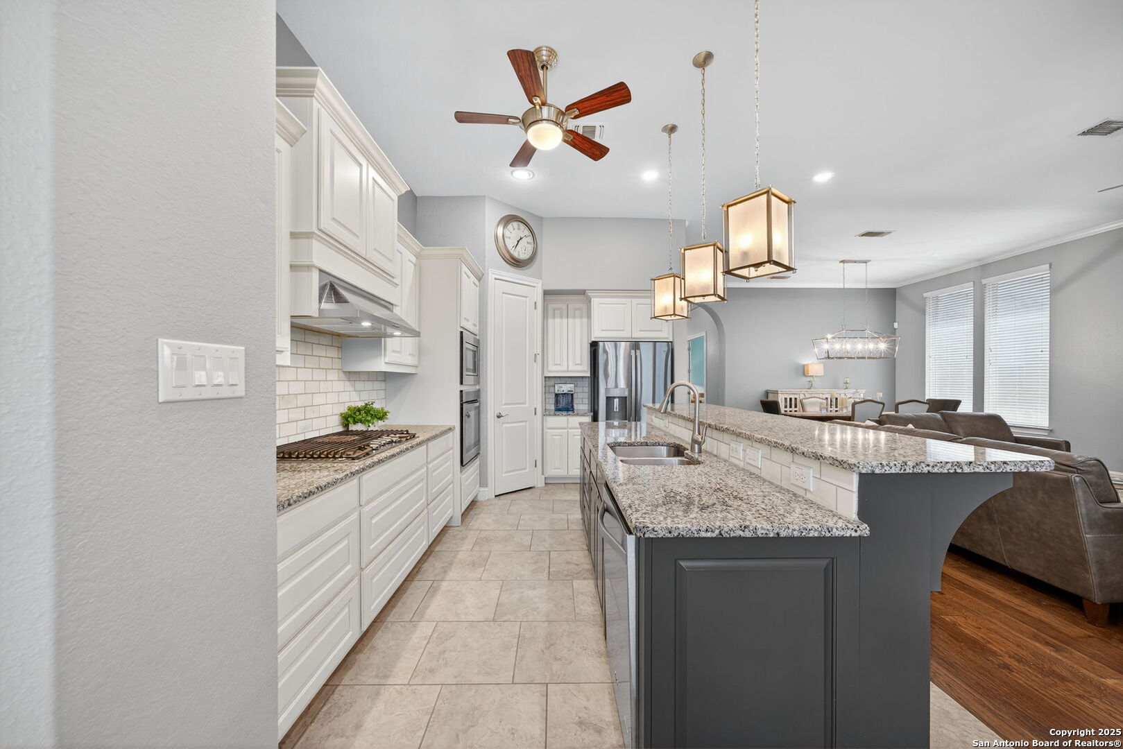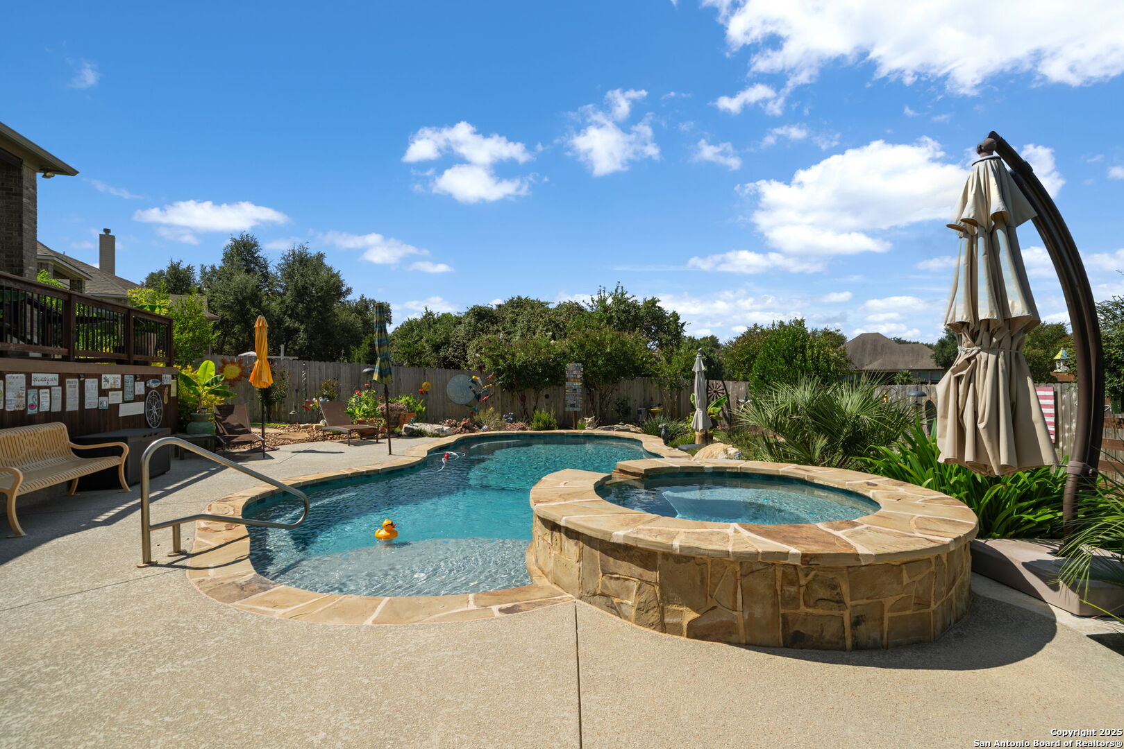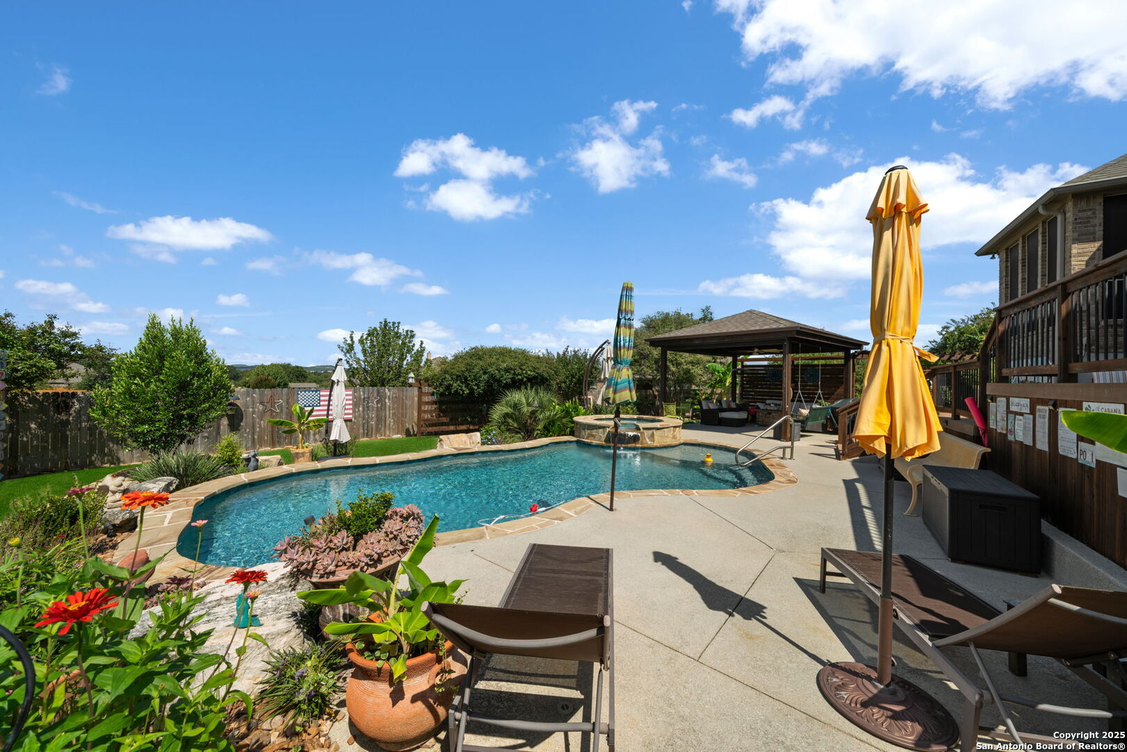 Welcome to 29035 Porch Swing - where "dream home" isn't just a saying, it's a daily experience. Built by the renowned Highland Homes, this 3,108 sq. ft. single-story masterpiece sits gracefully on a 1/4-acre lot in the prestigious Balcones Creek Ranch community - where neighbors wave, kids play, and every sunset looks like it was made for a postcard. Step inside and you'll find the kind of craftsmanship that never goes out of style - wood floors that actually feel like wood, four-sided masonry, and a flowing open layout that says, "come in, stay awhile." The 20x20 family room centers around a cozy fireplace (perfect for winter movie nights), while the formal dining room sets the stage for gatherings that start with laughter and end with dessert no one regrets. The gourmet kitchen? It's a showstopper - white cabinetry, gleaming granite counters, built-in stainless appliances, and a sun-drenched breakfast nook that practically demands morning coffee and good conversation. Need flexibility? You've got it - with a dedicated study, game room, and playroom, this home adapts to every season of life. The private owner's suite is your sanctuary - complete with dual vanities, a spacious walk-in shower, and just enough room to make "spa day" a regular occurrence. Outside your door, Balcones Creek Ranch delivers the Hill Country lifestyle everyone talks about - a resort-style pool, clubhouse, trails, sports courts, and a community that feels like family, all within the award-winning Boerne ISD. Beautiful. Functional. Effortlessly welcoming. This is 29035 Porch Swing - where Texas luxury comes with a front-porch view and a wink of personality.