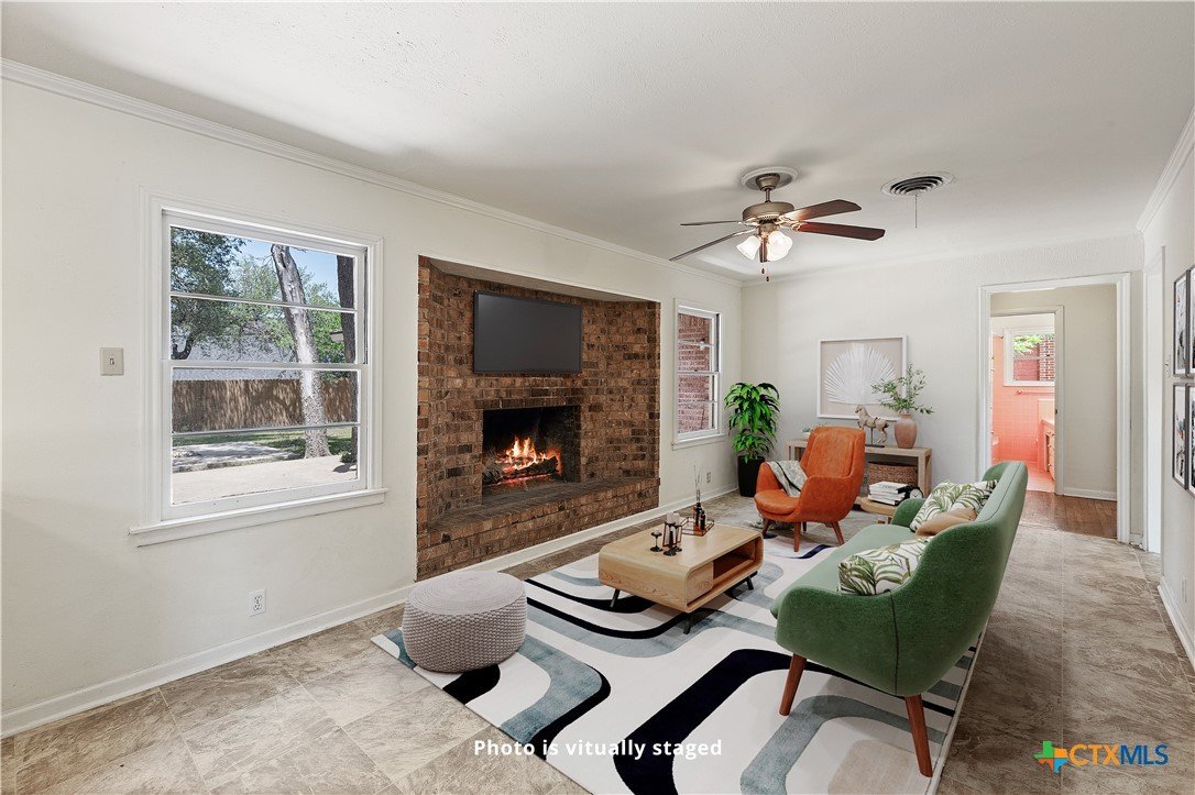 Welcome home! This sweet mid-century modern stunner has just the right mix of character, space, and comfort - all tucked into a spacious lot with mature trees. With 3 bedrooms, 2 full baths, and two separate living and dining areas, there’s room here for whatever stage of life you’re in - growing family, work-from-home life, or simply spreading out and enjoying it all. The original hardwood floors bring warmth and style from the moment you walk in, and the cozy fireplace in the family room is calling for quiet nights and good conversation. Whether you're hosting dinner parties or enjoying a casual brunch, the flexible layout makes it easy to live your way. Step outside and you’ll fall in love all over again - your private backyard oasis is fully fenced with a brand new privacy fence, perfect for pets, kids, or just enjoying a peaceful evening under the stars. Plus, you're just a short stroll to the neighborhood park - morning walks, weekend picnics, and community vibes are all part of the package! Homes with this much charm, space, and location at this price don’t come around often! Come see it, feel it, and make it yours!