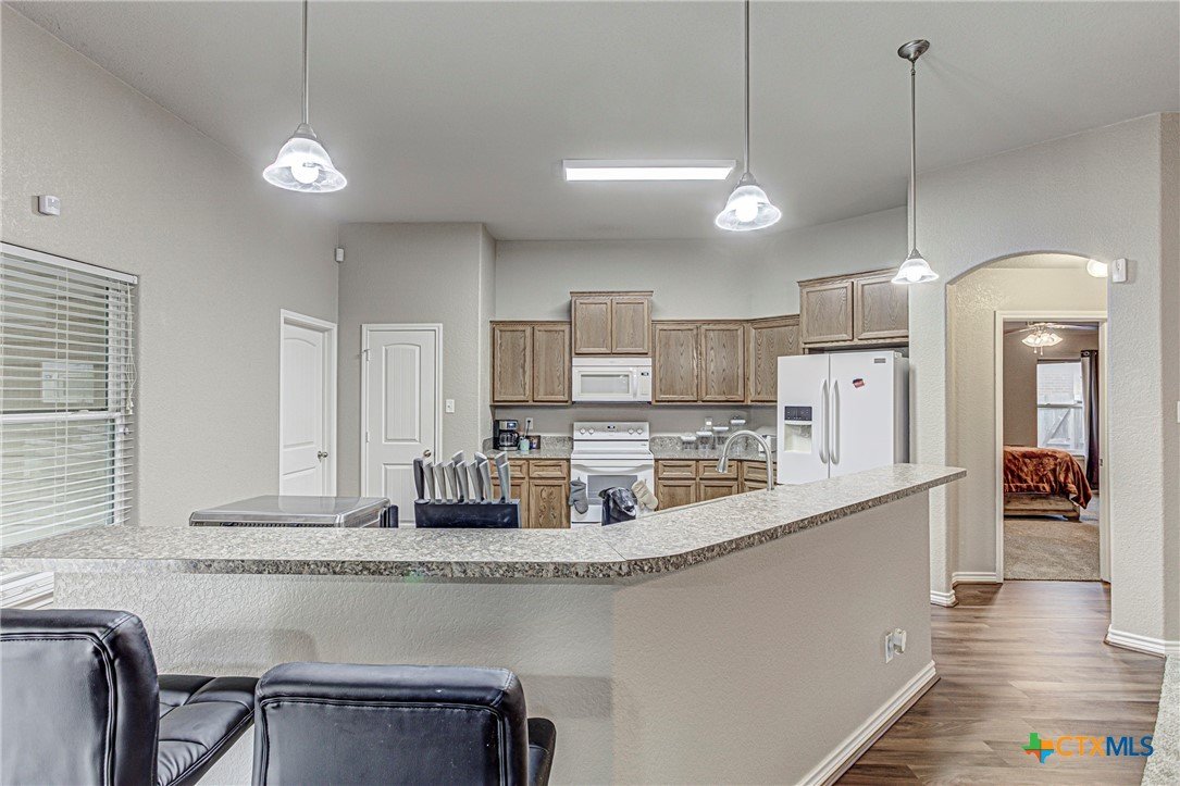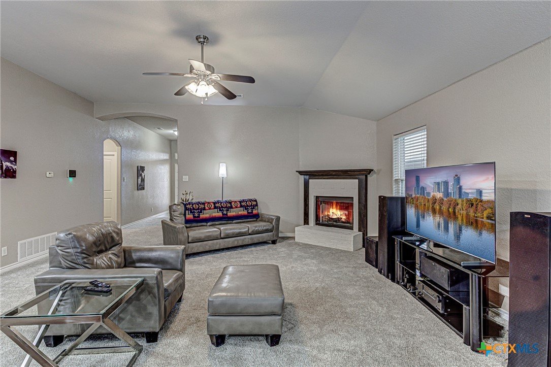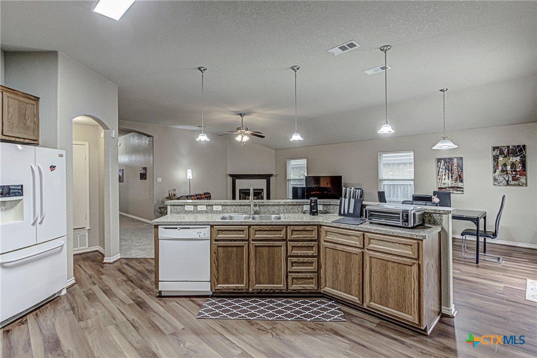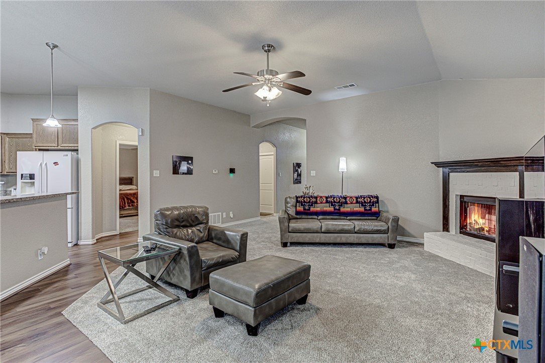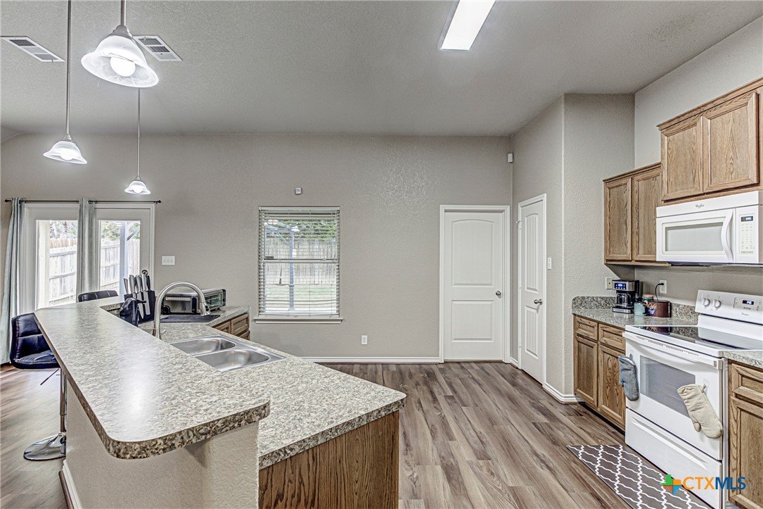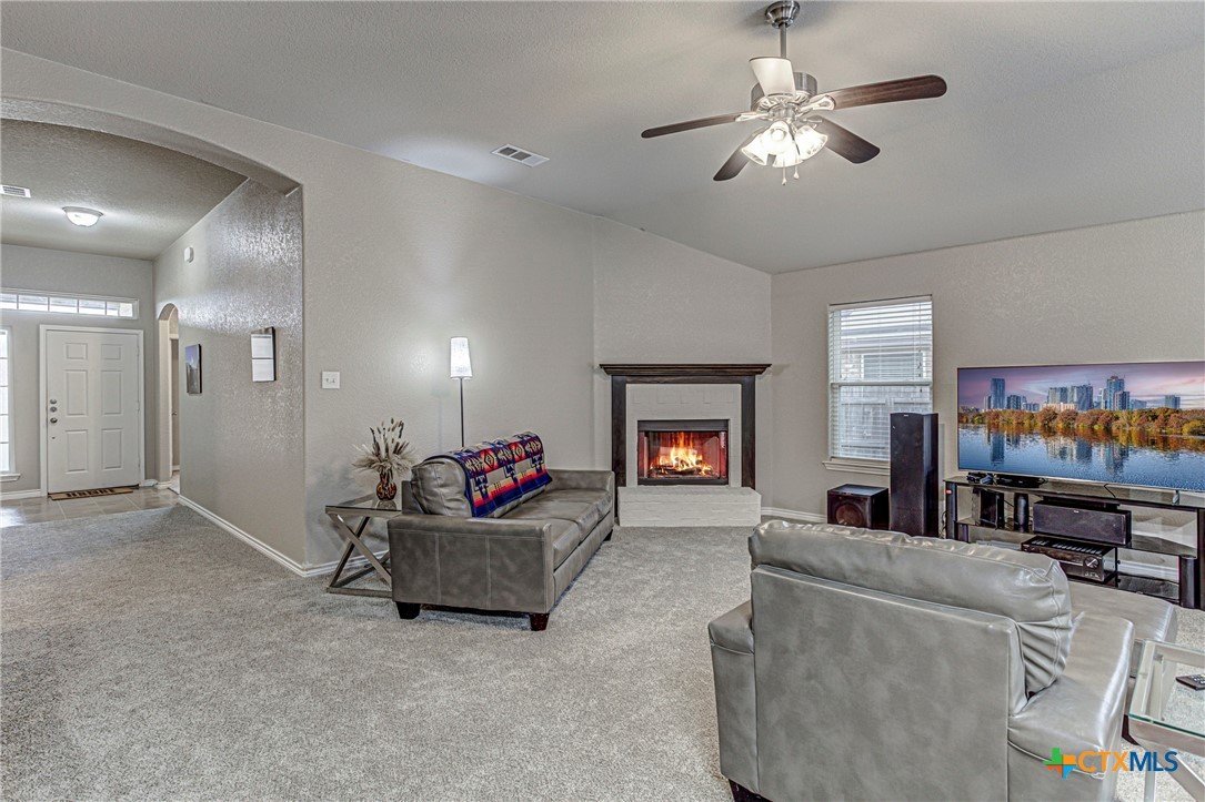 Style, Space & Smart Living — Welcome to this beautifully maintained single-story contemporary home located in the desirable Goodnight Ranch community Step into a home that feels right the moment you walk in. Located in the sought-after Goodnight Ranch community, this beautifully designed single-story contemporary home offers the perfect balance of comfort, efficiency, and modern living — all wrapped into 1,915 square feet of thoughtfully planned space. From the inviting entryway, you’re drawn into a bright, open-concept layout where the living, dining, and kitchen areas flow effortlessly together — ideal for entertaining, family gatherings, or simply enjoying everyday life. The spacious family room is anchored by a stunning stone-accented fireplace, creating a warm and welcoming focal point. The open kitchen is designed for connection and convenience, featuring a breakfast bar, generous counter space, pantry, built-in microwave, and electric range — perfectly positioned so the cook is always part of the conversation. Retreat & Recharge The private primary suite is a true retreat, complete with a walk-in closet, double vanity, separate shower, and garden tub. Two additional bedrooms provide flexibility for guests, a home office, or creative space. Outdoor Living You’ll Love Step outside to a fully fenced backyard featuring a covered patio and pergola — ideal for morning coffee, weekend grilling, or relaxing evenings under the Texas sky. Smart & Energy-Efficient Living This home includes active solar panels, helping reduce energy costs while supporting a more efficient lifestyle — for today’s savvy buyers. This is more than a house — it’s a place to live comfortably, entertain confidently, and come home proudly. Schedule your private showing today and experience what makes this home truly stand out.
