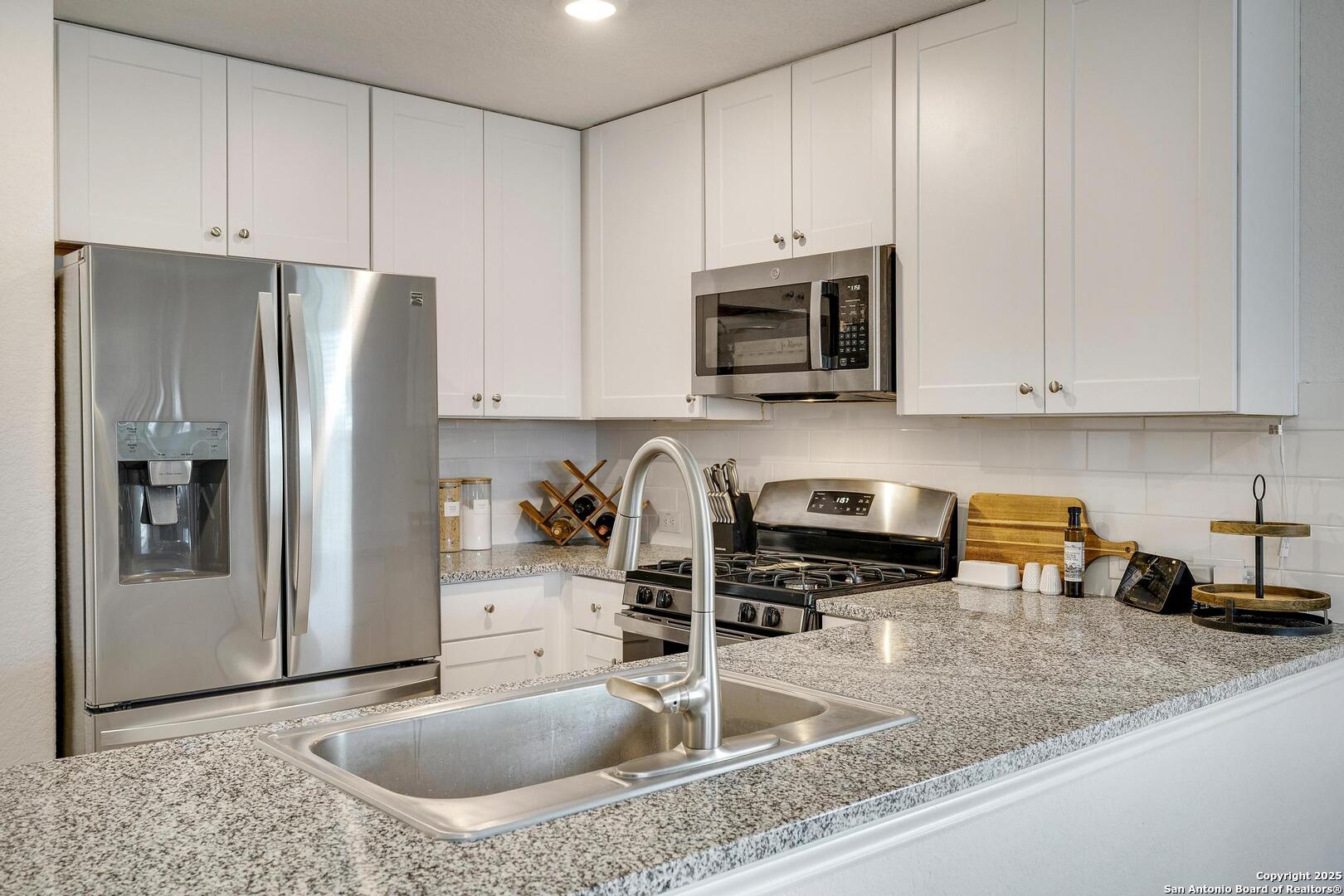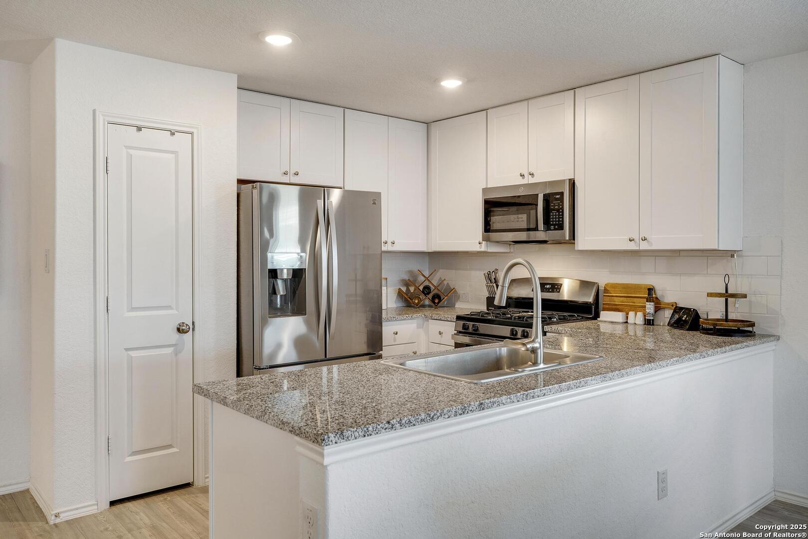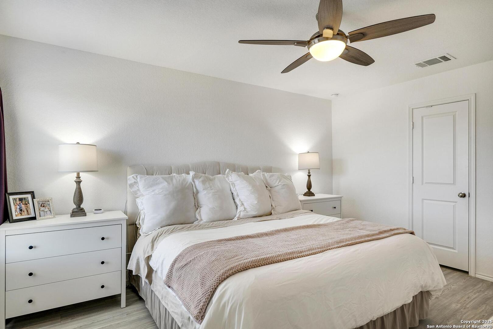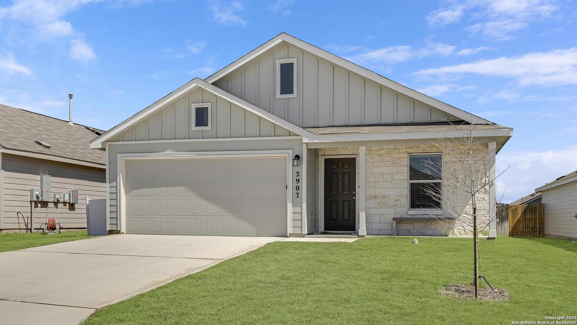 Welcome to your dream home in the heart of New Braunfels! Located in the sought-after Voss Farms community, this beautifully designed, Energy Star Certified 3-bedroom, 2-bathroom home blends modern comfort with thoughtful upgrades throughout. Built in 2022 by Lennar, it features a bright, open-concept layout with stylish finishes, including an island kitchen with gas cooking, a breakfast bar, solid countertops, custom backsplash, and elegant cabinetry. The split floor plan offers added privacy, with the primary suite boasting a spacious walk-in closet. Designed for energy efficiency, this home includes solar panels, natural gas heating, a tankless water heater, and smart features like a thermostat compatible with Alexa, a Ring doorbell, and a smart garage opener. Additional upgrades include ceiling fans in the living room and primary bedroom, blinds on every window, full-yard irrigation with a sprinkler system, a landscaped backyard, and a garage equipped with full lighting and a ceiling storage rack. Step outside to enjoy your private fenced backyard or explore the community amenities, including a pool, scenic walking trails, and the upcoming Zipp Family Sports Park. With easy access to IH-35, you're just minutes from downtown New Braunfels, the Guadalupe River, the Gruene Historic District, and the area's best dining and shopping. This home is the perfect blend of style, functionality, and location-ready to welcome you home.