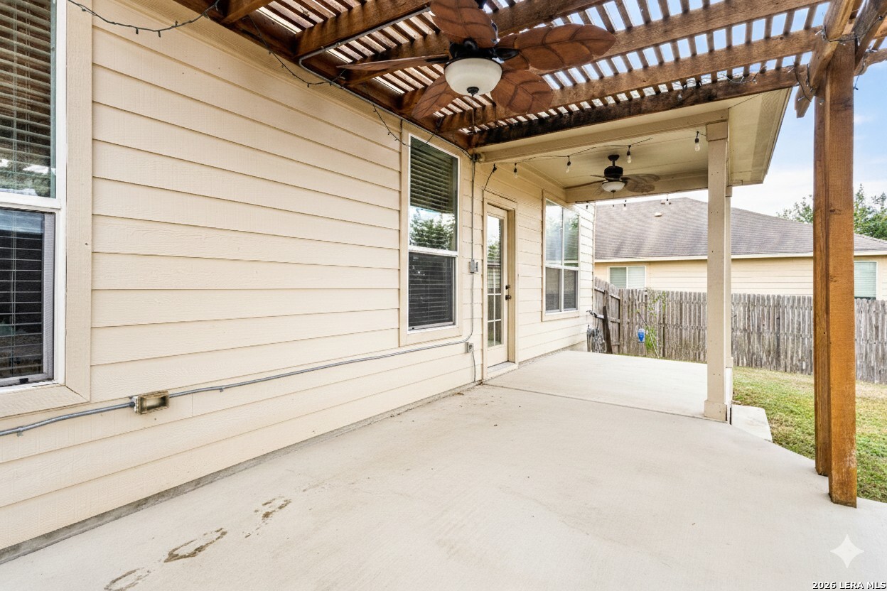 Discover your perfect blend of comfort and convenience in this beautifully maintained 4-bedroom, 2.5-bath two story home located in desirable Oak Creek Estates in New Braunfels, Texas. Ideally situated near restaurants, shopping, and IH-35, this home offers both tranquility and easy access to everything you need. Step inside to find a bright layout with fresh interior paint and thoughtful updates throughout. The primary suite is conveniently located downstairs, offering privacy and comfort, while three spacious bedrooms and a large secondary living area await upstairs-perfect for family, guests, or a media space. A designated work from home office provides the ideal setup for remote work or study. The kitchen features granite counters, an inviting eat-in space, and plenty of storage for everyday living. Walkable great neighborhood with sidewalks and wide streets. Additional highlights include: * Owned solar panels for exceptionally low electric bills(with battery backup and off grid capability) * Soaker hoses around the foundation to maintain stability *Updated Bosch dishwasher *New refrigerator that makes craft ice cubes *Electrolux washer and dryer and a garage Frigidaire fridge/freezer included *Garage has 220 outlet installed * EV charger on it's own circuit *RO system at kitchen sink, connected to fridge for water and ice *Large extended concrete patio with pergola with privacy panels with full electric on the patio and 3 outdoor ceiling fans *New AC evaporator coil and new dual zone duct work *New roof (2023) *New water heater (2020) *New arched window in upstairs bedroom *Two attics for extra storage (storage in Texas is worth its weight in gold!) *HVAC maintenance twice per year. Amenities include a large community pool with play areas for all ages, playground, basketball court and walking paths along the creek. Top-rated Oak Creek elementary school right in the neighborhood-Comal ISD. This home is move-in-ready, efficient, and ready to save you money. Floor plan and electric bills available in attached documents. MLS would not allow the images to be uploaded.
