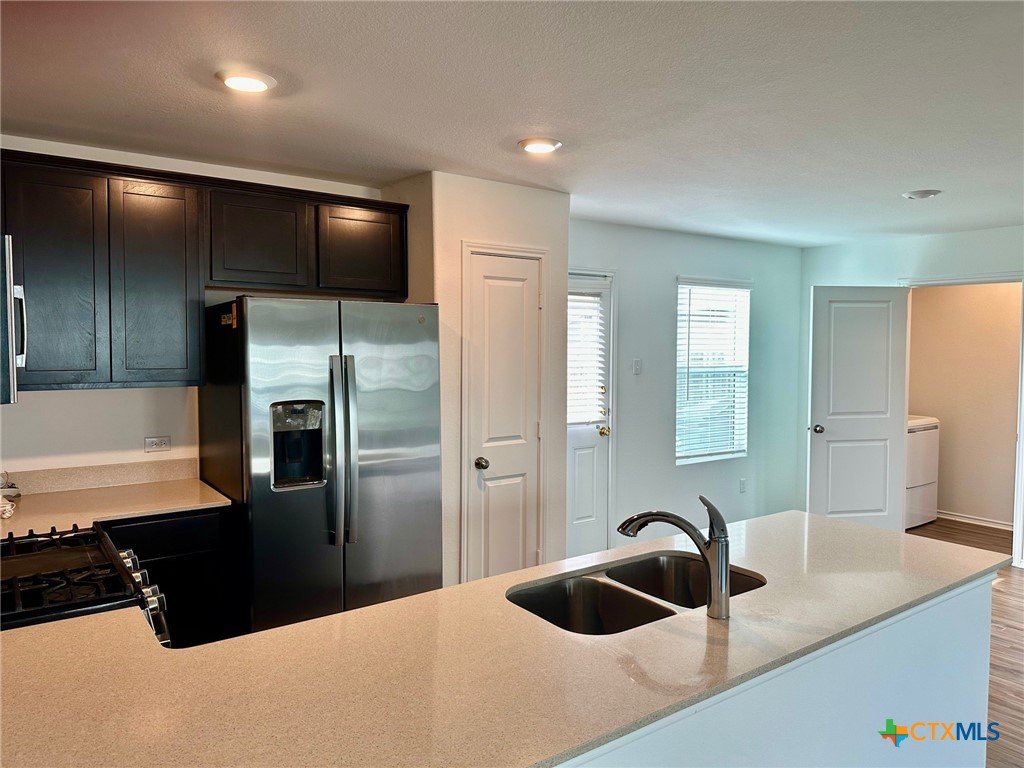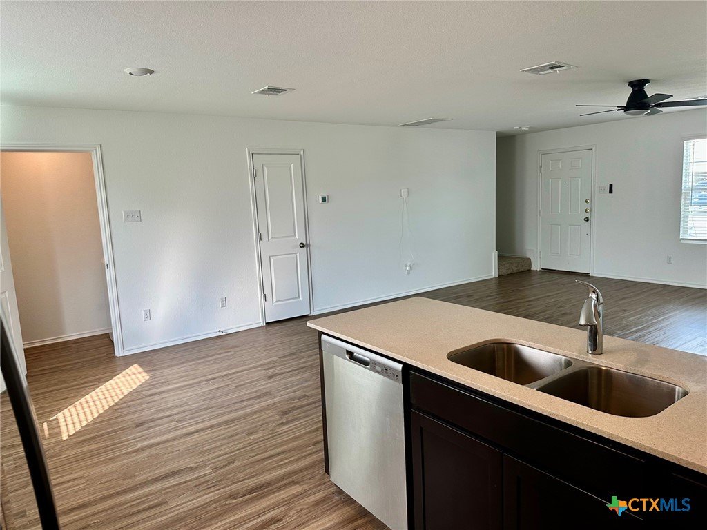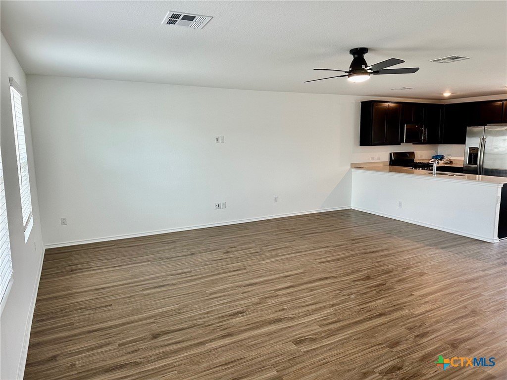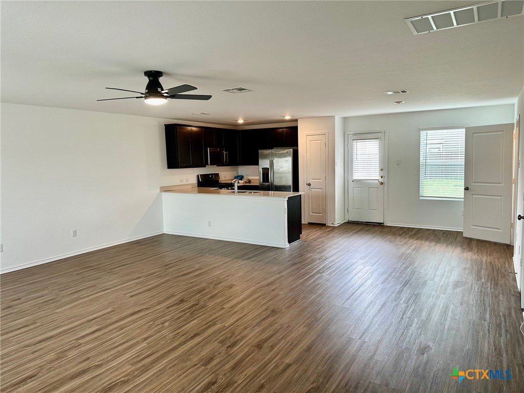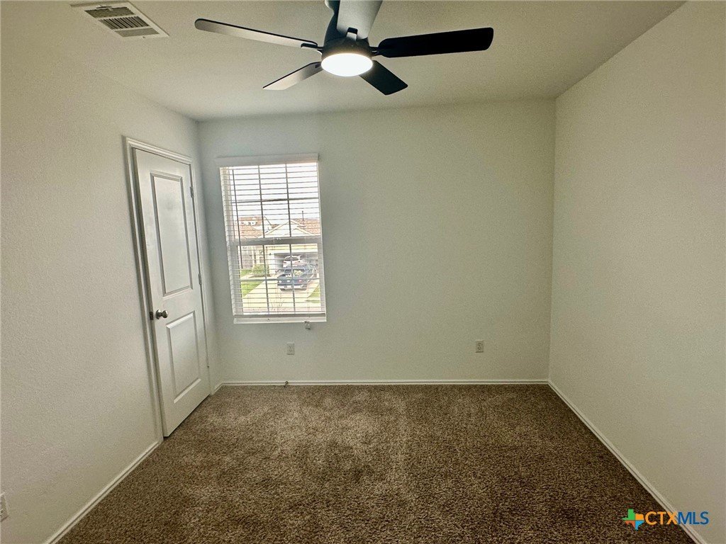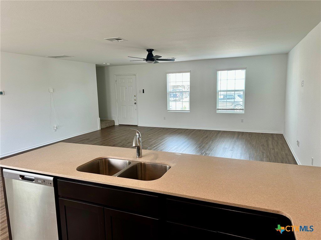A nice two-story home that has a spacious open floorplan shared between the family room, dining room and kitchen on the first floor. All laminate wood-like flooring downstairs. Carpet upstairs. The second floor has all 3 bedrooms and including primary suite featuring a private bedroom. Comes with stainless steel appliances. Also, full size washer/dryer included. Huge fully fenced backyard. Fresh interior paint throughout the home. Ceiling fans in all rooms. There is a park with playground and picnic area. Ready for immediate move-in!