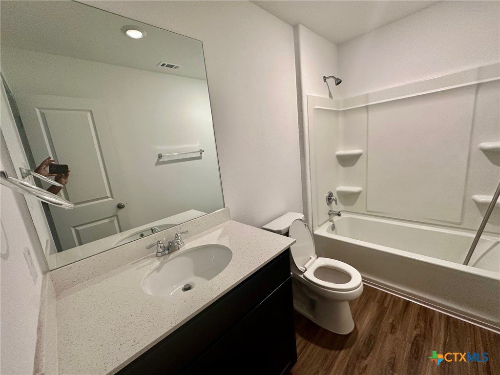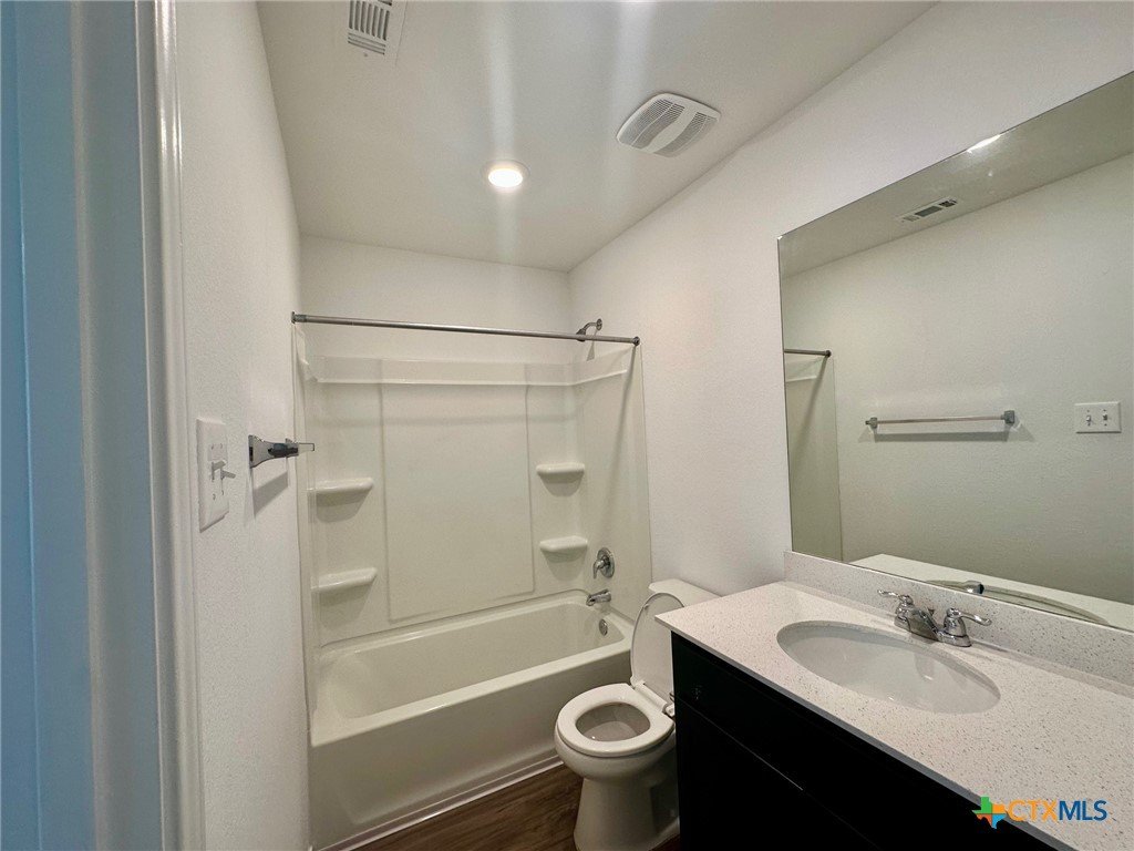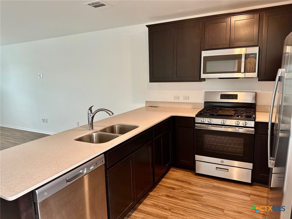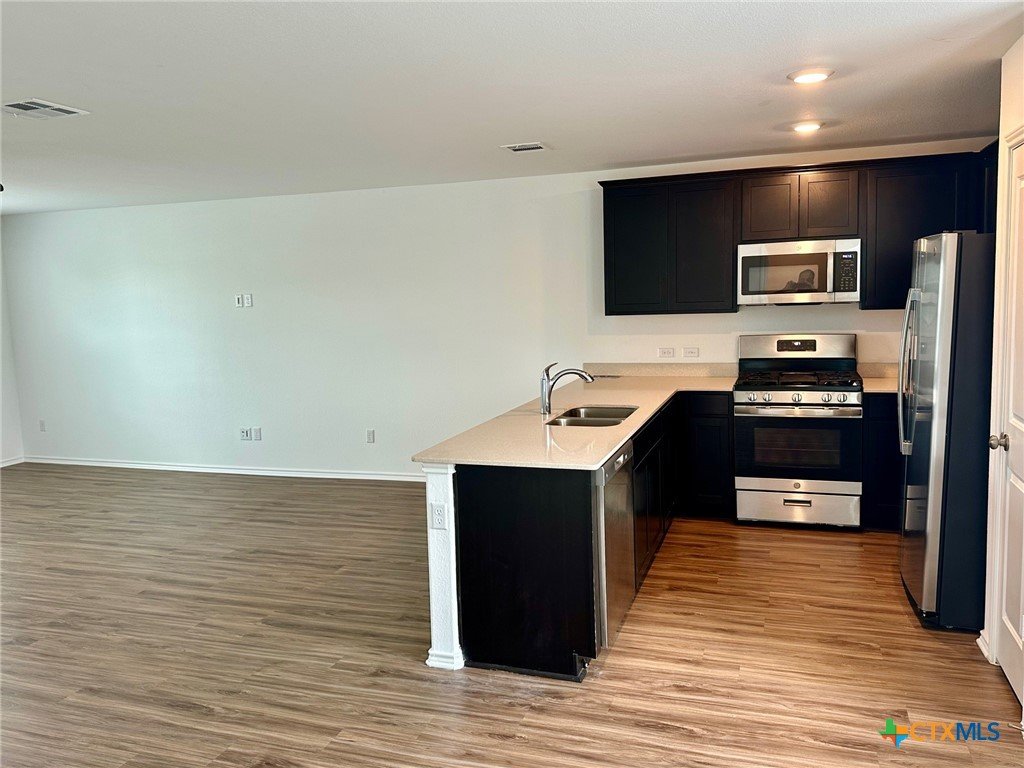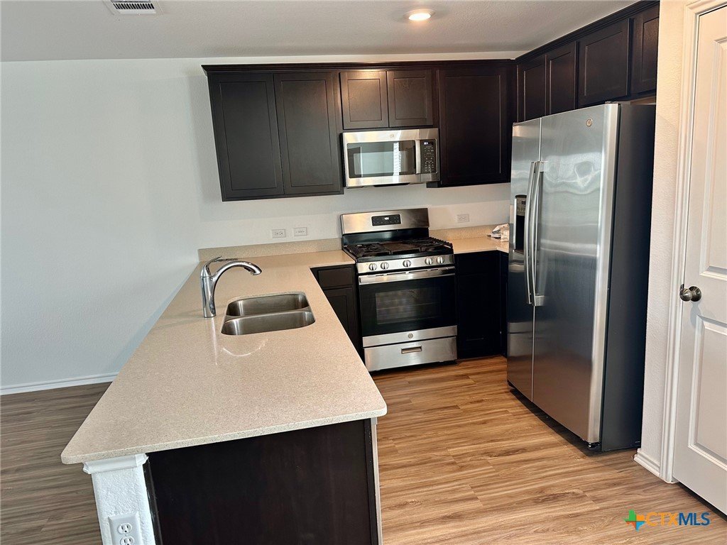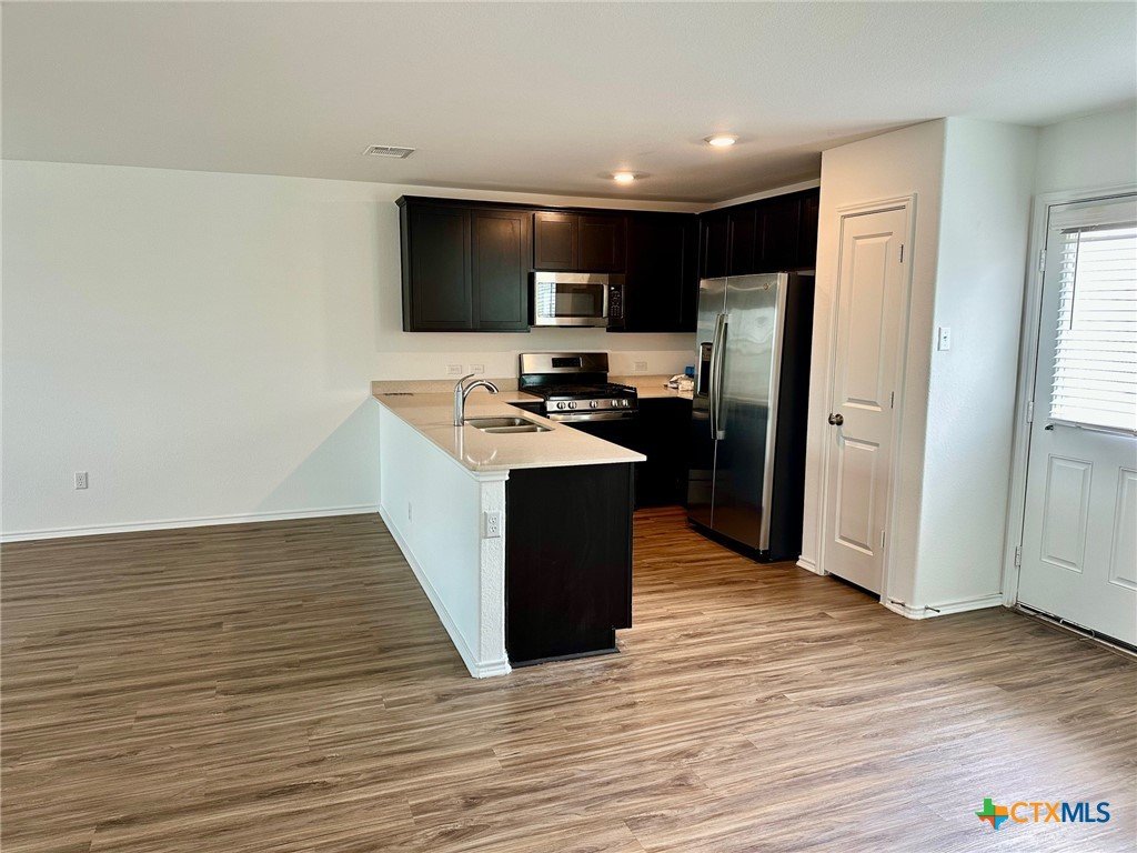 A nice two-story home that has a spacious open floorplan shared between the family room, dining room and kitchen on the first floor. All laminate wood-like flooring downstairs. Carpet upstairs. The second floor has all 3 bedrooms and including primary suite featuring a private bedroom. Comes with stainless steel appliances. Also, full size washer/dryer included. Huge fully fenced backyard. Fresh interior paint throughout the home. Ceiling fans in all rooms. There is a park with playground and picnic area. Ready for immediate move-in!