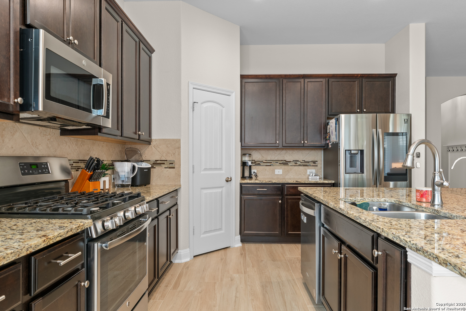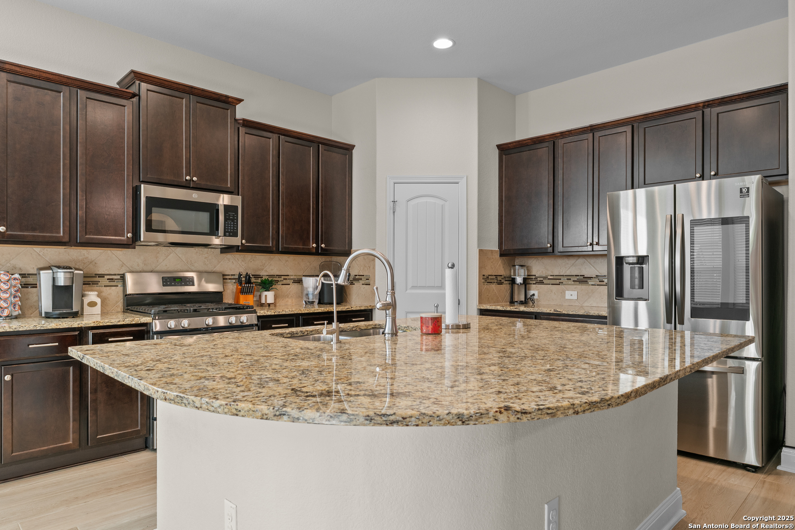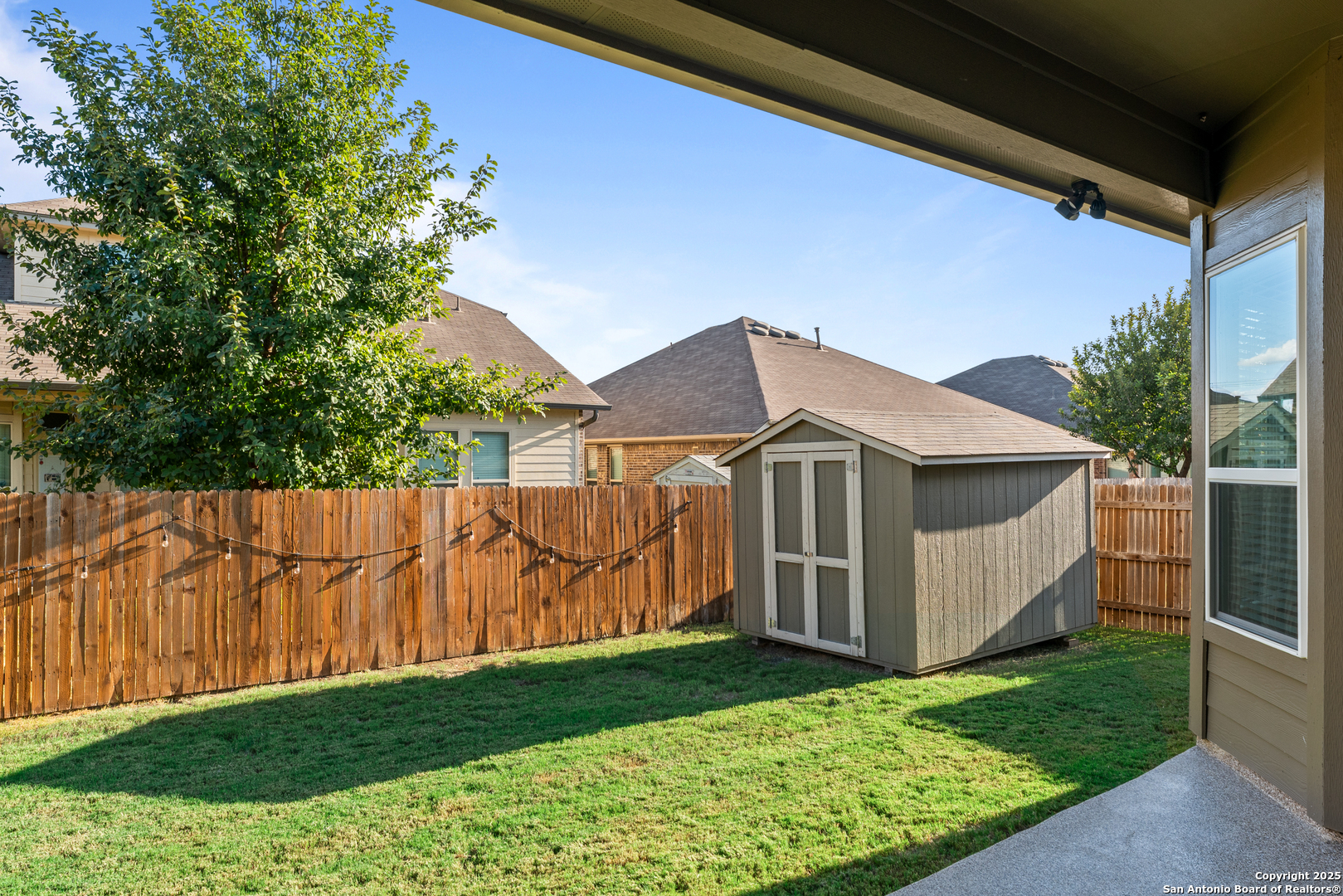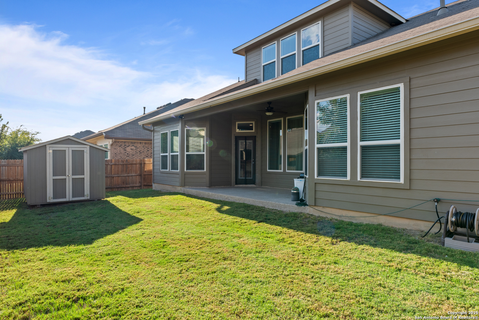 Beautifully maintained two-story home located in the highly desired city of Cibolo! Featuring 4 bedrooms, 3 full bathrooms and an open concept floor plan, this property perfectly blends warmth, comfort and modern living. High ceilings, arched entryways and natural light that fills the spacious living area. The chef's kitchen showcases rich expresso cabinetry, granite countertops, stainless steel appliances and a large island- ideal for family gatherings or entertaining guests. The primary suite is your private retreat, complete with a luxurious en-suite bath showcasing a soaking tub, separate shower and dual vanities. Upstairs you'll find a versatile loft- perfect for a home office, game room or media space. Outside enjoy a covered patio overlooking the lush backyard and storage shed- ideal for Texas evenings with family and friends. Conveniently located near top-rated schools, shopping and dining, this home offers the best of suburban living with easy access to I-35 and Randolph AFB. Schedule your private showing today!