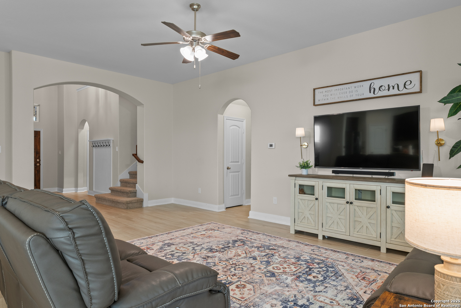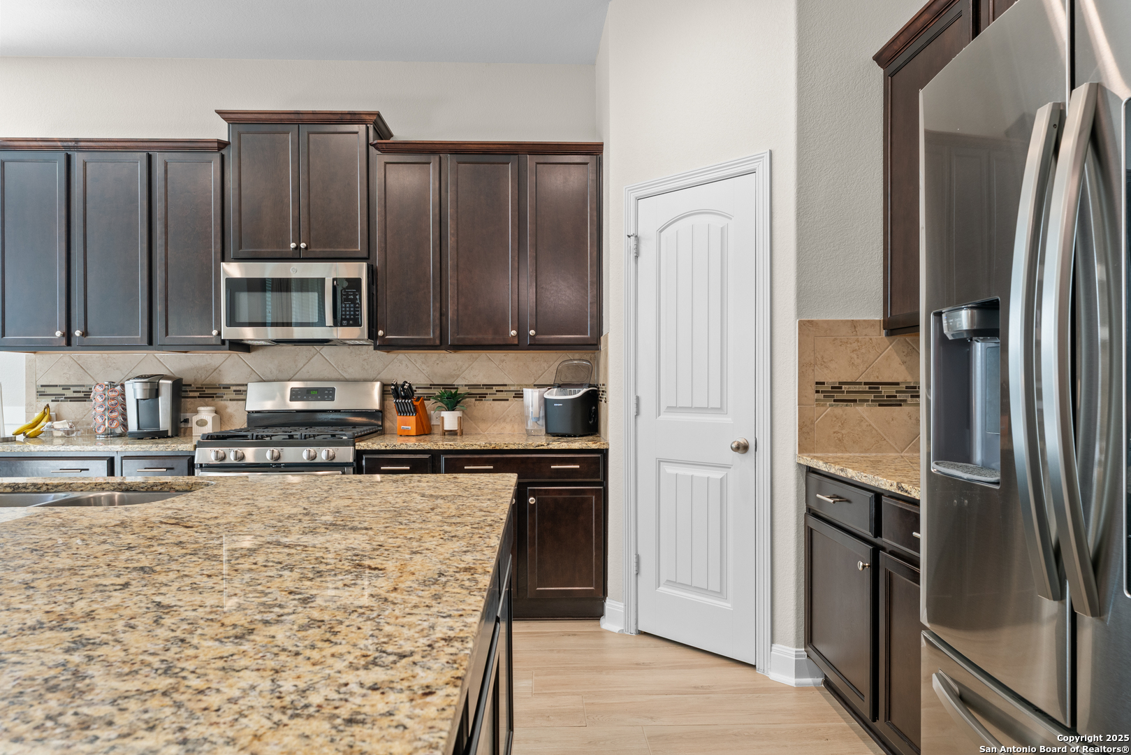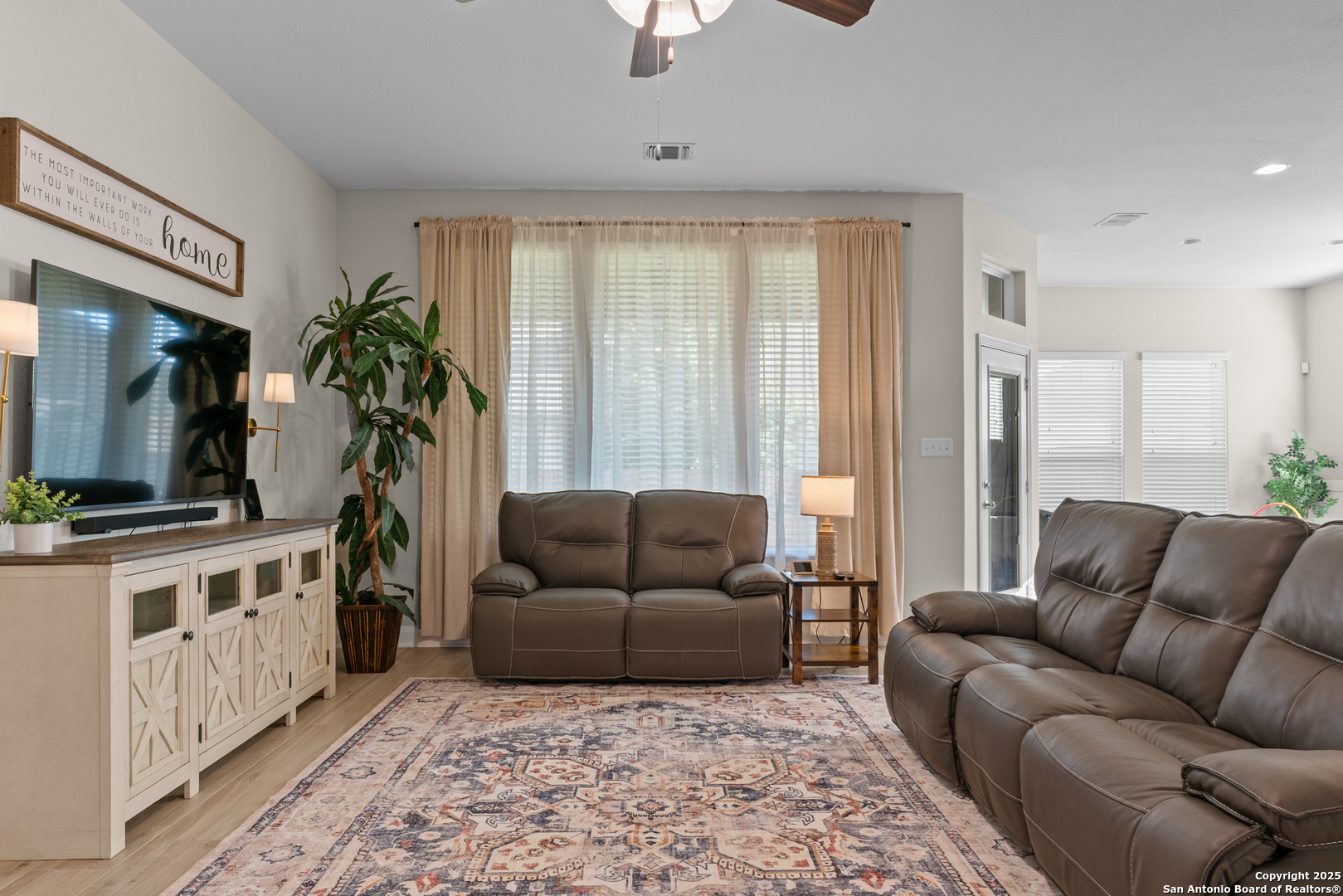 Beautifully maintained two-story home located in the highly desired city of Cibolo! Featuring 4 bedrooms, 3 full bathrooms and an open concept floor plan, this property perfectly blends warmth, comfort and modern living. High ceilings, arched entryways and natural light that fills the spacious living area. The chef's kitchen showcases rich expresso cabinetry, granite countertops, stainless steel appliances and a large island- ideal for family gatherings or entertaining guests. The primary suite is your private retreat, complete with a luxurious en-suite bath showcasing a soaking tub, separate shower and dual vanities. Upstairs you'll find a versatile loft- perfect for a home office, game room or media space. Outside enjoy a covered patio overlooking the lush backyard and storage shed- ideal for Texas evenings with family and friends. Conveniently located near top-rated schools, shopping and dining, this home offers the best of suburban living with easy access to I-35 and Randolph AFB. Schedule your private showing today!
