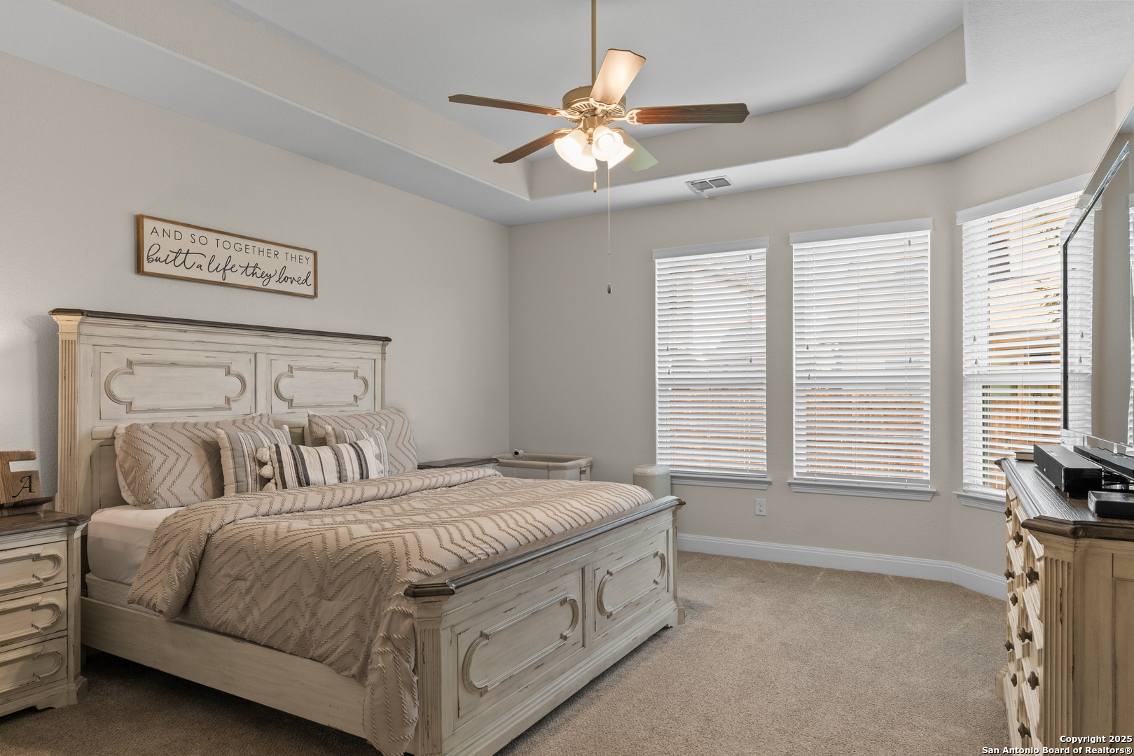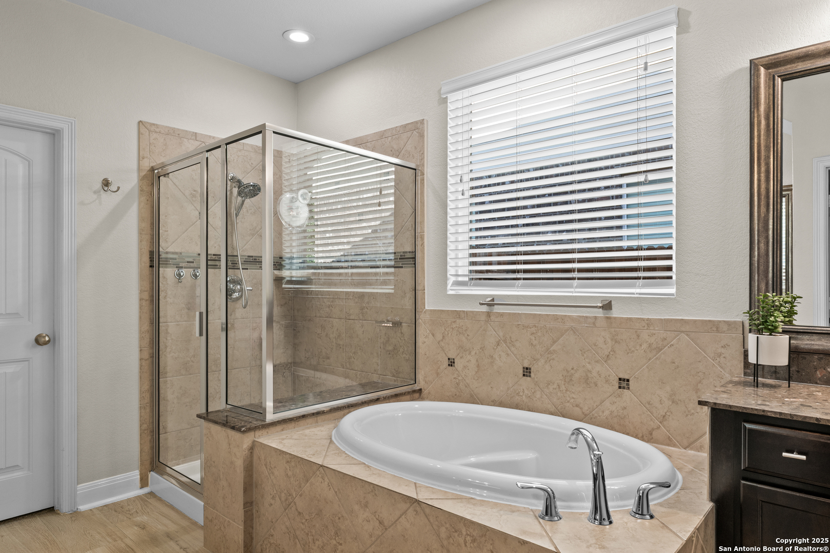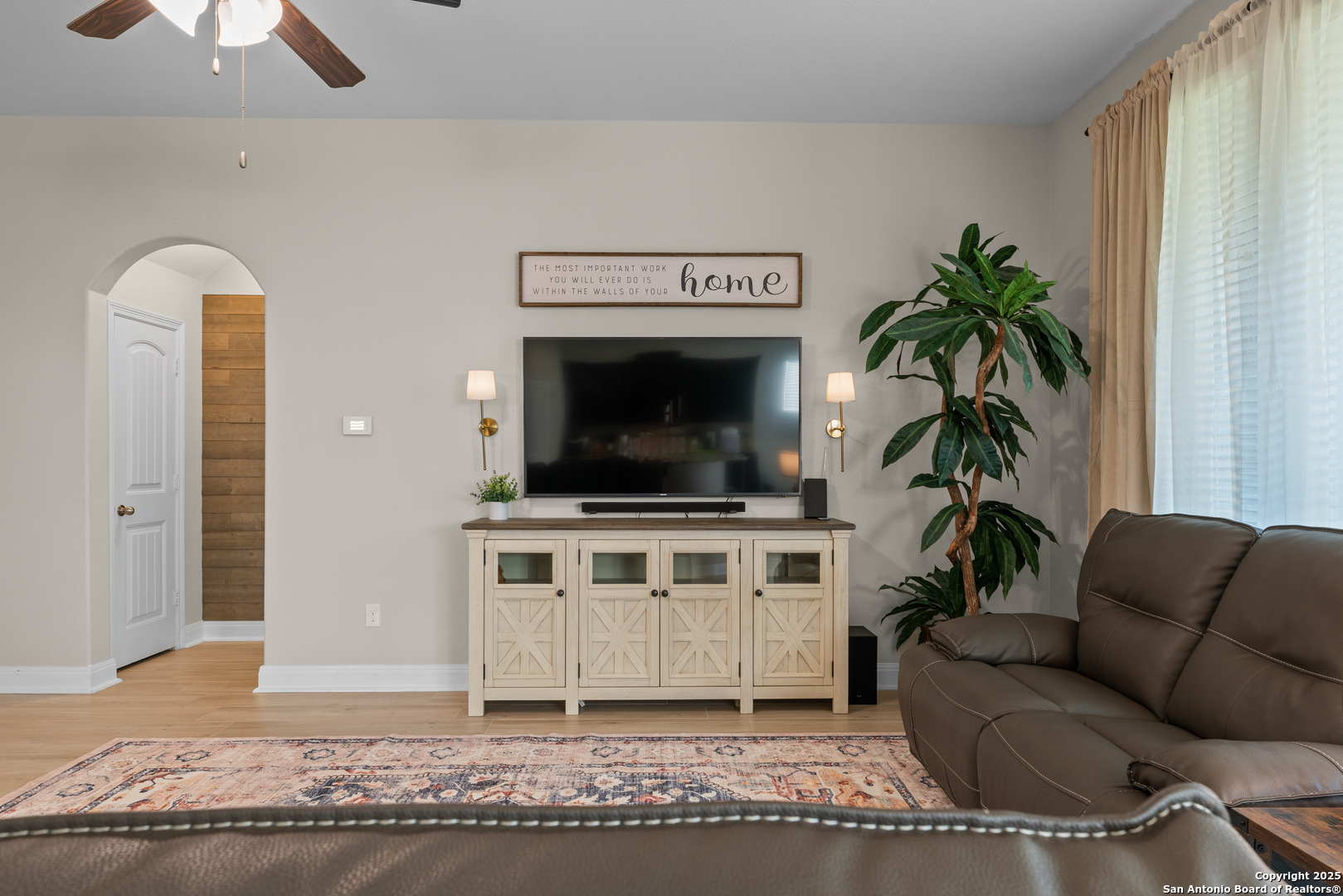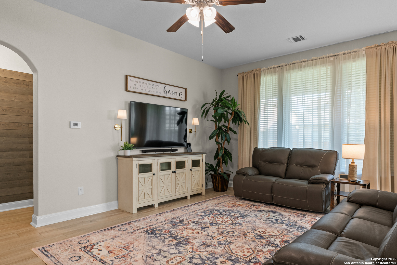 Beautifully maintained two-story home located in the highly desired city of Cibolo! Featuring 4 bedrooms, 3 full bathrooms and an open concept floor plan, this property perfectly blends warmth, comfort and modern living. High ceilings, arched entryways and natural light that fills the spacious living area. The chef's kitchen showcases rich expresso cabinetry, granite countertops, stainless steel appliances and a large island- ideal for family gatherings or entertaining guests. The primary suite is your private retreat, complete with a luxurious en-suite bath showcasing a soaking tub, separate shower and dual vanities. Upstairs you'll find a versatile loft- perfect for a home office, game room or media space. Outside enjoy a covered patio overlooking the lush backyard and storage shed- ideal for Texas evenings with family and friends. Conveniently located near top-rated schools, shopping and dining, this home offers the best of suburban living with easy access to I-35 and Randolph AFB. Schedule your private showing today!