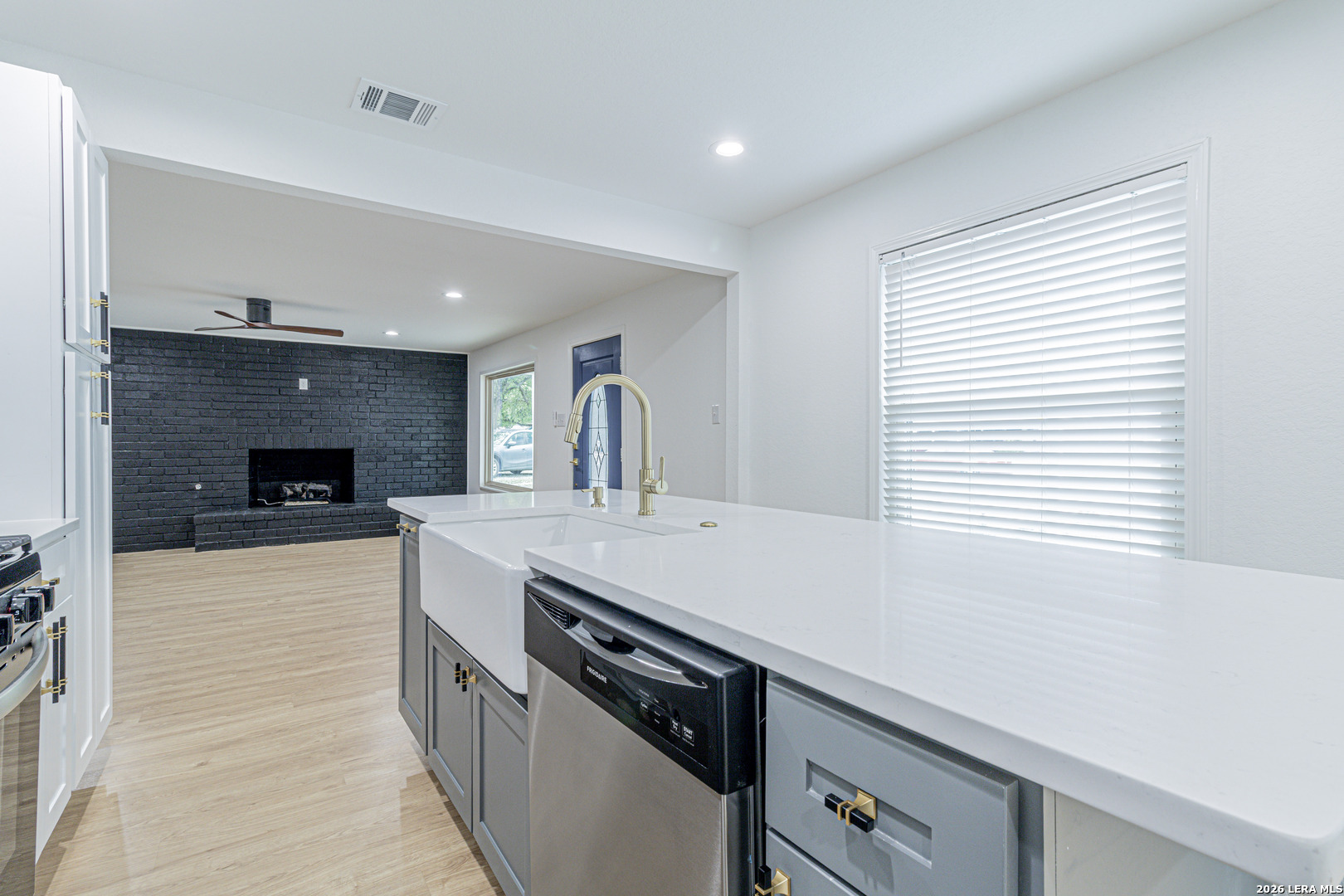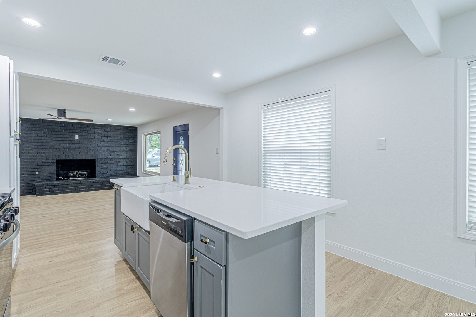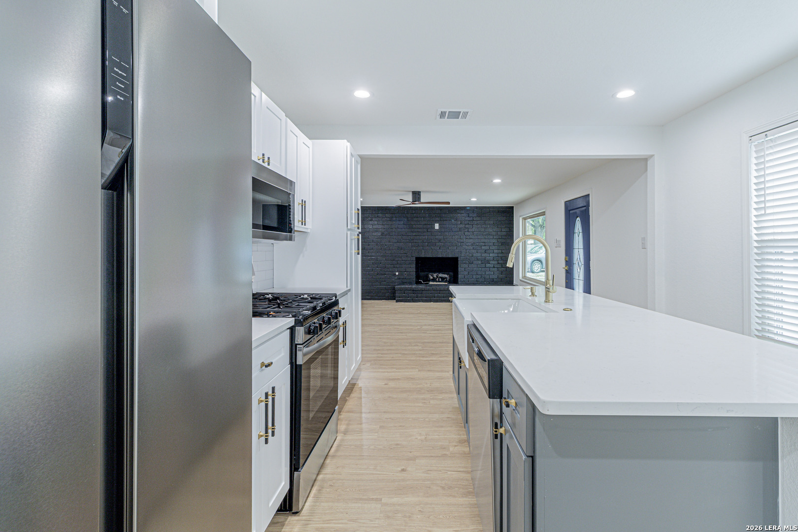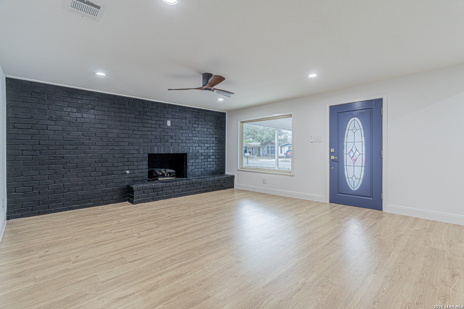 Fully remodeled and ready to go, this 4-bedroom, 2.5-bath home offers just over 2,000 square feet of updated living space in the heart of the 78237 area. This isn't your typical cosmetic flip-major improvements have already been handled, including foundation work (has a 5-year warranty and engineer's letter) new HVAC system, updated plumbing, insulation, windows, and a full interior/exterior refresh. Inside, you'll find an open-concept layout with wide vinyl plank flooring throughout, tons of natural light, and a standout brick fireplace that gives the main living area real character. The kitchen has been upgraded with quartz countertops, brand-new cabinetry, and Frigidaire appliances, all flowing seamlessly into the dining and living spaces-perfect for everyday living or entertaining. The primary suite features a walk-in closet and a fully updated bathroom with a walk-in shower. Secondary bedrooms are well-sized and offer flexibility for guests or family. Out back, you've got a covered patio ideal for relaxing or hosting, along with two separate storage areas for added convenience. No HOA, easy access to major highways, and close proximity to shopping and dining. With recent updates throughout and a price adjustment in place, this is a solid opportunity for anyone looking for a move-in ready home with real value. Book a showing today!