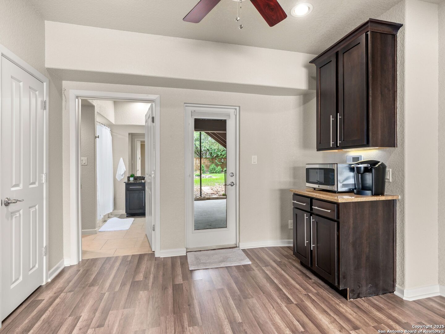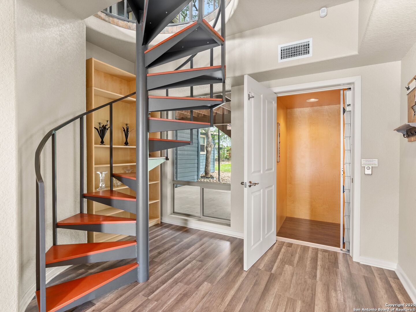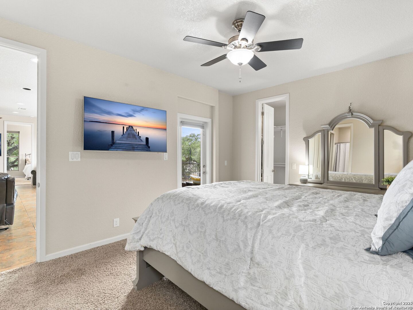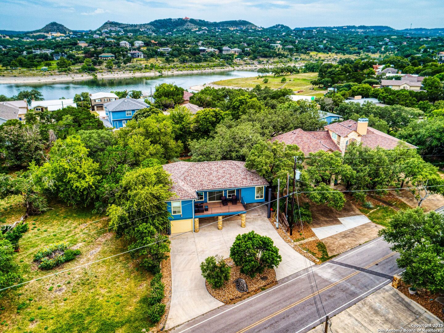 Experience lake living at its finest in this beautifully updated Canyon Lake retreat, just steps from Boat Ramp 2 in the highly desirable Canyon Lake Village West community. This home is steel constructed and designed to showcase its incredible lake views with an elevated reverse floor plan that maximizes the scenery from the main living areas and upstairs bedrooms. The property can be enjoyed as a full time residence or a short term rental investment. Step out onto the expansive front balcony and take in the panoramic blues of Canyon Lake, perfect for morning coffee or sunset gatherings. The back balcony offers a peaceful setting overlooking a fully fenced yard. Inside, you'll find an inviting open concept layout featuring a bright and airy living, dining, and kitchen space with soaring ceilings and abundant natural light. The primary suite opens directly onto the front balcony and includes a spacious walk in closet, dual storage options, and a private ensuite bath. Two additional bedrooms are connected by a Jack and Jill bath, with one also offering balcony access. Downstairs, a private elevator takes you to a flexible fourth bedroom or secondary living area. The space is complete with its own bathroom, a coffee bar, and direct outdoor access. Additional highlights include a newer roof, updated flooring downstairs, and full community amenities including a pool, tennis courts, park, and a clubhouse. Whether you're looking for a serene getaway, an Airbnb investment, or a full time residence, this home offers it all. Just minutes from Whitewater Amphitheater, the Guadalupe River, and the charming towns of New Braunfels, Wimberley, and San Antonio.