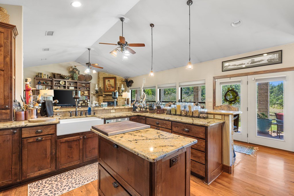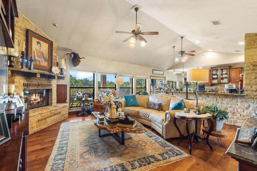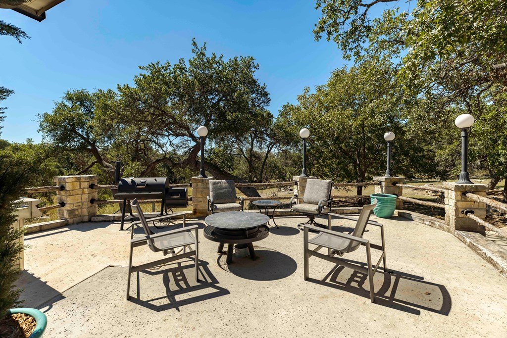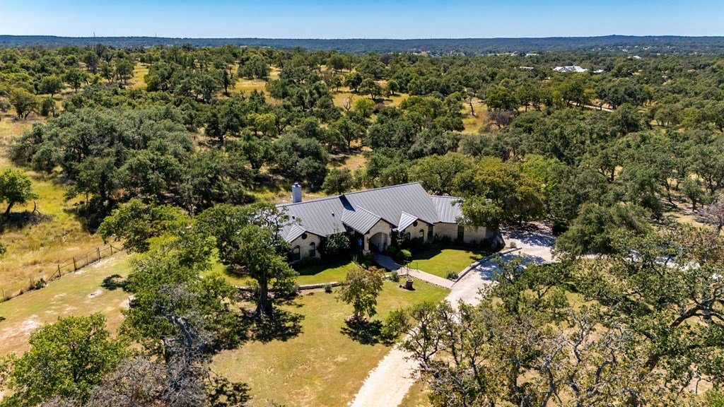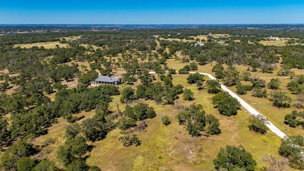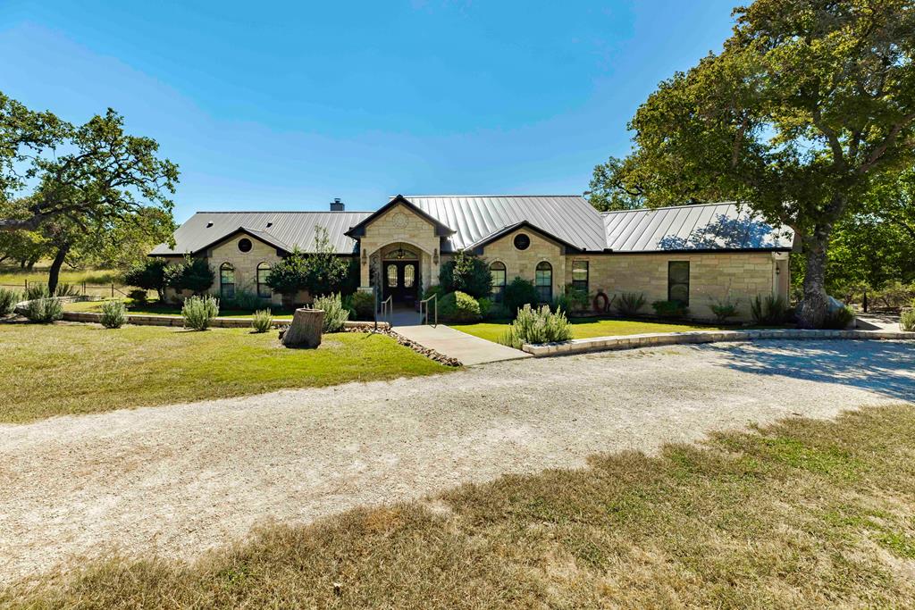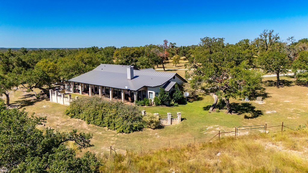Nestled in the serene Hill Country, this picturesque 3-bedroom, 2 1/2-bath home is a tranquil retreat located just 14 miles from Main Street in Fredericksburg. Situated on 25 acres within the Lasso Ranch subdivision, the property offers unparalleled privacy amidst the grandeur of towering Oak trees. Boasting a newly installed metal roof, the home features a spacious kitchen with a generously sized walk-in pantry, a charming covered patio with a BBQ and entertainment area, and a luxurious primary suite with an expansive walk-in closet and tub. Additionally, a cozy fireplace and an extra room suitable for use as an office or storage add to the allure of this exceptional property. The well-maintained grounds surrounding the home are adorned with exquisite landscaping, enhancing the property's beauty. A new well pump has been recently replaced (60 GPM). This Hill Country-style home is a must-see!
