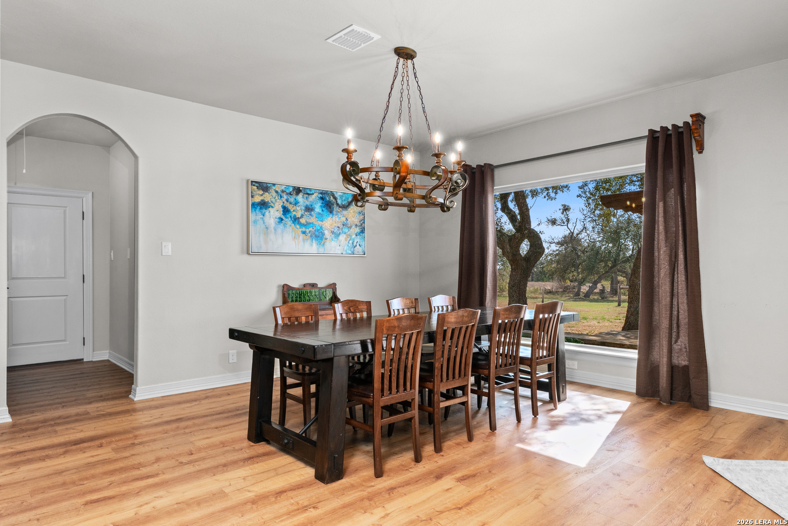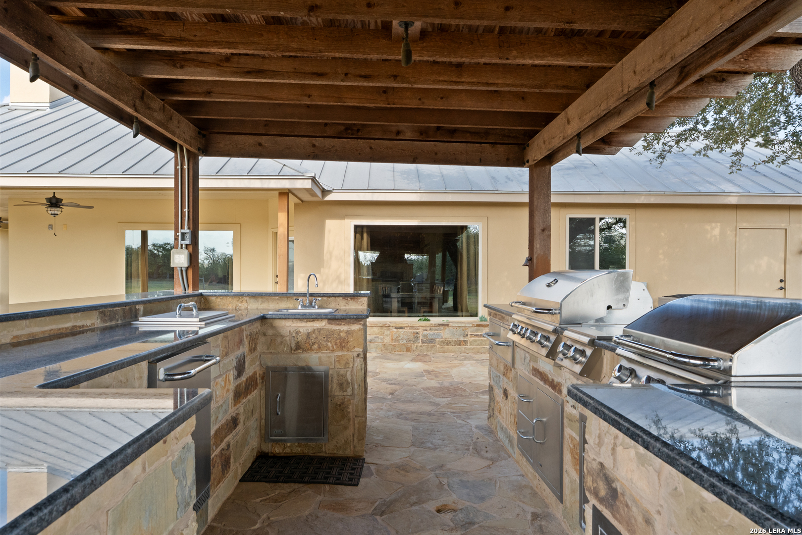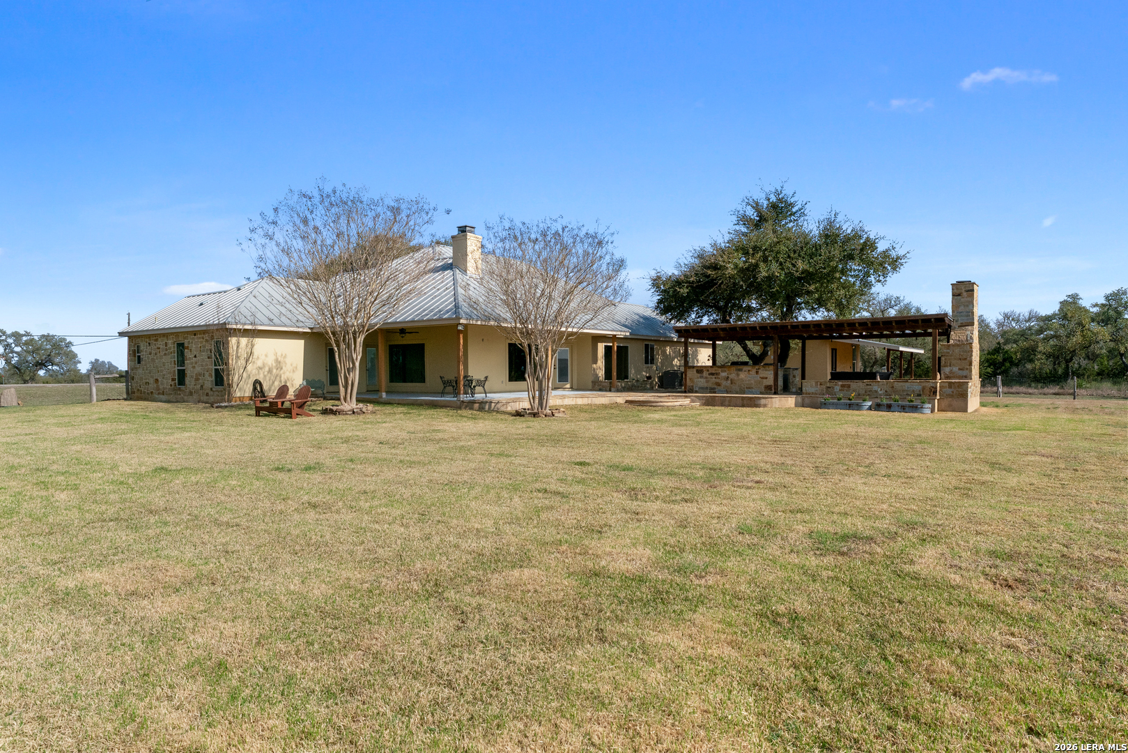 Indulge in this seductive sanctuary nestled in an exclusive gated community where every glance is rewarded with breathtaking panoramic views that stretch across the horizon. Waggener Ranch teases the senses with its exotic wildlife offering its owners ag exemption rights where graceful blackbucks roam freely, their elegant horns and sleek forms adding a touch of wild, untamed allure to the landscape. Step inside to an open, flowing floorplan that invites intimacy and connection, centered around a gourmet kitchen designed to tempt and tantalize. Sleek granite countertops gleam under soft lighting, perfect for late-night culinary adventures or lingering mornings with coffee and stolen kisses. The generously sized bedrooms offer private escapes, each one promising restful nights and lazy mornings tangled in sheets. A spacious master suite boasts indulgent walk-in closets-cavernous, organized spaces waiting to showcase your finest lingerie, tailored suits, or nothing at all. The game room becomes a playful retreat with custom built-in bunk beds-cozy, inviting nooks ideal for whispered secrets, movie marathons, or imaginative overnight adventures. Outside awaits an incredible outdoor kitchen and patio-your ultimate stage for sensual evenings under the stars. Imagine the sizzle of steaks on a high-end grill, chilled drinks lined up on expansive counters, and plush seating arranged for close conversations or slow dances as string lights twinkle overhead. Whether hosting intimate gatherings or stealing quiet moments with someone special, this alfresco paradise beckons with warmth, luxury, and endless possibilities for indulgence. A practical storage shed keeps tools and toys discreetly tucked away, leaving the grounds pristine and ready for whatever spontaneous pleasures the day (or night) brings. This isn't just a home-it's a luscious lifestyle waiting to envelop you.
