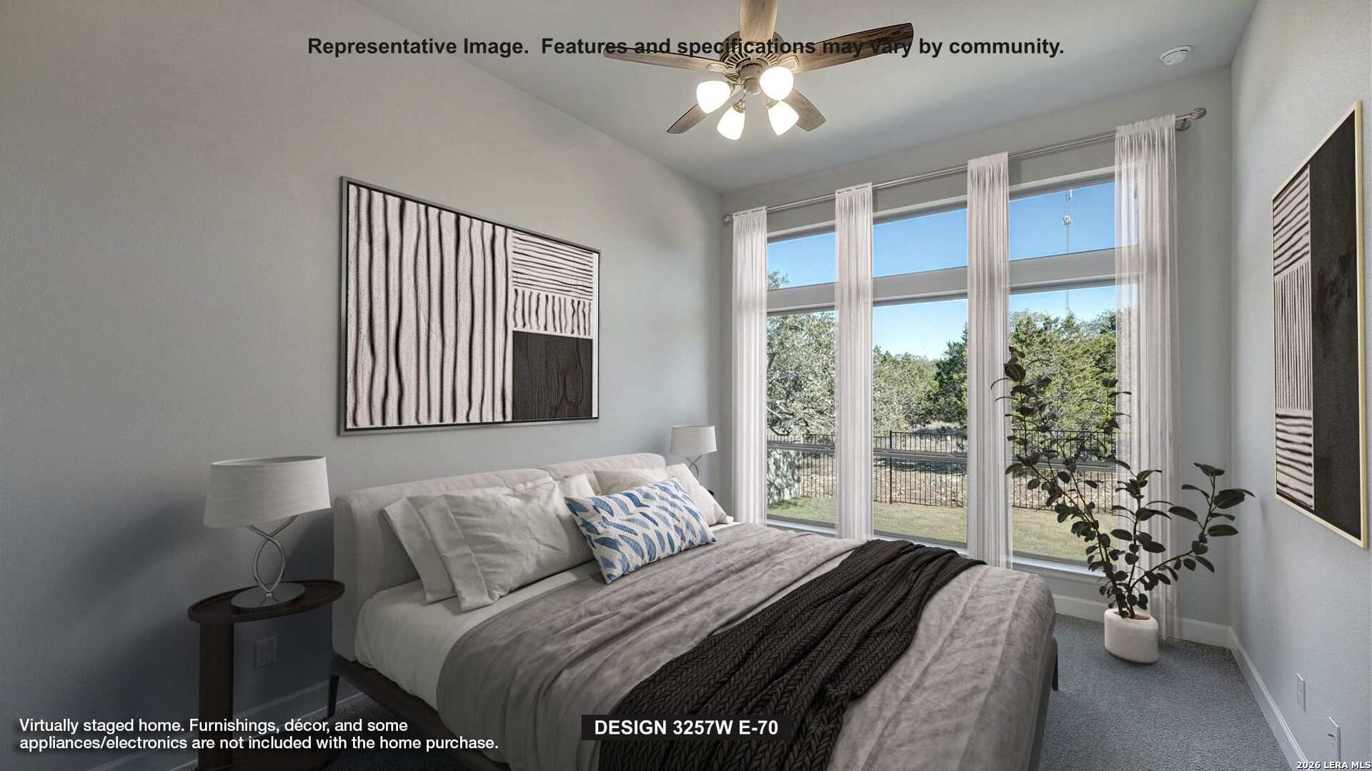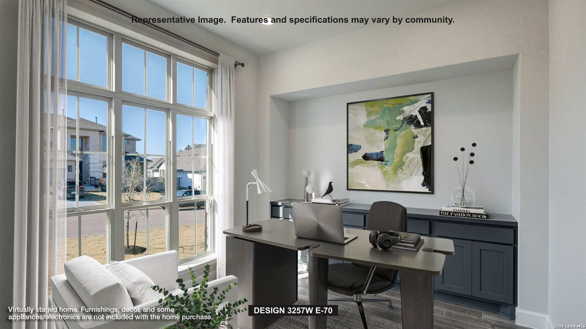 Home office with French doors and formal dining room frames elongated entry. Open family room features wall of windows and a cast stone fireplace. Island kitchen features butler's pantry, a 5-burner gas cooktop, and large walk-in pantry. Game room with French doors off morning area. Primary suite includes primary bath with dual vanity, a freestanding tub, separate glass-enclosed shower and two walk-in closets. Guest suite offers private bath. High ceilings, large windows and abundant closet space add to this generous one-story home. Extended covered backyard patio. Landscape features a 6-zone sprinkler system. Mud room off three-car garage.
