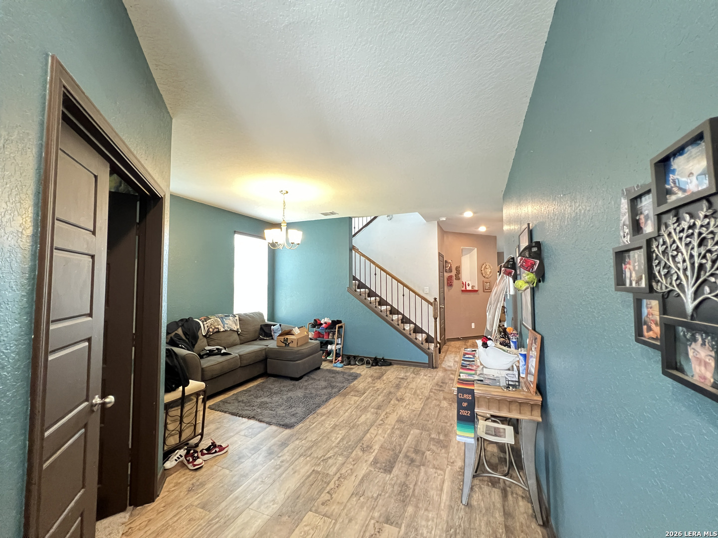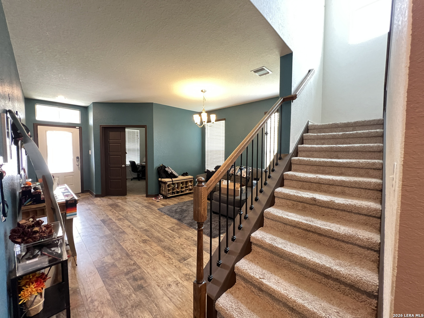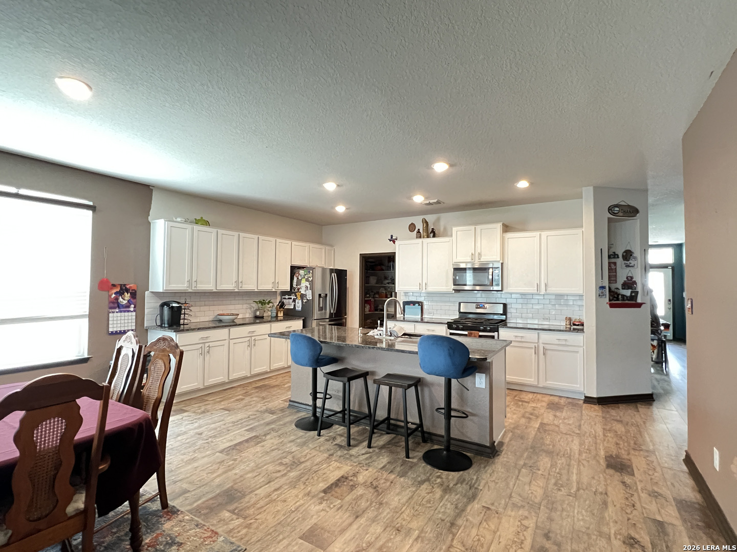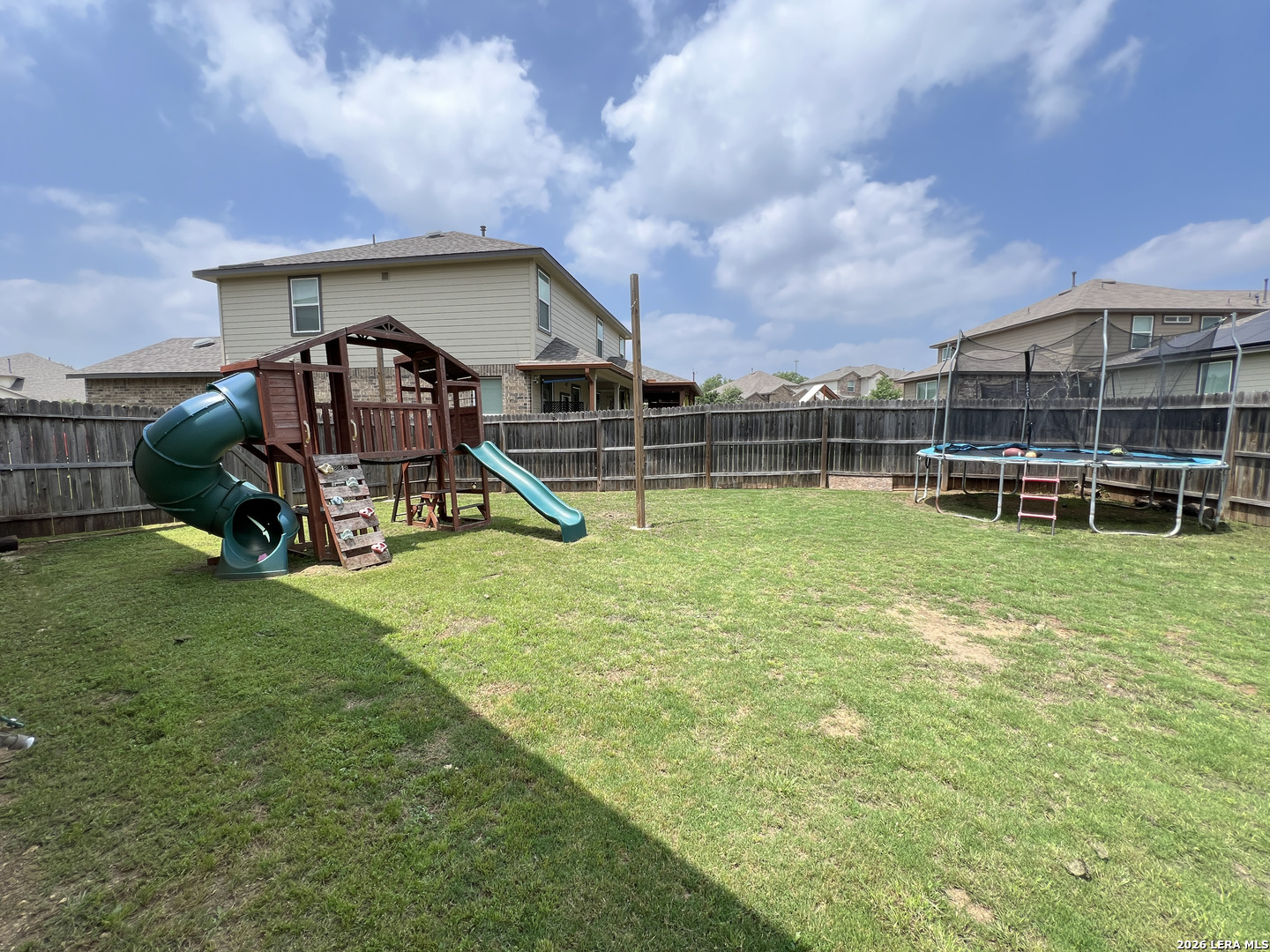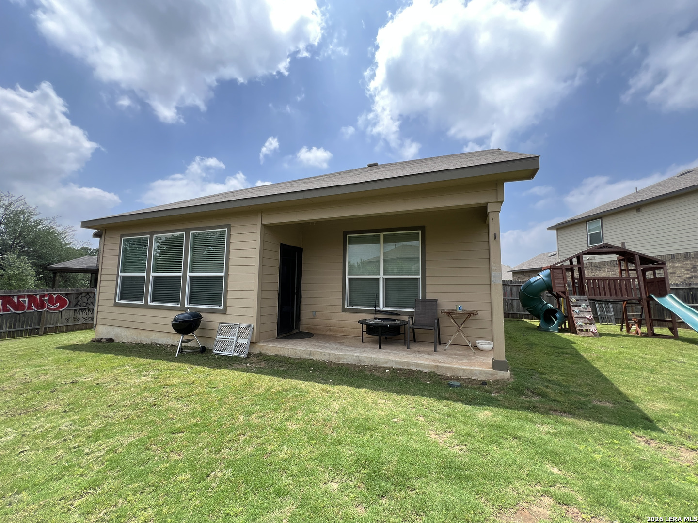 Welcome to this beautiful 3534 SF, 5-bedroom, one office, 3.5-bathroom home in the highly desirable Copper Canyon community where the well-designed homes located at the edge of the Hill Country and easy access to San Antonio. THIS HOUSE IS LISTED @ THE LOWEST $/SF IN THIS NEIGHBORHOOD ($26K BELOW COUNTY APPRISAL VALUE!). Step inside from the front porch to find an inviting entry way that opens to an office area, a charming formal dining room and your blended kitchen and breakfast area. The gourmet kitchen features spacious quartz countertops with classic white subway tile backsplash, gleaming stainless-steel appliances, a natural gas cooking range, shaker style cabinets and a corner walk-in pantry. A spacious kitchen island with an eat-in bar overlooks your breakfast area so you will never miss a moment with your loved ones. The spacious open concept living room is separated from the breakfast nook by a half wall and includes a ceiling fan, plenty of windows, wood like tile hard surface flooring and a doorway leading to the back covered patio. Entertain your guests or relax with the family in your fully landscaped and irrigated backyard. Enjoy the private main bedroom suite situated off the breakfast nook, your attractive ensuite bathroom includes dual vanity sinks, a tiled walk-in shower and a garden tub. The second floor offers a large open game room area with plenty of space to play or entertain. A hallway off the game room area connects a full bath, two secondary bedrooms and a third secondary bedroom with private full bath and walk-in closet. The neighborhood amenities include a pool, gym, park, and clubhouse. It is convenient to access US 281, LP 1604and SH 46. Come and check out this gem today!