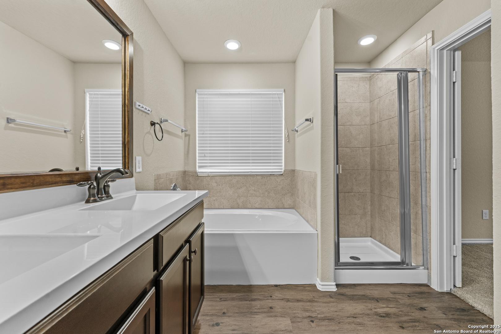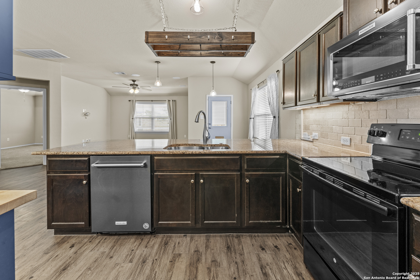 Welcome to 2937 Field View, located in the desirable Fellers Community. The charming one-story home welcomes you with a cozy front yard featuring beautiful curb appeal and two mature trees. Inside, the home offers 3 bedrooms and 2 bathrooms with an open floorplan filled with natural light. The kitchen includes bar seating, a cozy eating area, luxury wood cabinets, and an updated dishwasher. The primary suite features a private bathroom with double vanities, a garden tub, separate shower, and a large walk-in closet. The fully fenced backyard includes a covered patio, a shed, and stone wall fencing along one side, with trees for added privacy. This home perfectly combines modern updates with thoughtful design, creating an inviting and comfortable space.