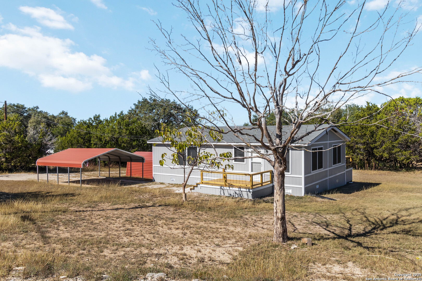 Charming 2-bedroom, 2-bath home on a spacious 0.65-acre lot in the desirable Deer Meadows community! Enjoy peaceful country living with neighborhood amenities including a swimming pool, clubhouse, and playground. The property backs up to a scenic cattle ranch, offering added privacy and beautiful views. Conveniently located near shopping and within easy reach of New Braunfels, San Antonio, and Austin. Plenty of room to add a garage or fenced yard-plus a double carport and storage shed already in place!