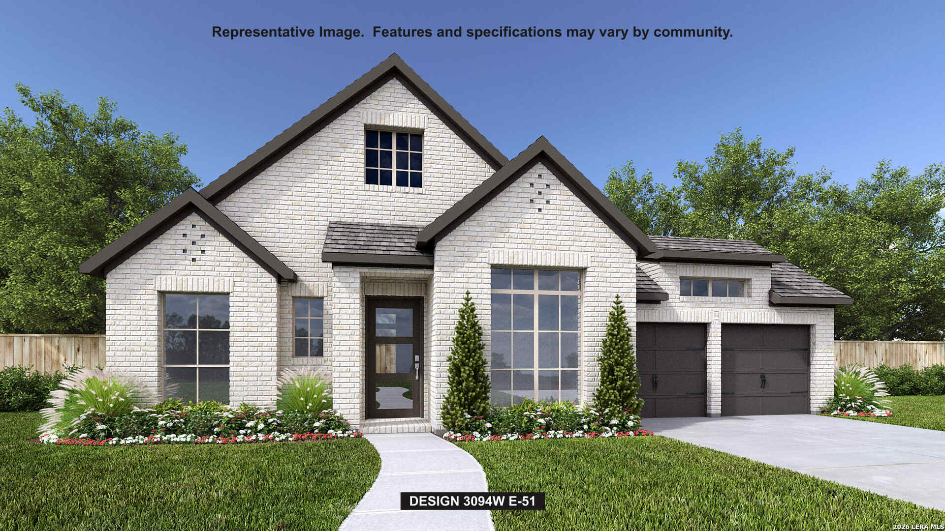 Welcoming entry framed by home office with French doors. Extended entry flows past a media room with French door entry. Open family room with a wall of windows flows into the dining area. Island kitchen features a corner walk-in pantry and extends to the morning area. Secluded primary suite with wall of windows. Primary bathroom offers a French door entry with dual vanities, garden tub, separate glass enclosed shower, a linen closet and two walk-in closets. Secondary bedrooms with walk-in closets. Two full bathrooms and a half bathroom complete this design. Covered backyard patio. Utility room and mud room just off the three-car garage.