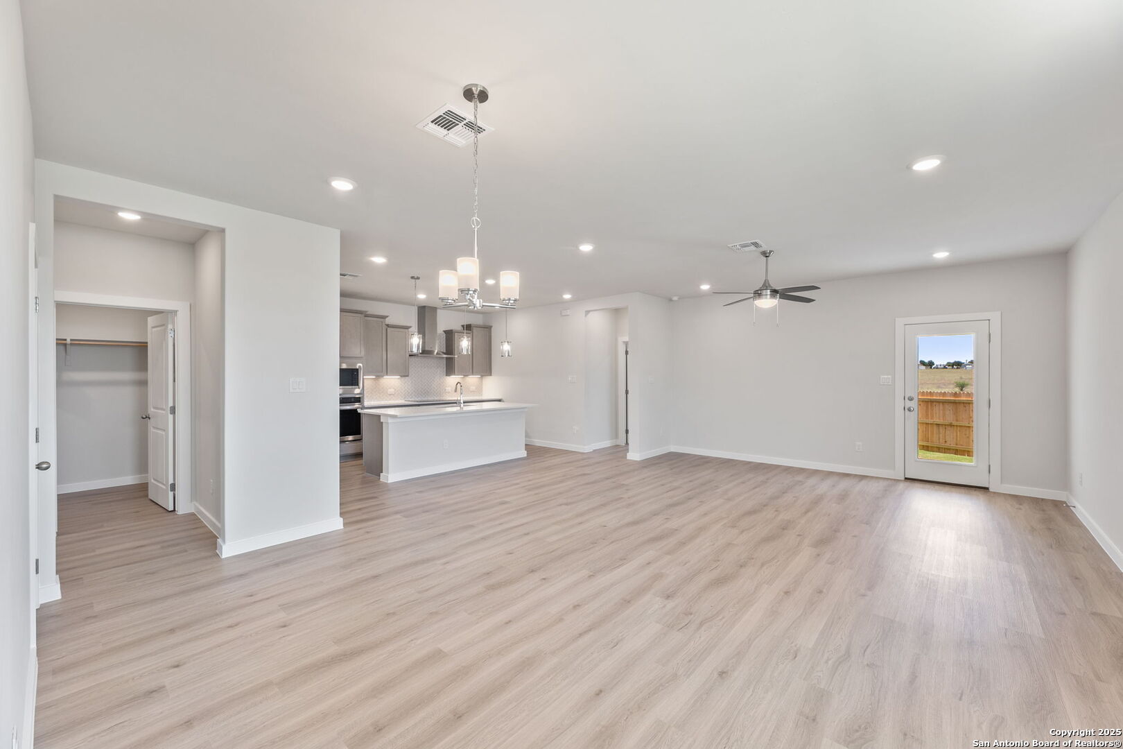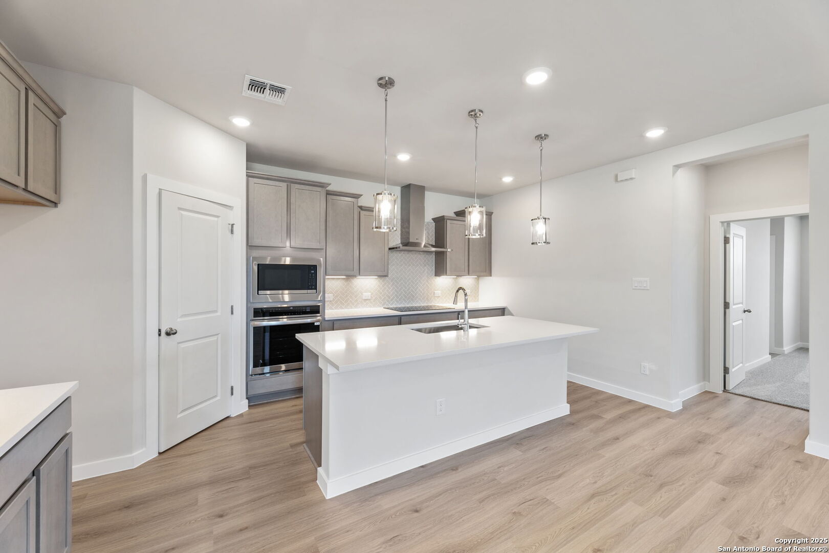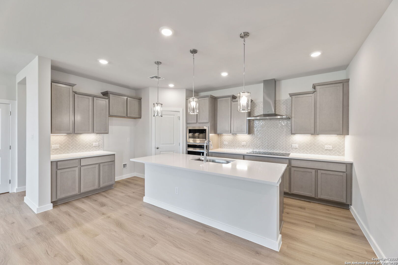 Nestled on a quiet street, the Colorado floor plan stands out with its Modern Farmhouse elevation, blending ornate details and brick accents for a charming yet sophisticated look. With only one neighbor to the side and none behind, you'll enjoy a sense of space and privacy that's hard to find. Step through the 8-foot front door, and a grand entryway greets you with soaring ceilings and an abundance of natural light. The home's warm, sophisticated finishes create an inviting atmosphere from the moment you arrive. Luxury vinyl plank flooring stretches throughout the main living areas, offering both durability and elegance. At the heart of the home, the Great Room makes an unforgettable impression. Designed for both comfort and style, this expansive space is perfect for gathering with family and friends. A ceiling fan with light and four additional LED disc lights ensure the room stays bright and inviting-whether you're hosting a lively get-together or winding down in the evening. A flat-mounted TV prep has already been installed, complete with a concealed conduit that keeps cords out of sight-so your entertainment setup looks just as sleek as the rest of the home. The gourmet kitchen seamlessly blends function and beauty. White quartz countertops and rich, gray-stained cabinetry create a striking contrast, while an elegant chevron-pattern backsplash in a warm greige tone adds refined texture. A sleek electric cooktop, built-in microwave and oven with stainless steel finish make meal prep effortless. Pendant lighting over the island enhances the space, while under-cabinet lighting provides a soft glow and highlights the designer finishes. A walk-in pantry keeps everything neatly stored. Tucked away on the main level, the owner's retreat is a private sanctuary. A tray ceiling adds architectural elegance, while four additional LED disc lights provide the perfect balance of brightness and ambiance. The deluxe shower is a true luxury, featuring large-format tile with the look of marble veining, a mudset tile floor, a built-in bench seat, and tile to the ceiling for a high-end, spa-like feel. The ensuite bath includes a double vanity with white quartz countertops, tall vanity height, a private commode, and a linen closet, along with a spacious walk-in closet with built-in shelving for effortless organization. Upstairs, the loft area overlooks the grand entry and offers a flexible space for a second living area, playroom, or home office. The three secondary bedrooms are all generously sized, with one featuring a walk-in closet. A shared bathroom is designed for convenience, with a double vanity topped with white quartz and a separate door to the tub and commode area, making it easy for multiple people to get ready at once. Smart storage and thoughtful details are found throughout the home. The spacious laundry room includes extra shelving and a hanging rod, helping keep everyday tasks organized. Plus, the home is pre-plumbed for a water softener, ensuring softer water for your laundry-helping clothes last longer and stay brighter. A large coat closet near the front entry and garage serves as the perfect drop zone, and the powder bath is tucked away for privacy, keeping main living areas uncluttered. Step outside to your covered patio, where you can relax and enjoy the peaceful surroundings. With no neighbors behind and none on the patio side, this outdoor space offers true privacy-whether you're sipping coffee in the morning or unwinding in the evening. Every detail of this home was selected with modern luxury, warmth, and everyday livability in mind. Come experience it for yourself-schedule a tour at our Hakes Brothers model home today!