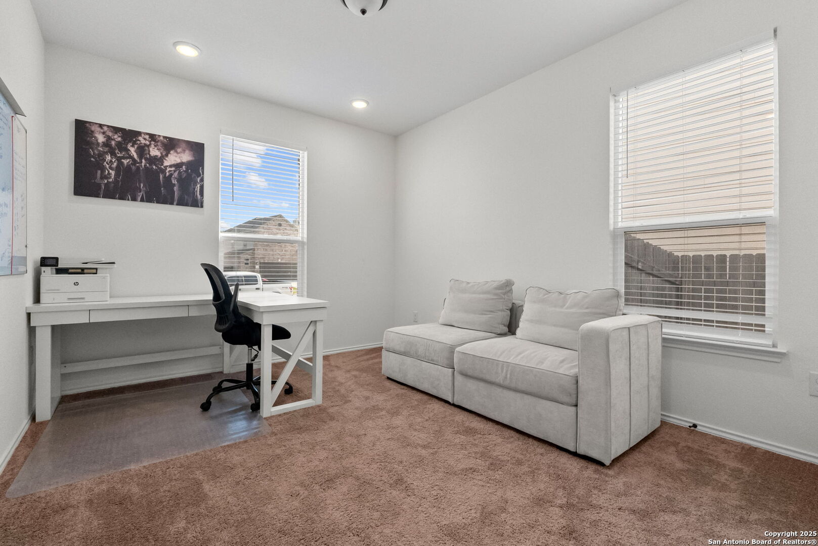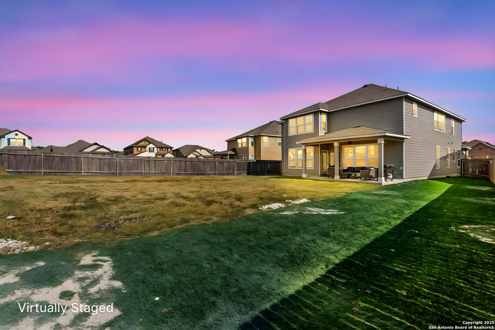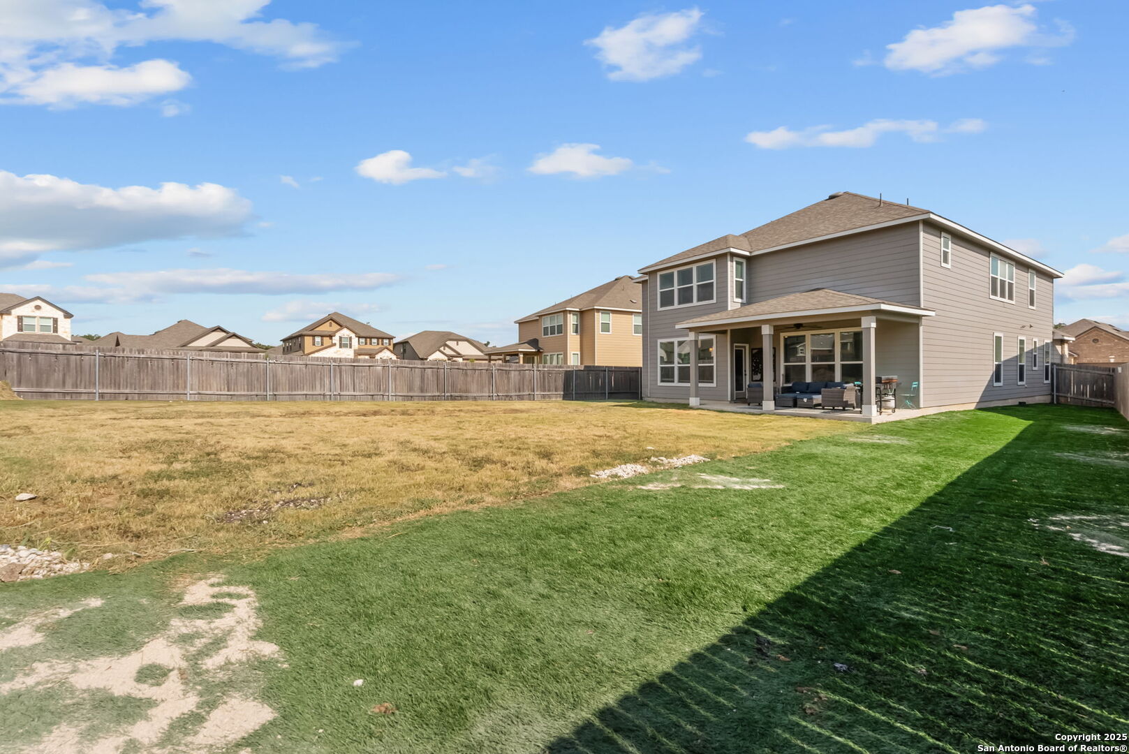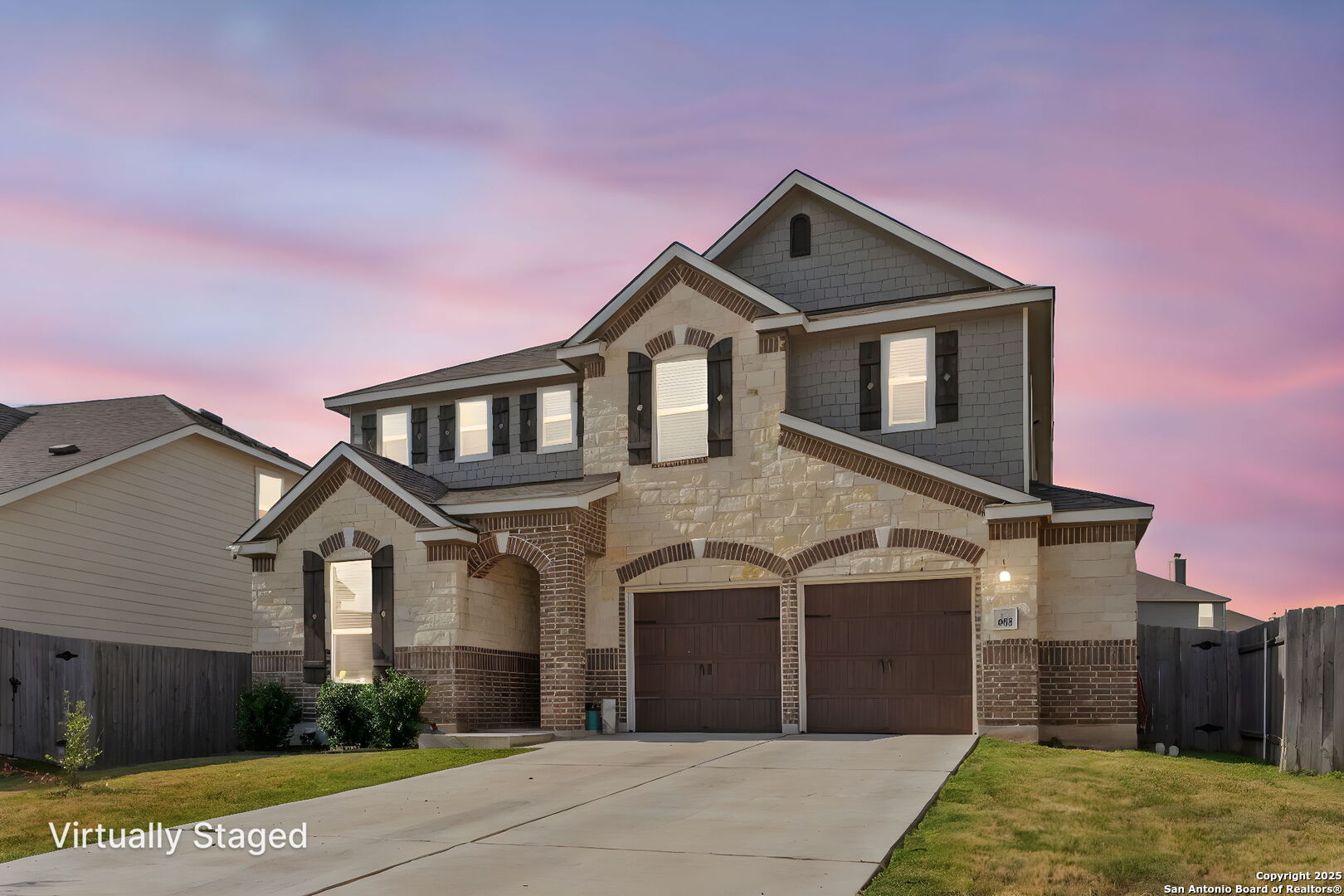 Welcome to 295 Kat Garnet, a spacious two-story home offering 4 bedrooms, 2.5 bathrooms, and a first-floor office that can serve as a 5th bedroom. The open layout features a large center-island kitchen with stainless steel appliances, walk-in pantry, dry bar, and cabinet lighting, flowing into the dining and living areas with soaring ceilings. The primary suite includes an 11x11 flex space ideal for an office, workout area, or sitting room, along with his-and-her walk-in closets, dual vanities, and a walk-in shower. Upstairs you'll find three additional bedrooms, a full bath, and a game room. Additional highlights include a two-car garage with extended storage, dual smart thermostats, two AC units, a covered patio, and a spacious backyard. Neighborhood amenities feature a park, playground, and basketball court, with a prime location just 20 minutes to downtown Austin and one hour to San Antonio.
