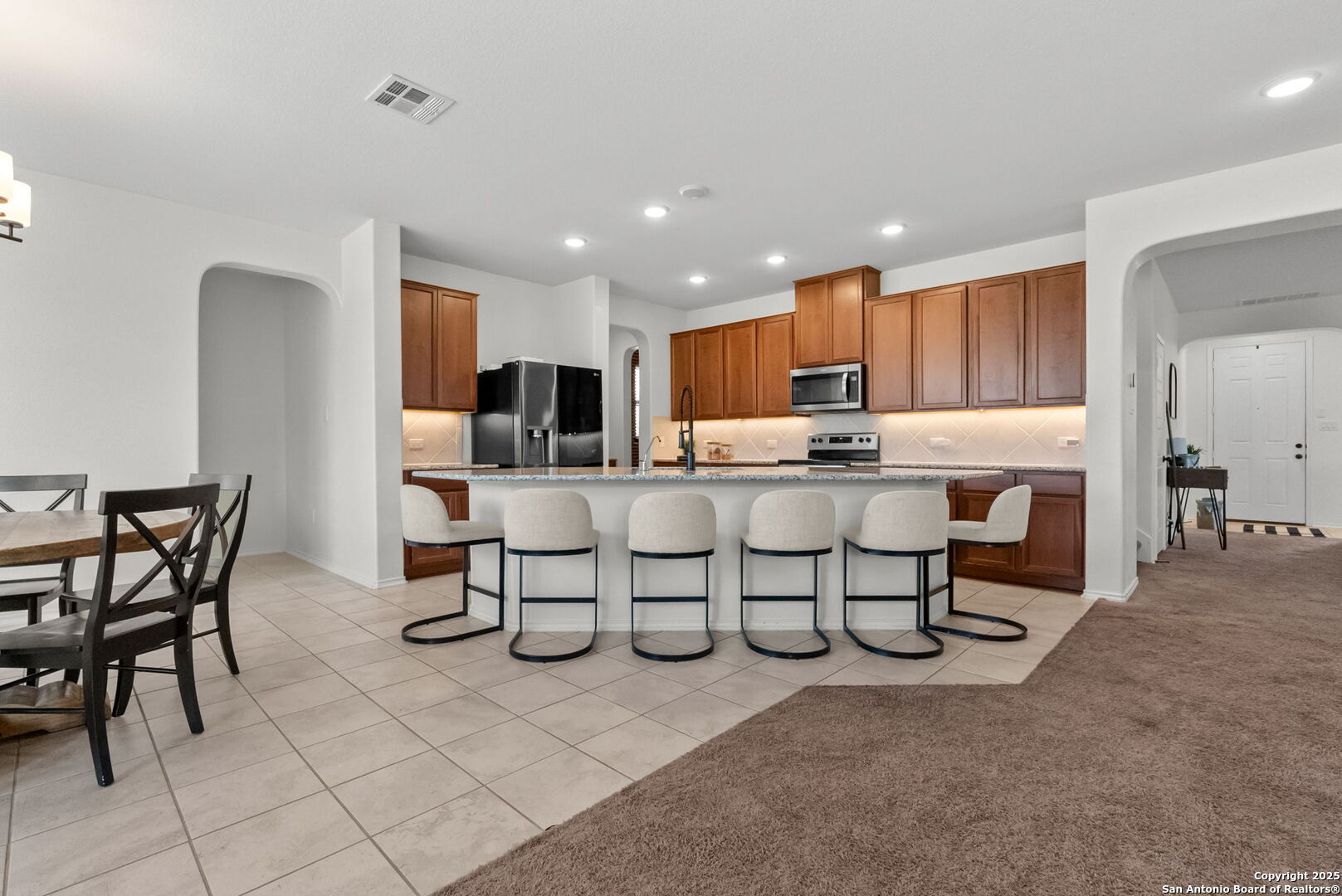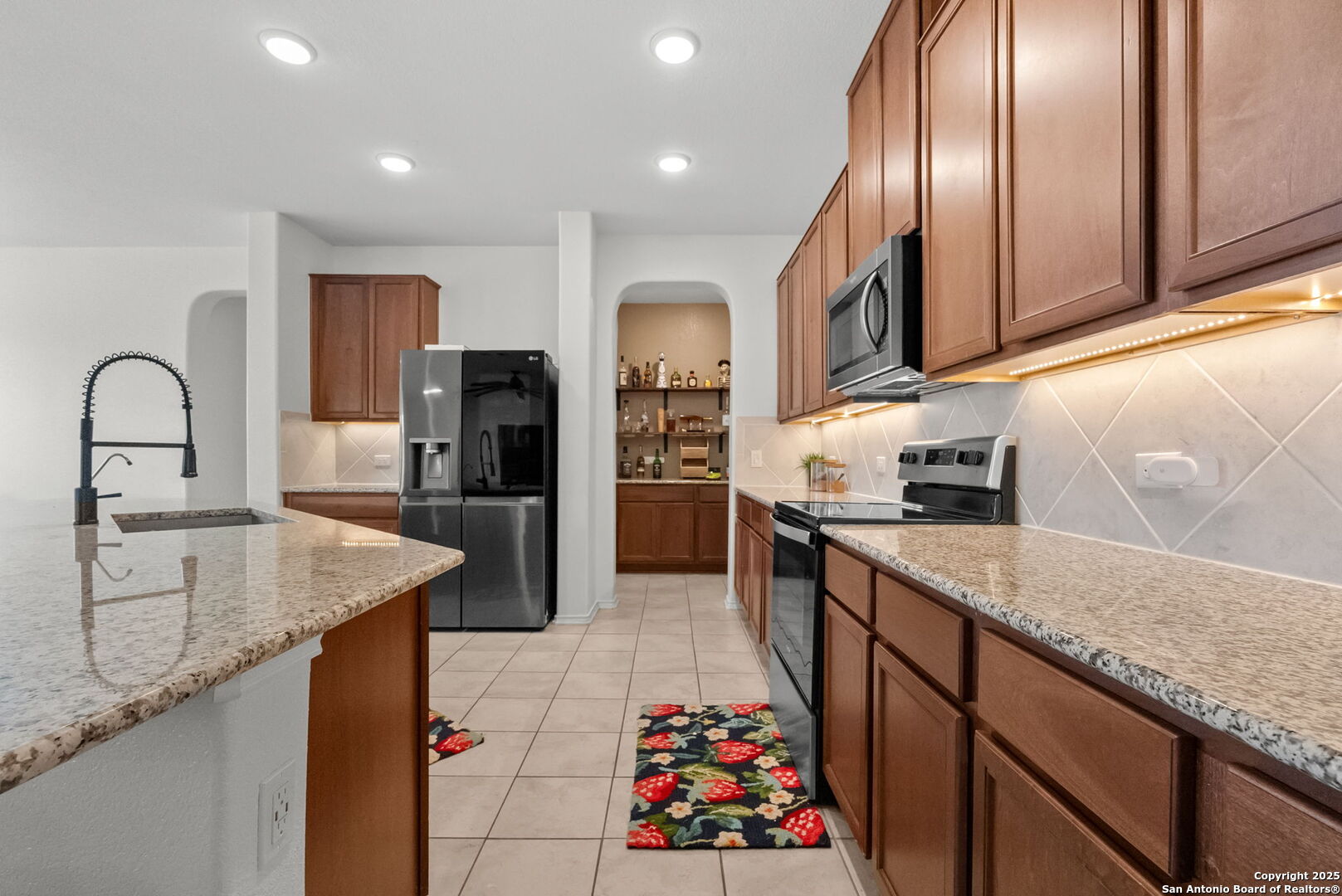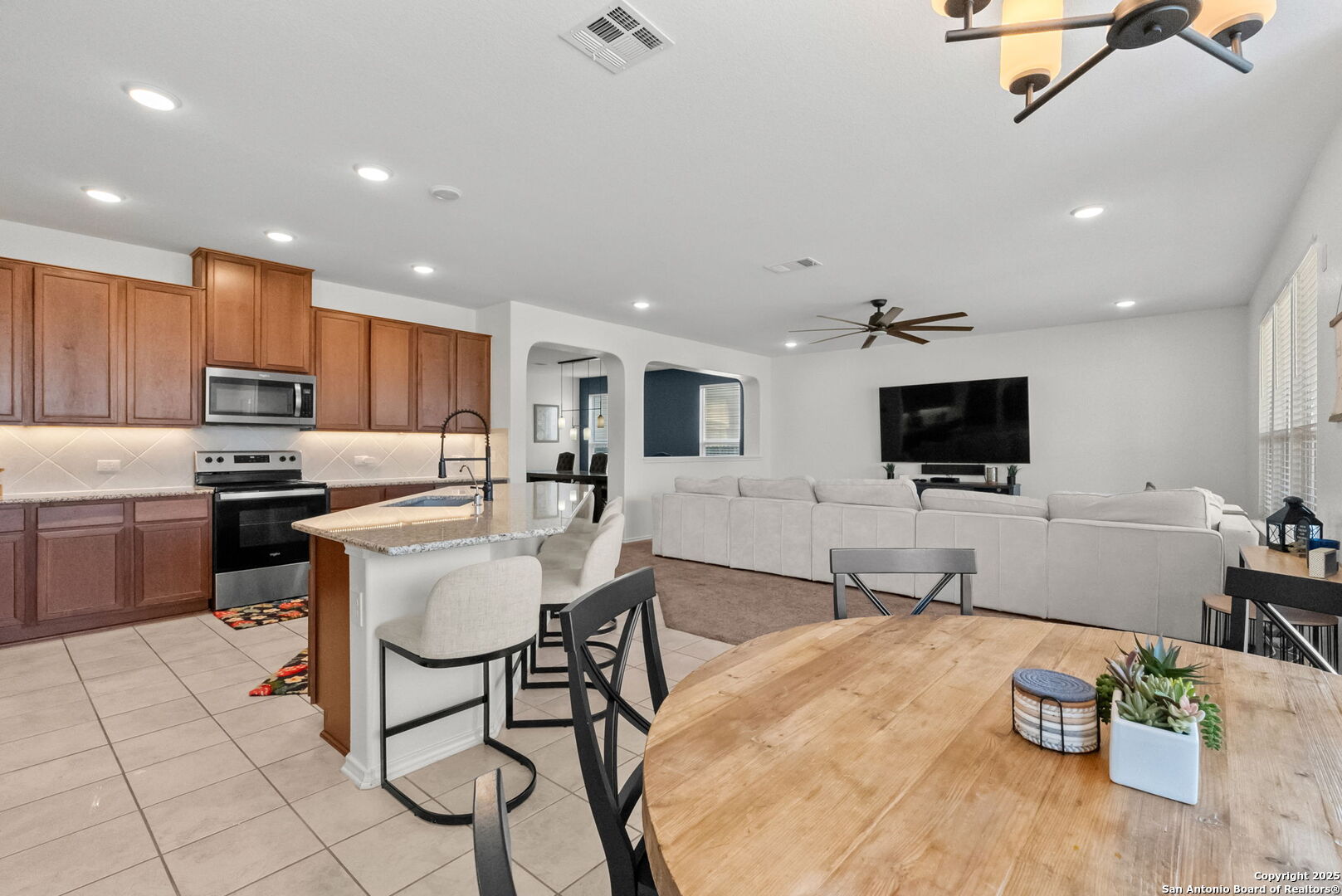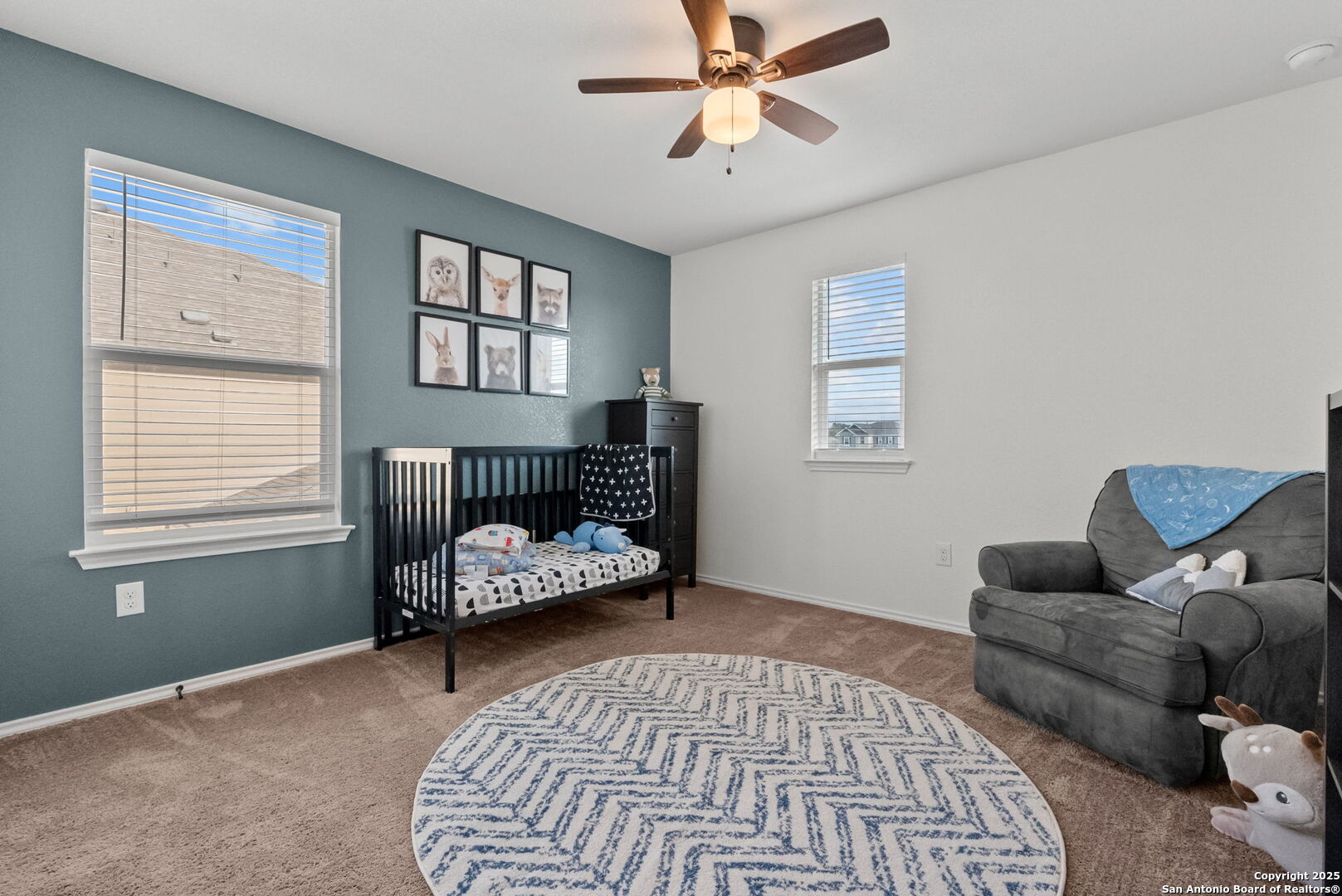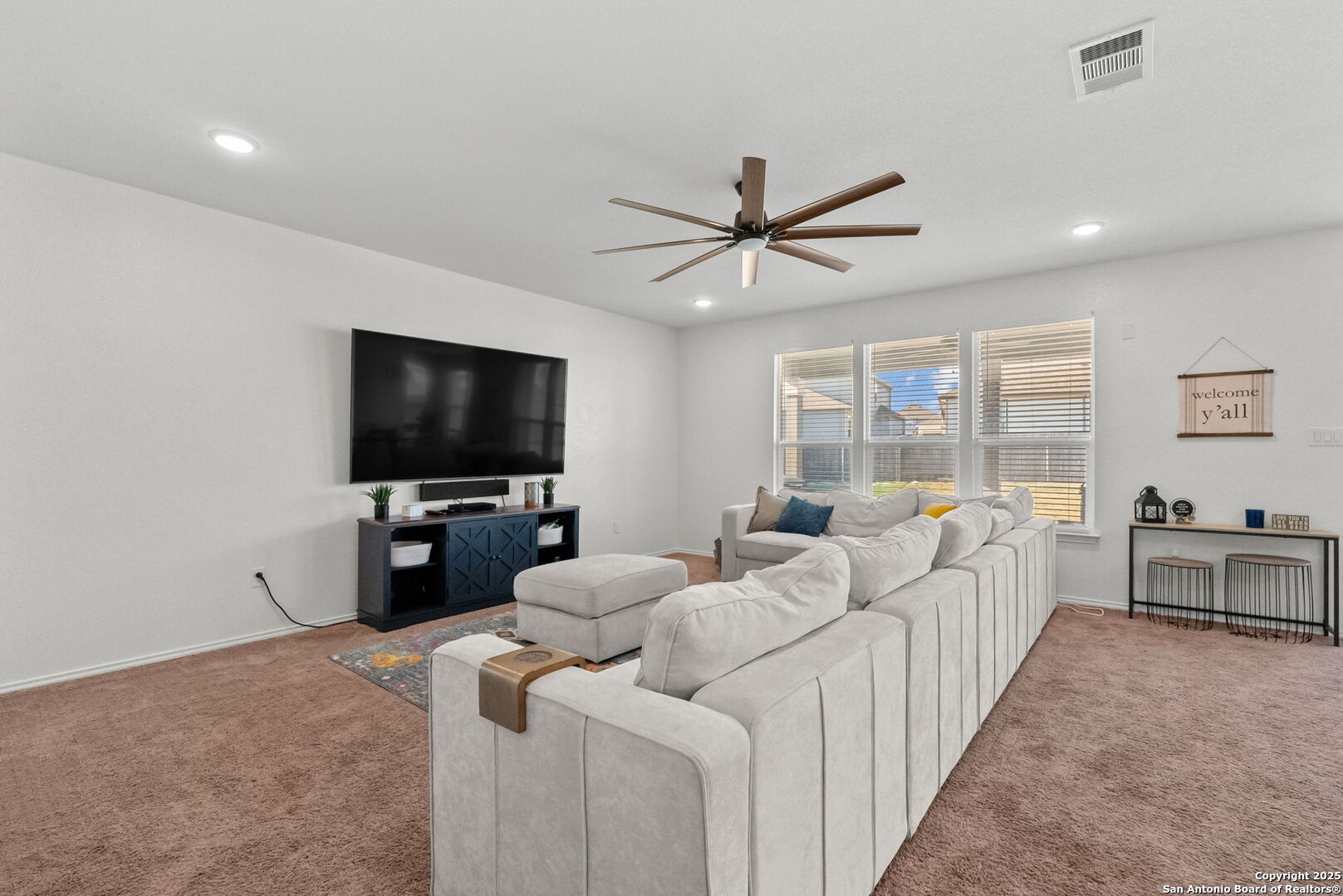 Welcome to 295 Kat Garnet, a spacious two-story home offering 4 bedrooms, 2.5 bathrooms, and a first-floor office that can serve as a 5th bedroom. The open layout features a large center-island kitchen with stainless steel appliances, walk-in pantry, dry bar, and cabinet lighting, flowing into the dining and living areas with soaring ceilings. The primary suite includes an 11x11 flex space ideal for an office, workout area, or sitting room, along with his-and-her walk-in closets, dual vanities, and a walk-in shower. Upstairs you'll find three additional bedrooms, a full bath, and a game room. Additional highlights include a two-car garage with extended storage, dual smart thermostats, two AC units, a covered patio, and a spacious backyard. Neighborhood amenities feature a park, playground, and basketball court, with a prime location just 20 minutes to downtown Austin and one hour to San Antonio.