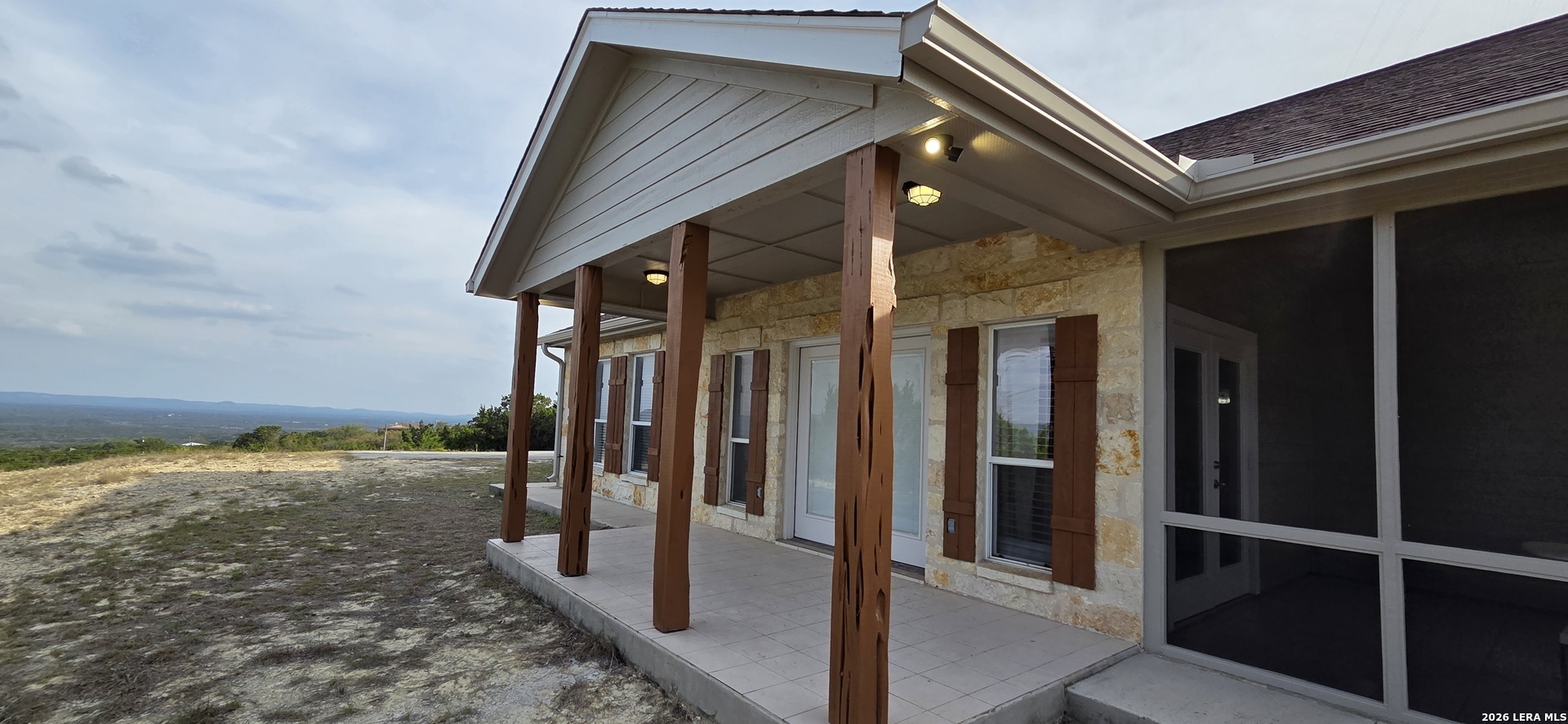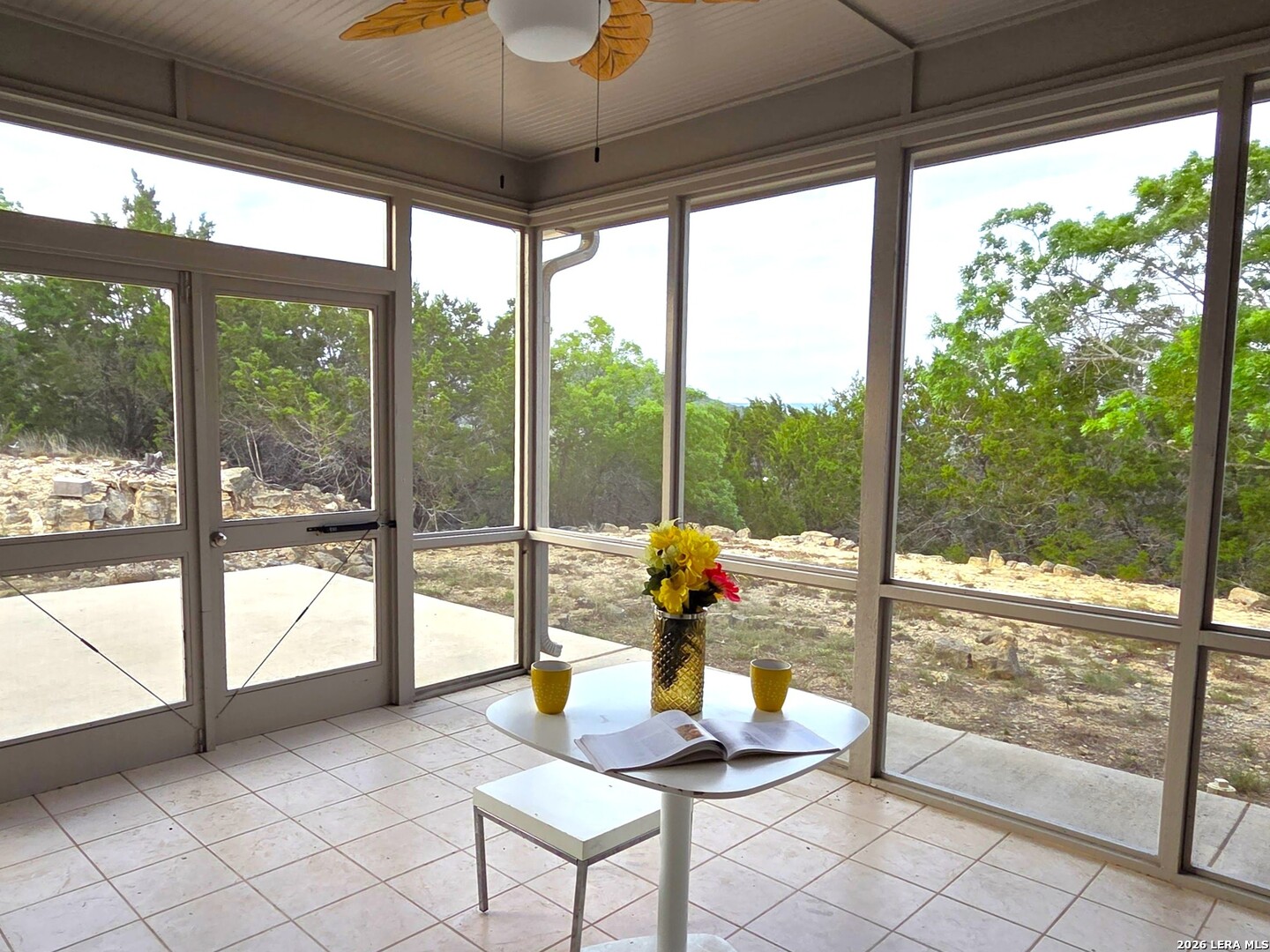 Fantastic view and 5 acres in the hill country! Completely updated and beautiful. Stainless appliances. Upgraded light fixtures. High ceilings. All tile and faux wood flooring. No carpet for easy cleaning. Fresh paint inside and out. 2 inch blinds and window treatments are included. Gutters. Large screened patio. New AC and heat system 2026.
