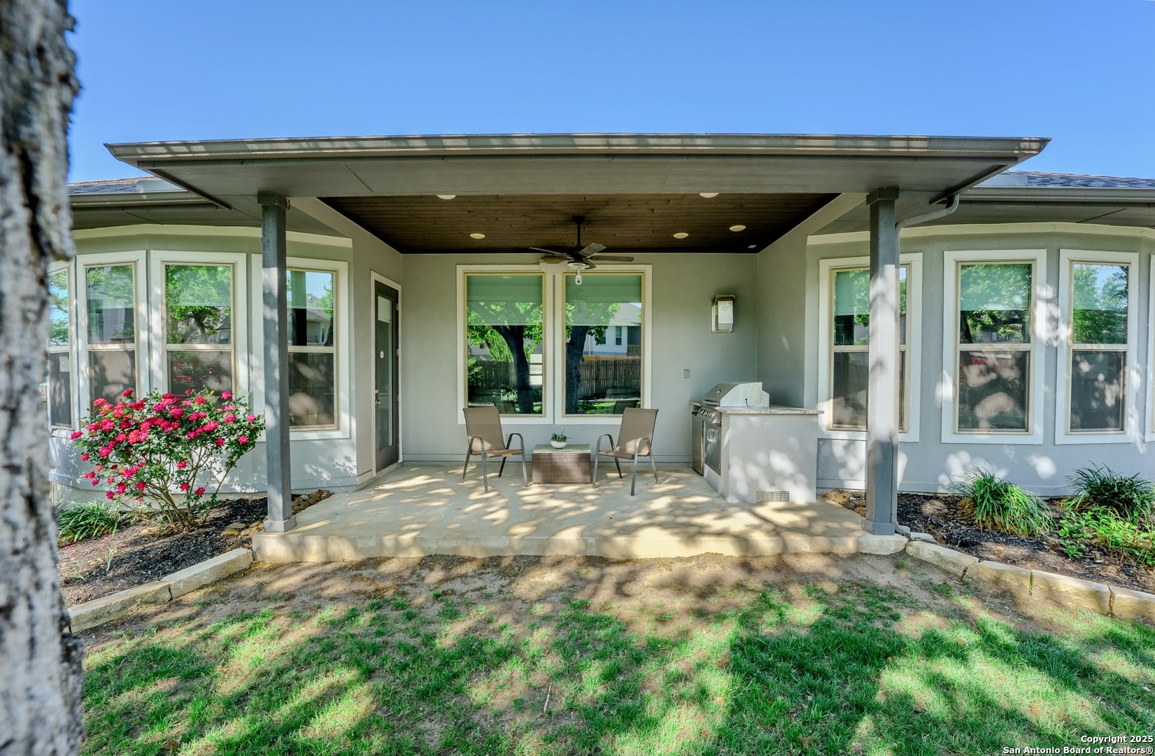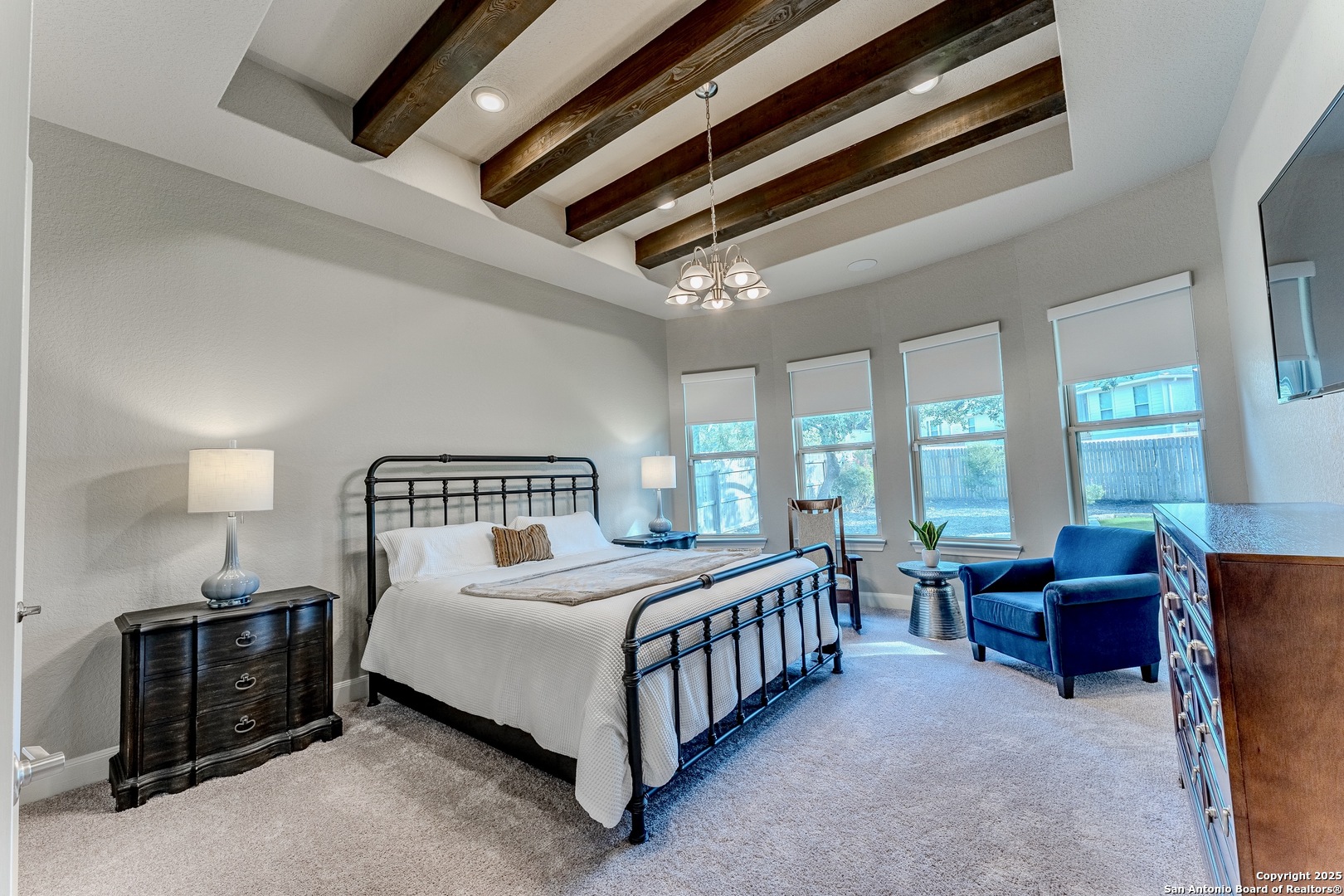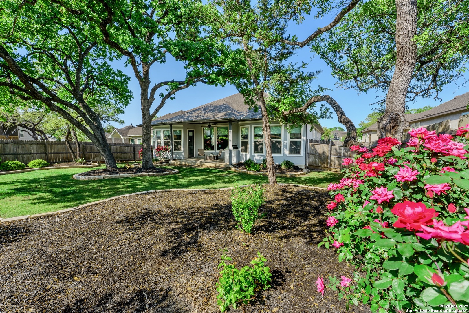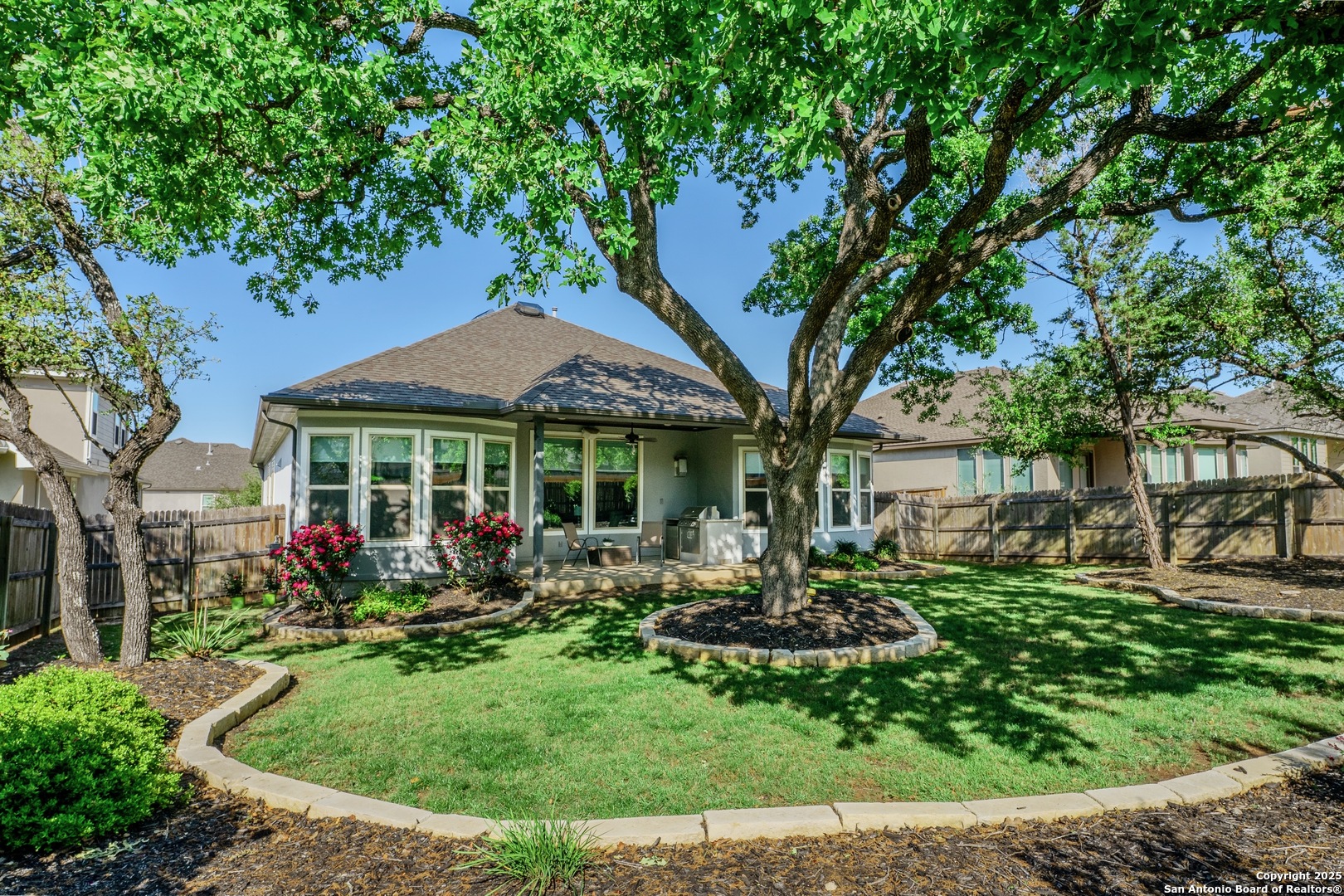 **Elegant**Low Maintenance**Near Fair Oaks Ranch Golf Course**Former Princeton Classics Model Home offers over $100k in UPGRADES** Stunning Single Level is perfect for entertaining and relaxing**Designer-Level Finishes like Beamed Ceilings**Rock fireplace**Gourmet Kitchen with Huge Granite Island, Stacked Cabinets, Chimney-Style Venthood, Wine Bar**Covered Patio with Outdoor Kitchen & Speakers**Retreat Style Primary Suite has Bay Windows & Ceiling Beams** Master Bath is a Spa with Walk-In Shower, Luxury finishes**Study/Office plus Guest-Ready Layout ** 3 Car Garage with epoxy flooring**Come See this today!
