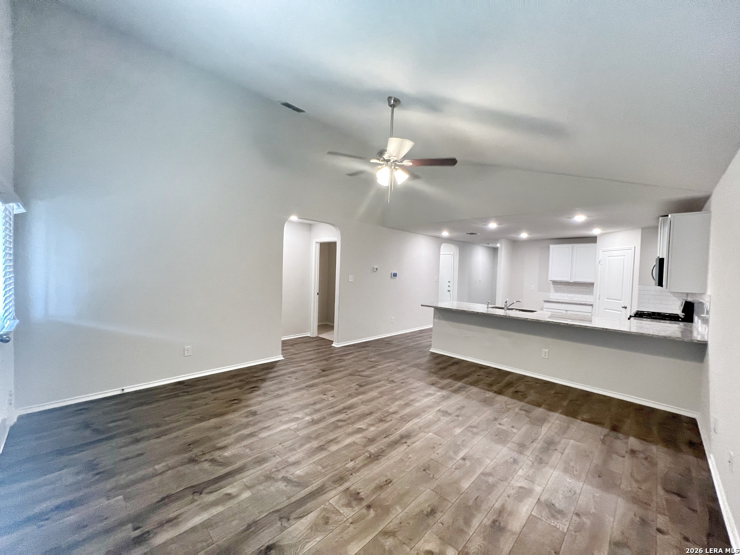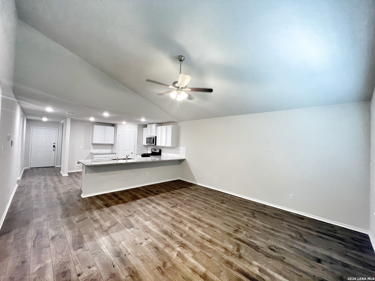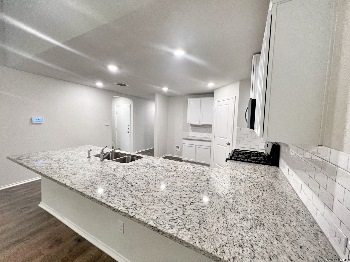 Welcome to this stunning two-story home that offers a perfect blend of style, comfort, and modern living. Step inside and be greeted by the freshly painted walls that exude a sense of freshness and elegance throughout. With 4 bedroom, 2.5 baths, this home provide ample space for both daily living & entertaining. As you enter through the front door, you'll immediately notice the thoughtfully designed separate dining area, located to the left of the entryway. The combination of the open kitchen with a breakfast bar, granite countertops, a gas stove/range, and its connection to the living room with 9ft ceilings & laminate flooring, creates an inviting & functional space for both culinary pursuits & relaxation. The private main bedroom suite is located downstairs off the LR & offers dual vanities, separate tub & shower, ceramic tile flooring, walk-in closet w/shelving. A 1/2 bath is located off the LR & an oversized utility room is located off the kitchen by the stairs. The second floor includes a spacious game room or office area, a second full bath, & three large secondary bedrooms with walk-in closets. Step into the generous size backyard, combined with the inviting covered patio, creates an outdoor space for relaxation, entertainment and enjoying the beauty of nature. Neighborhood amenities include: pool, splash pad, fitness center, sports court, dog park & nature walk trails. Located off Hwy 281, near FM 1863, easy access to shopping, popular local restaurants, entertainment, and more. This home is a MUST SEE. Photos are from when home was vacant. Home will be available for move in May 1, 2026