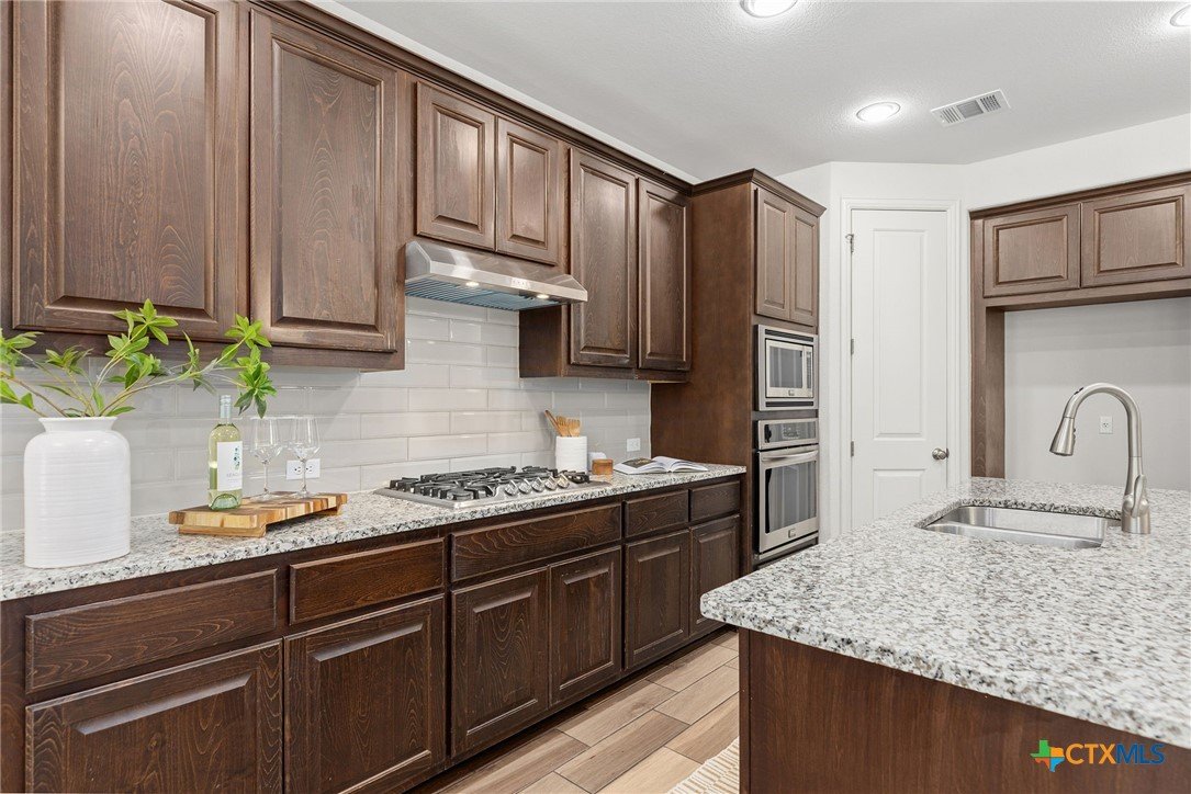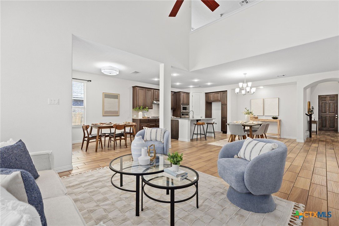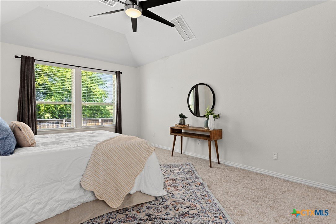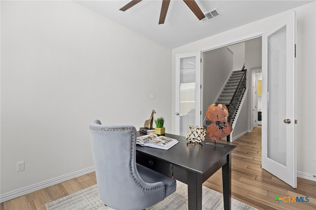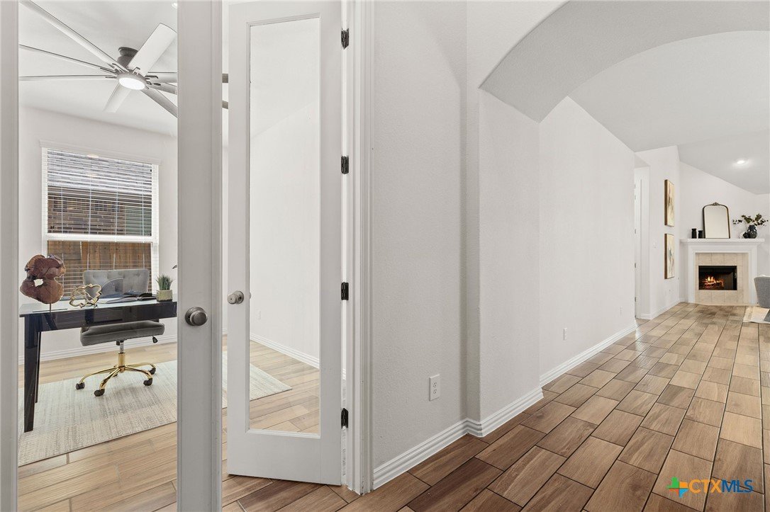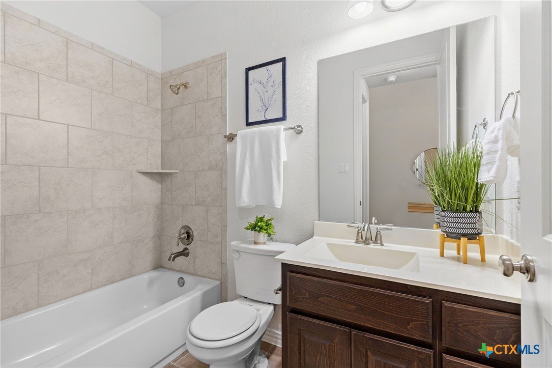 Welcome home to your suburban retreat in Round Rock’s Paloma Lake community. As guests enter, a soaring, light-filled foyer creates a warm first impression. The nearby guest suite features a spacious bedroom & bath, ideal for multigenerational living. Continuing, a private office adds function & elegance for working from home. Rich wood-look tile floors lead into the heart of the home, where a large formal dining space & cozy breakfast nook flow seamlessly into the great room, making entertaining effortless. The kitchen is built for both everyday living and hosting, with an oversized island, abundant counter space, a generous pantry, & storage throughout. The living room features gas-starter fireplace & wall of windows overlooking the backyard. Outside, enjoy an oversized covered patio, paver extension, & no backyard neighbors. Back inside, the primary suite offers room for a sitting area or home gym, while the ensuite bath features dual vanities, a dressing table, an oversized walk-in shower, and a spacious walk-in closet. Upstairs, a generous game room provides flexible living space, along with two additional bedrooms, including one with a built-in Murphy bed. The secondary bath includes double sinks and a private water closet with a shower. The downstairs laundry room includes a washer and dryer, with additional storage tucked under the stairs. The garage features a water-softener loop, an extended pad, and built-in shelving. You are a one-minute drive to the resort-style pool, park, and playground, with easy access to trails leading to the lakeside amenity complex, which features fishing, pickleball, sand volleyball, basketball, a splash pad, and playgrounds. You’re within 15 minutes of three HEB locations, about 4 minutes to medical care, and 15 to 20 minutes from shopping and dining along University Drive and at Stonehill. Quick access to Toll 45 and 130 makes commuting simple while keeping you connected to all that the Greater Austin area has to offer.
