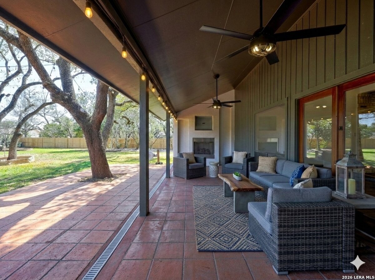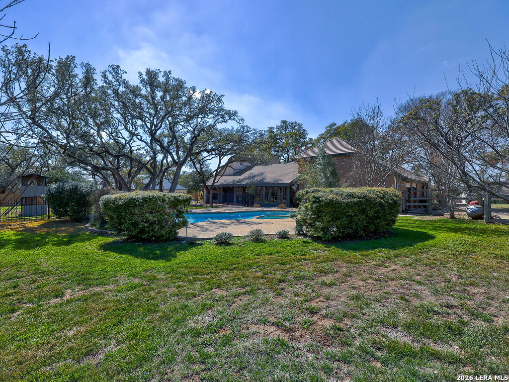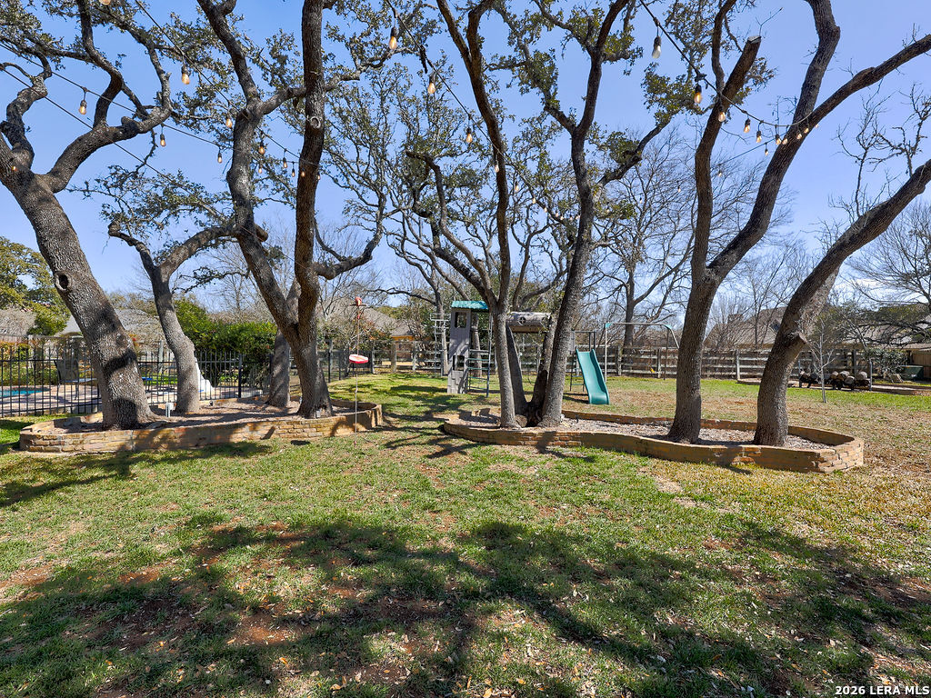 Discover the perfect blend of rustic charm and modern luxury in this beautifully remodeled mid-1980s home situated in the prestigious, 24/7 guarded gate community of Raintree Woods Subdivision in Fair Oaks Ranch, Texas. Nestled on a spacious 1-acre hilltop lot, this 4-bedroom, 3-bathroom residence offers ample room to expand-envision adding tennis courts, a pool house, or a separate detached garage while enjoying panoramic views and privacy. Key features include: Striking rustic farmhouse-style updates throughout, highlighted by solid hickory wood floors (not engineered), vaulted ceilings, and a gourmet kitchen equipped with an induction cooktop and two dishwashers for effortless entertaining. A serene heated spa and pool, fully retiled and replastered in 2025, creating an ideal backyard oasis. Durable concrete tile roof and new garage doors with jackshaft openers for added convenience and curb appeal. Thoughtful exterior enhancements like front and rear landscaping lighting that accentuate the home's character after dark. A private 2nd-floor balcony off the master bedroom, perfect for morning coffee or evening relaxation. Location is unbeatable-just 4 minutes (1 mile) from the renowned Fair Oaks Ranch Country Club, home to two Gary Player-designed 18-hole golf courses offering championship play amid stunning Hill Country scenery. Families will appreciate the K-12 bus stop conveniently located at the corner of Red Bud Hill and Raintree Woods Drive. This exceptional property combines timeless style, recent upgrades, and a prime gated community setting-ideal for those seeking space, sophistication, and resort-like amenities close to home.