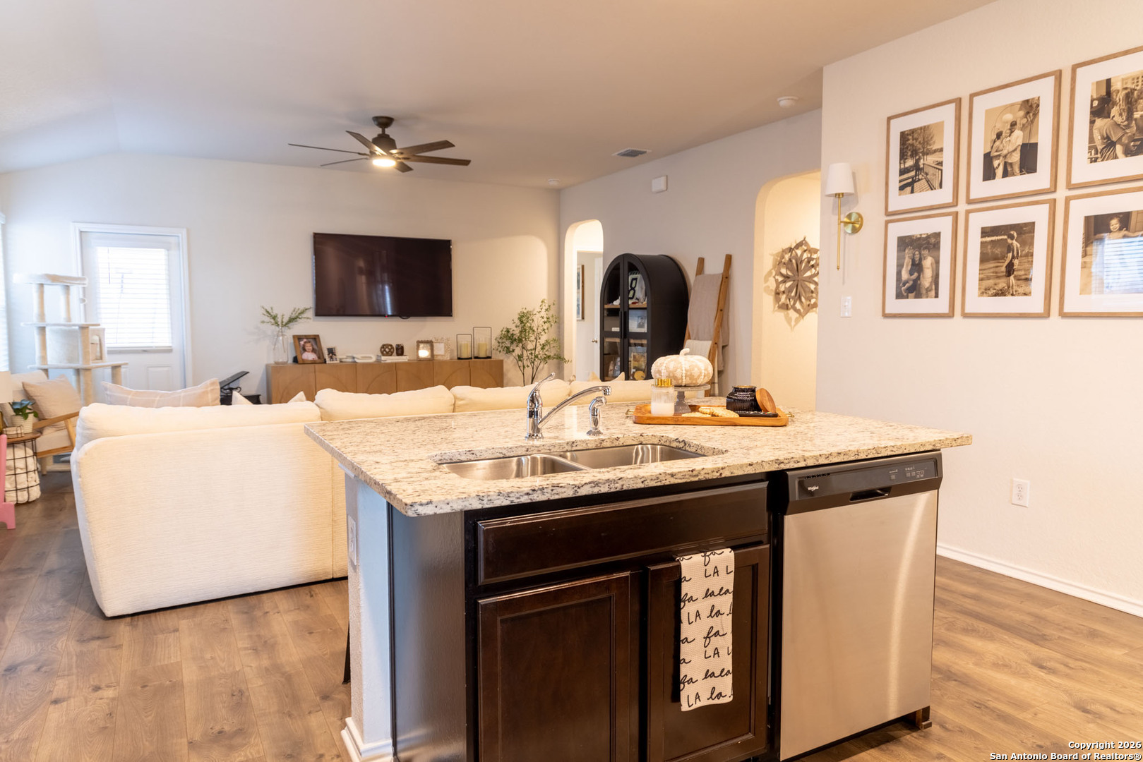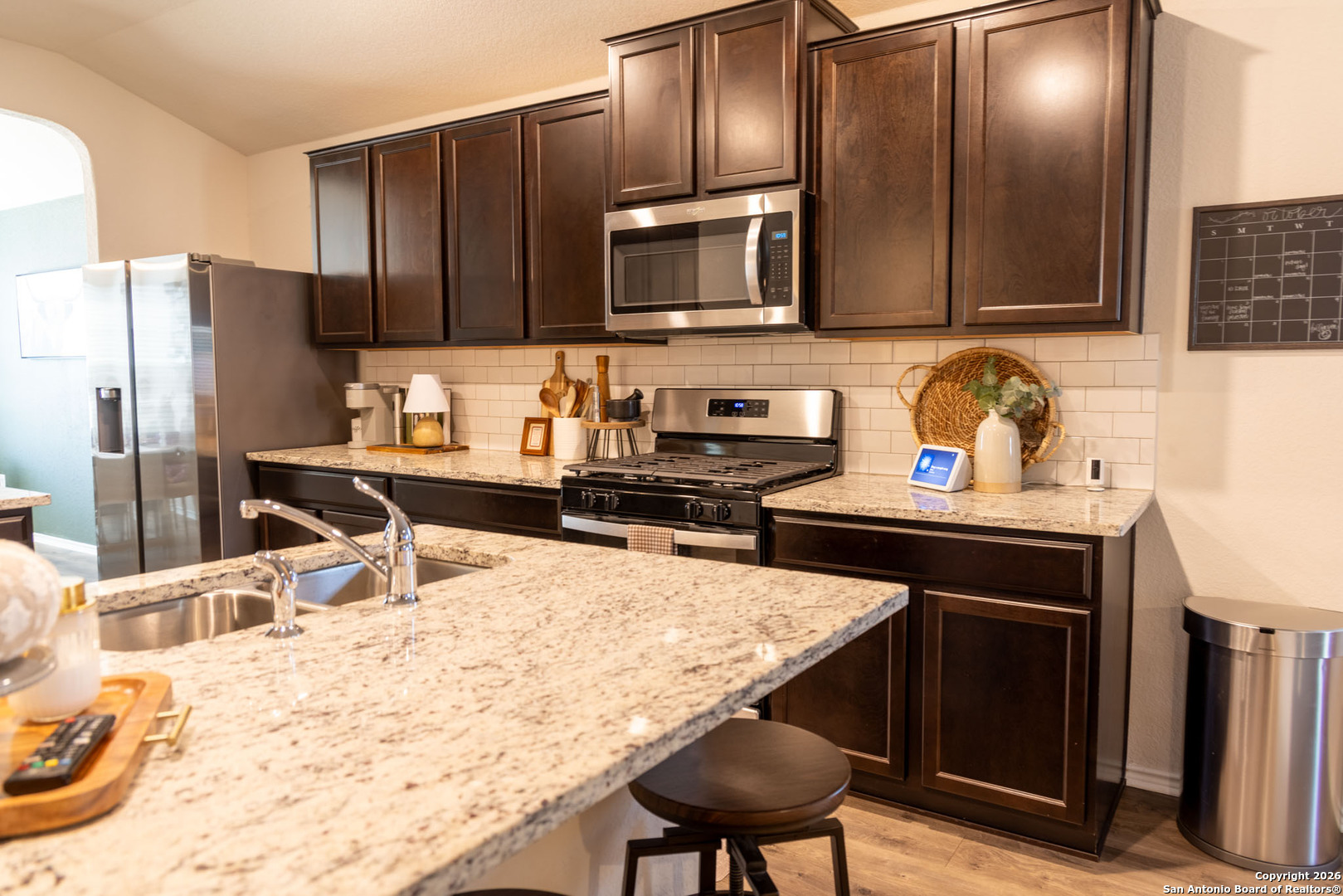 Discover your dream home in the sought-after Copper Canyon Community! This beautifully maintained 3-bedroom, 2-bath home offers comfort, style, and convenience just off the expanded Highway 281. Enjoy a vibrant neighborhood with top-tier amenities including a fitness center, resort-style pool, playground, clubhouse with outdoor grills, and scenic walking trails. Inside, the open floor plan connects the living and den areas to a chef-inspired kitchen featuring a large island, coffee/bar nook, and stainless steel appliances. A versatile formal dining room doubles as a home office. The spacious primary suite includes a walk-in closet and private bath with tub and separate shower. Don't miss this exceptional opportunity in Copper Canyon!