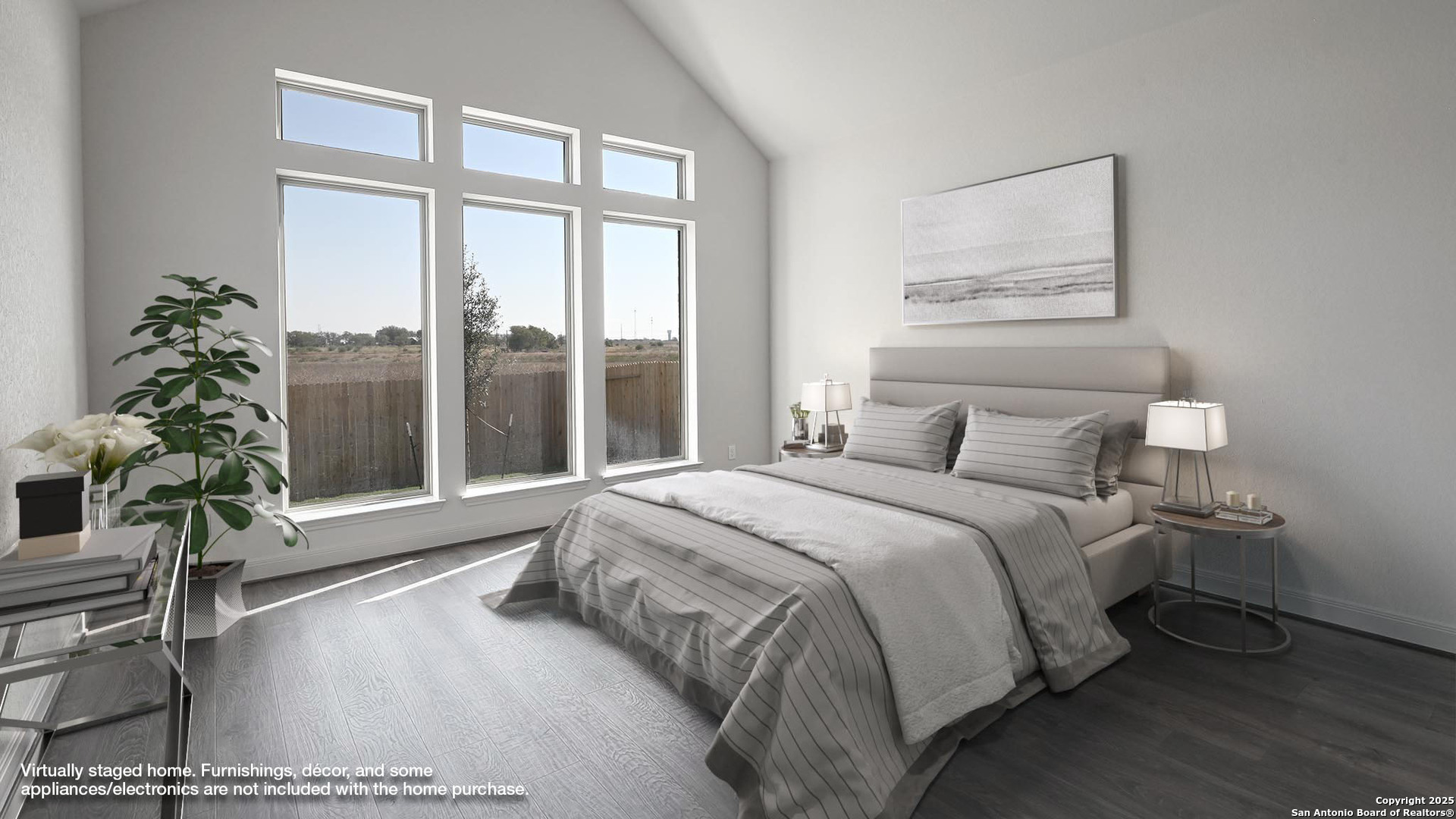 Step off the front porch into the extended entryway with a 12-foot rotunda ceiling. Off of the main hallway are two secondary bedrooms which offer full bathrooms and walk-in closets. Adjacent is a private guest suite featuring a full bathroom, walk-in closet and linen closet. As you enter into the vast family room you are greeted by a fireplace and wall of windows. French doors open into the game room which is located off of the dining area. The kitchen hosts an island with built-in seating, ample counterspace, and a walk-in pantry. The primary bedroom offers three large windows. The primary bathroom hosts dual vanities, a garden tub, large glass enclosed shower, and two walk-in closets. Covered backyard patio. The mud room and utility closet are off of the three-car garage.