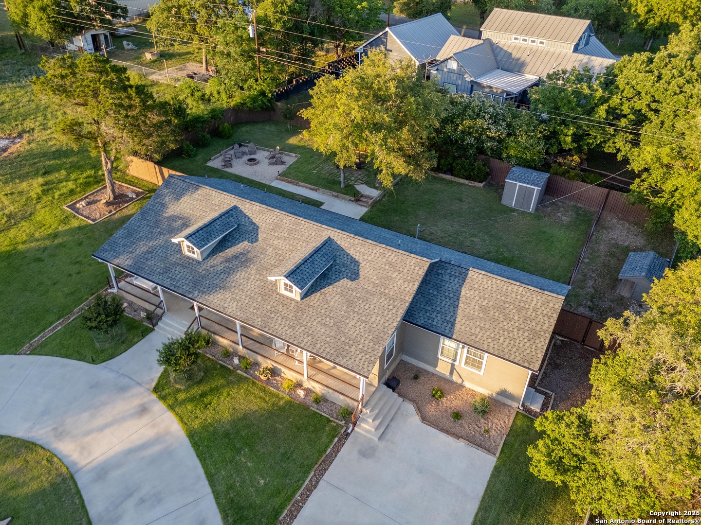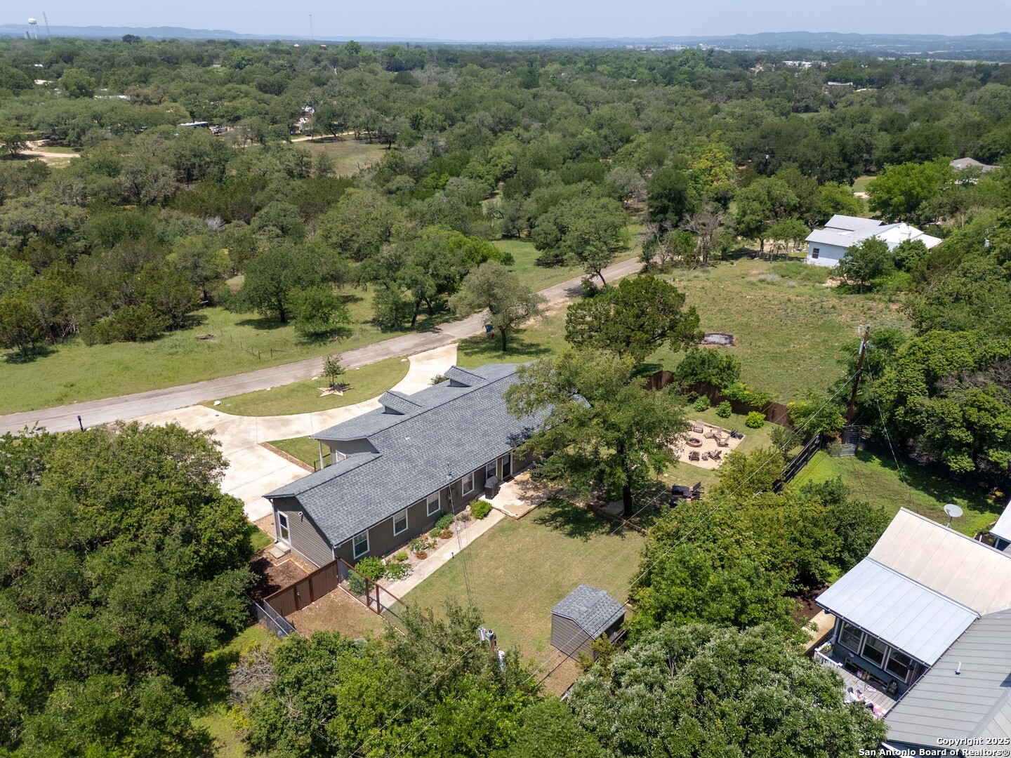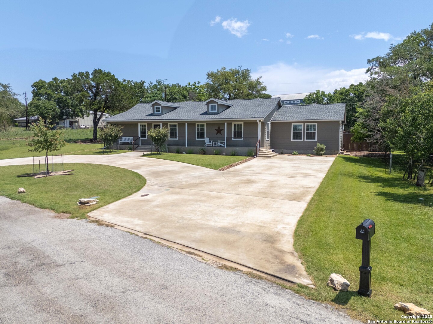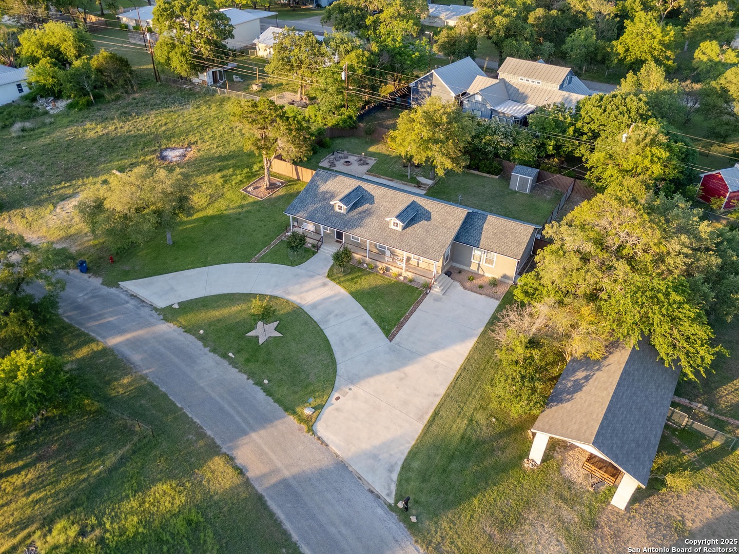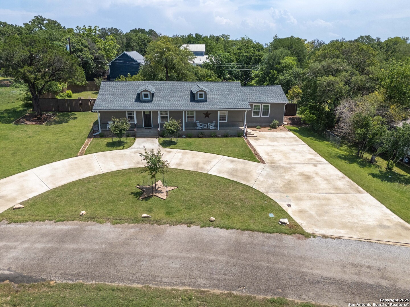 Immaculate Texas Hill Country Retreat with Smart Home Features & Stunning Outdoor Living Nestled just outside of Bandera's city limits. This beautifully updated 4-bedroom, 2-bathroom home on .379 acres is the perfect blend of modern comfort and Hill Country charm. Offering smart home features, a spacious split floorplan, and impeccable seller upgrades, this home is truly a standout. Inside, the living room is a cozy yet spacious, designed for both relaxation and entertaining. With vaulted ceilings and stunning touches like a gorgeous rock fireplace featuring an electric fireplace insert, this room exudes warmth and character. A stylish wall-mounted TV above the fireplace offers the perfect focal point. The shiplap accents add a touch of rustic charm. The chef's kitchen is a true showstopper with quartz countertops, a subway tile backsplash, a hidden reveal stainless sink, a large walk-in pantry/laundry room, and a kitchen bar area-perfect for hosting guests or enjoying a casual meal. The open flow between the kitchen, dining, and living areas creates a perfect atmosphere for gatherings. The primary bedroom suite is a private retreat with vaulted ceilings and an abundance of natural light. A charming sliding barn door leads to the master bathroom, which has been elegantly remodeled with new tile, a dual custom vanity, and a huge custom limestone rock walk-in shower-the ultimate in relaxation and style. The split floorplan also includes a large guest suite with private outdoor access-ideal for visitors or multi-generational living. Additional two bedrooms, both with vaulted ceilings, are versatile spaces that can easily be transformed into an office or workout room. Step outside to find a professionally landscaped yard with new trees, crepe myrtles, and new plantings. Zoysia drought-tolerant grass ensures a lush lawn with minimal upkeep with the new sprinkler system. Enjoy the outdoors with several living areas, including a covered front porch, a firepit area, and a grassy patio with chaise lounges to soak in the sun. There's also a patio just off the kitchen perfect for barbecuing and entertaining guests, as well as a dog run/kennel with a doghouse-perfect for pet owners. Additional features solar-powered motion-sensor pathway lights, new window and gutter screens, and an outdoor storage building. The home's energy efficiency has been enhanced with added blown insulation, while oak trees on the property provide both beauty and shade. For even more space, the adjacent .356-acre lot (Lot #8) is also available for purchase. This lot has been cleared and is ideal for a buffer zone or for future development-offering endless possibilities. This home is move-in ready and offers the perfect combination of luxury, privacy, and convenience.
