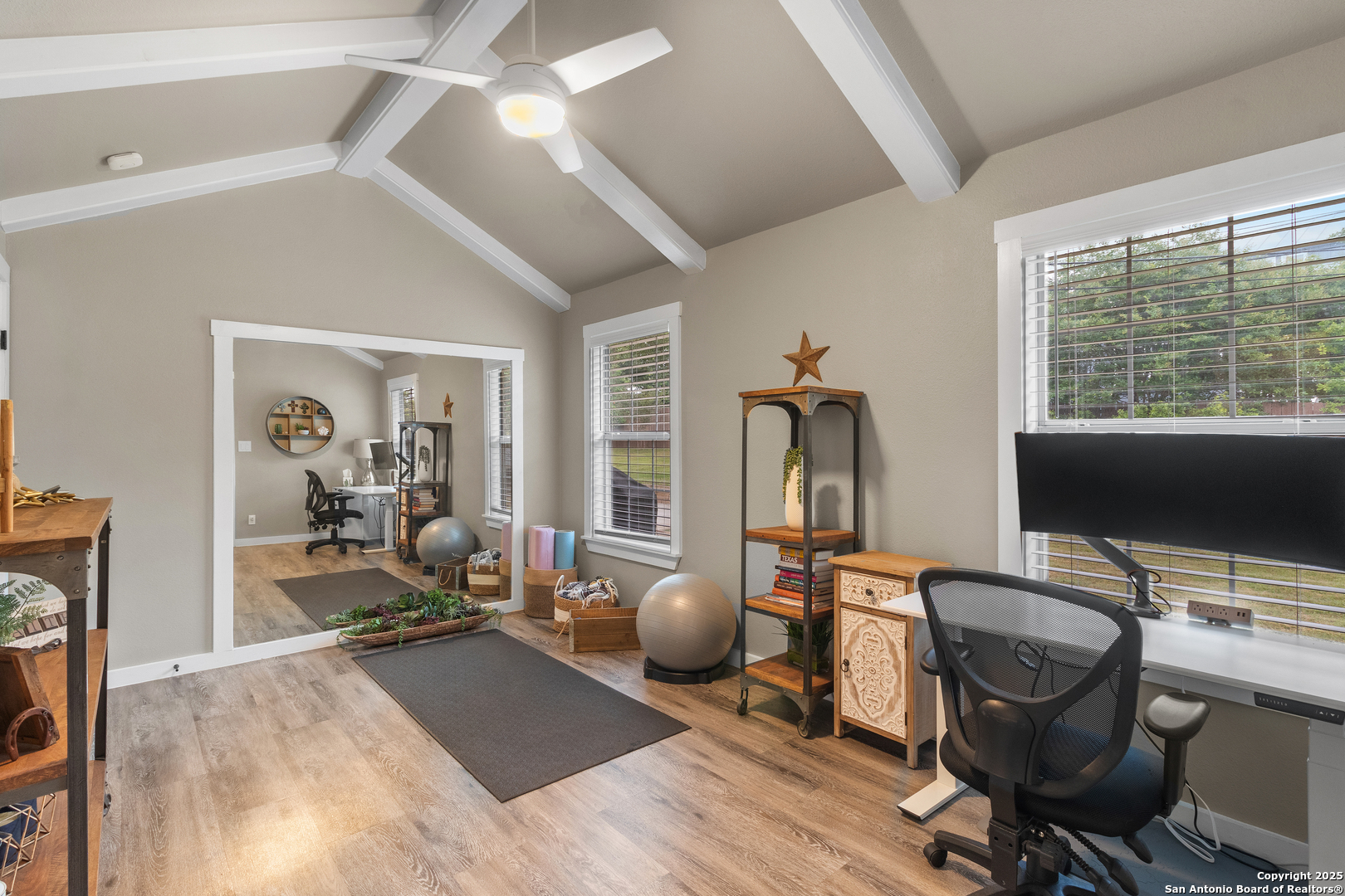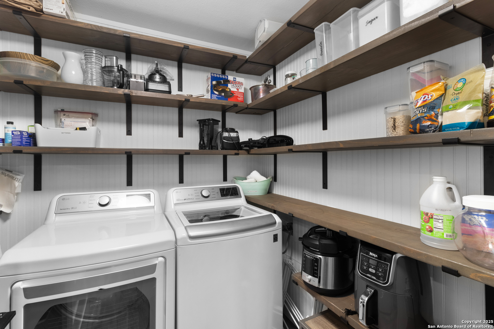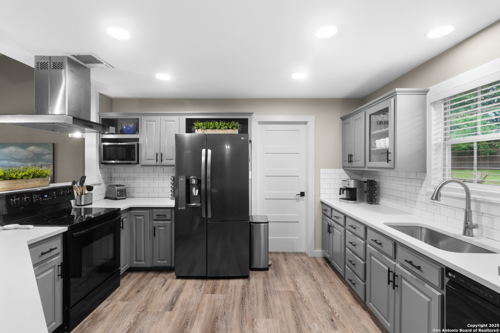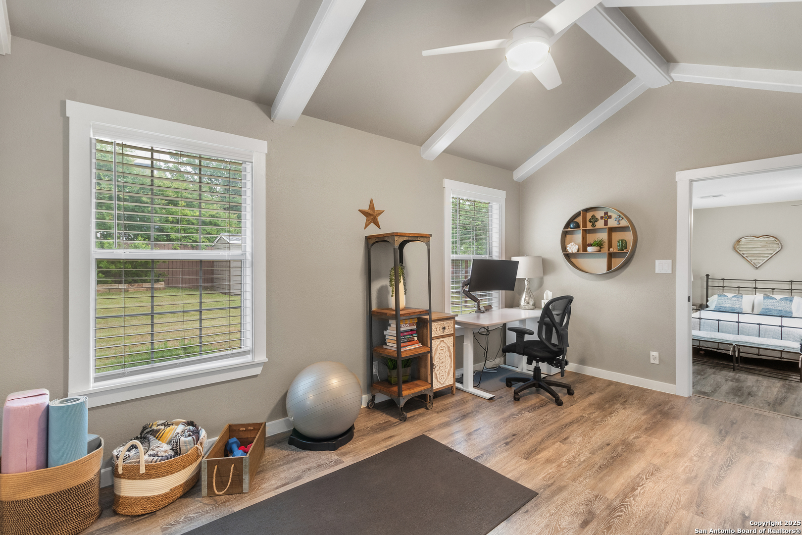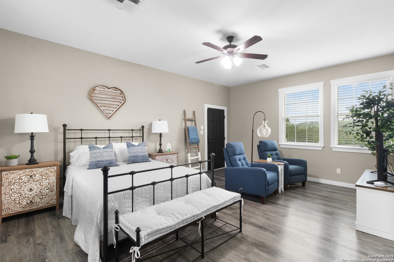 Immaculate Texas Hill Country Retreat with Smart Home Features & Stunning Outdoor Living Nestled just outside of Bandera's city limits. This beautifully updated 4-bedroom, 2-bathroom home on .379 acres is the perfect blend of modern comfort and Hill Country charm. Offering smart home features, a spacious split floorplan, and impeccable seller upgrades, this home is truly a standout. Inside, the living room is a cozy yet spacious, designed for both relaxation and entertaining. With vaulted ceilings and stunning touches like a gorgeous rock fireplace featuring an electric fireplace insert, this room exudes warmth and character. A stylish wall-mounted TV above the fireplace offers the perfect focal point. The shiplap accents add a touch of rustic charm. The chef's kitchen is a true showstopper with quartz countertops, a subway tile backsplash, a hidden reveal stainless sink, a large walk-in pantry/laundry room, and a kitchen bar area-perfect for hosting guests or enjoying a casual meal. The open flow between the kitchen, dining, and living areas creates a perfect atmosphere for gatherings. The primary bedroom suite is a private retreat with vaulted ceilings and an abundance of natural light. A charming sliding barn door leads to the master bathroom, which has been elegantly remodeled with new tile, a dual custom vanity, and a huge custom limestone rock walk-in shower-the ultimate in relaxation and style. The split floorplan also includes a large guest suite with private outdoor access-ideal for visitors or multi-generational living. Additional two bedrooms, both with vaulted ceilings, are versatile spaces that can easily be transformed into an office or workout room. Step outside to find a professionally landscaped yard with new trees, crepe myrtles, and new plantings. Zoysia drought-tolerant grass ensures a lush lawn with minimal upkeep with the new sprinkler system. Enjoy the outdoors with several living areas, including a covered front porch, a firepit area, and a grassy patio with chaise lounges to soak in the sun. There's also a patio just off the kitchen perfect for barbecuing and entertaining guests, as well as a dog run/kennel with a doghouse-perfect for pet owners. Additional features solar-powered motion-sensor pathway lights, new window and gutter screens, and an outdoor storage building. The home's energy efficiency has been enhanced with added blown insulation, while oak trees on the property provide both beauty and shade. For even more space, the adjacent .356-acre lot (Lot #8) is also available for purchase. This lot has been cleared and is ideal for a buffer zone or for future development-offering endless possibilities. This home is move-in ready and offers the perfect combination of luxury, privacy, and convenience.