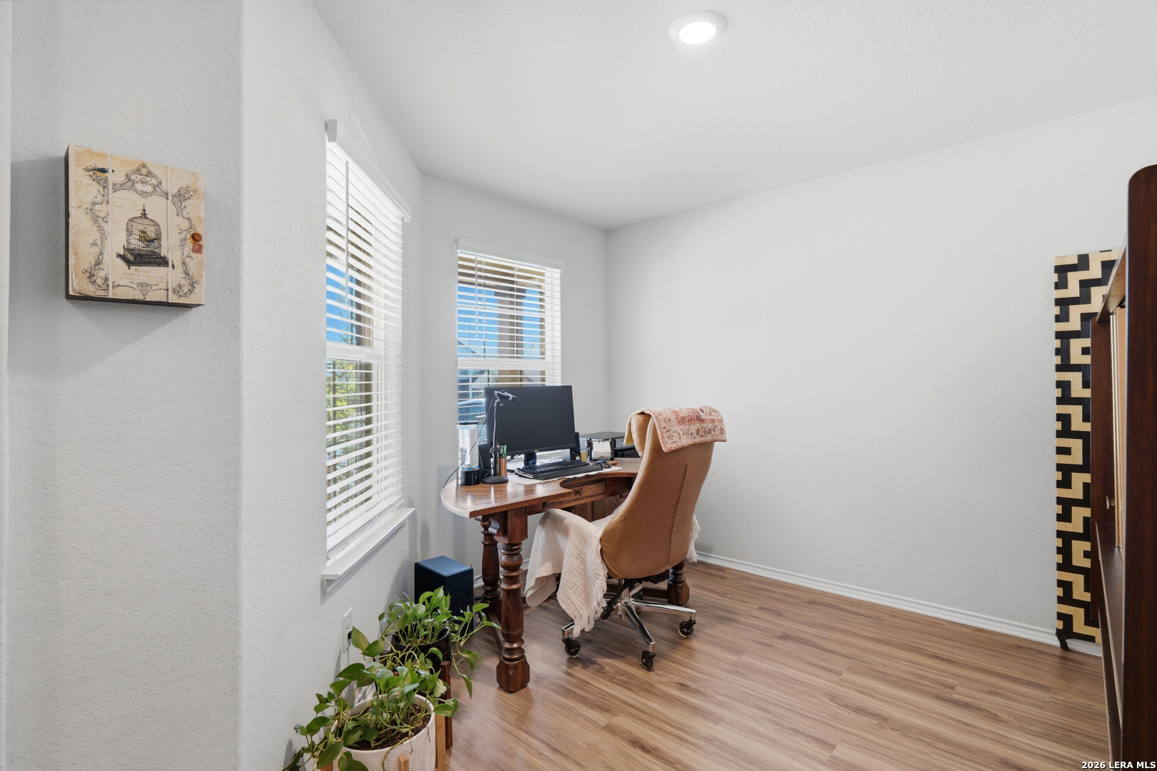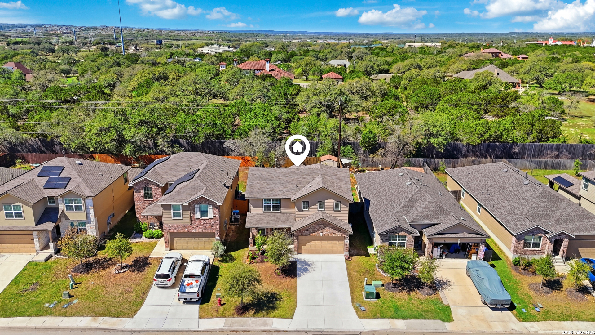 Welcome to this beautifully designed home nestled in the highly desirable Copper Canyon community in Bulverde. Built in 2019, this spacious two-story residence offers four bedrooms and two and a half bathrooms with a thoughtfully designed layout that is perfect for both everyday living and entertaining. Situated on a desirable greenbelt lot, the home offers added privacy with no direct neighbors behind and peaceful natural views. As you enter the home, you are welcomed by a versatile space that can serve as a formal dining room, home office, or flex area depending on your needs. The main living area opens seamlessly to the kitchen, creating a comfortable and inviting environment filled with natural light. The kitchen offers ample cabinetry, generous counter space, and a gas range, perfect for those who enjoy cooking and entertaining. Conveniently located on the first floor, the primary suite provides a private retreat along with a well-appointed ensuite bathroom and walk-in closet. A half bath is also located downstairs for added convenience for guests. Upstairs, you will find three additional bedrooms, all generously sized and each featuring walk-in closets, providing plenty of space and storage for family members or guests. The second floor also features a large loft area that offers incredible flexibility. This expansive space can easily serve as a second living room, game room, media space, playroom, or home office, making it the perfect bonus area for relaxing or entertaining. Step outside to enjoy the spacious backyard that backs to the serene greenbelt, providing privacy and no back neighbors. The outdoor space features a covered patio that is perfect for relaxing evenings or weekend gatherings, along with a storage shed for added convenience. Residents of Copper Canyon enjoy access to fantastic community amenities including a neighborhood pool, playground, and recreational areas. One of the unique benefits of this community is the convenience of having a middle school located right within the neighborhood. The home is also ideally located with easy access to Highway 281, making commuting to San Antonio and surrounding areas simple and convenient. Families will appreciate the highly regarded schools and the benefit of the area's low property taxes. This home offers the perfect combination of comfort, privacy, and convenience in a beautiful Hill Country setting. Don't miss the opportunity to make this wonderful home your own, schedule your private showing today.