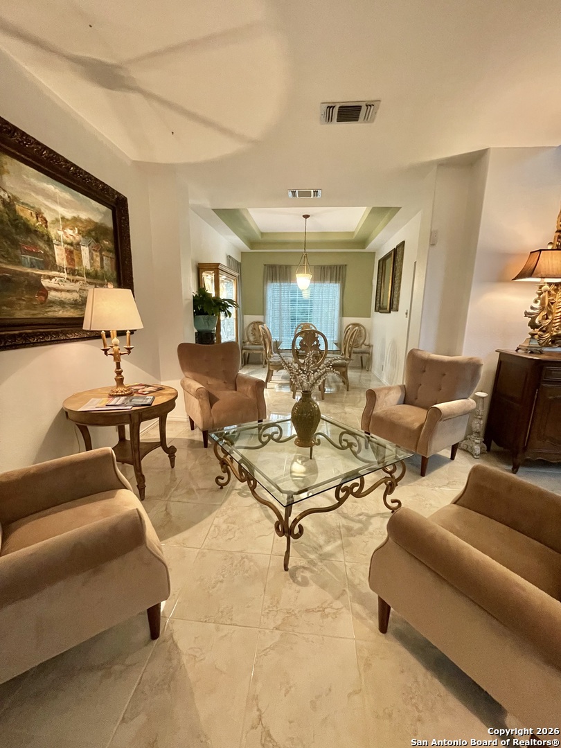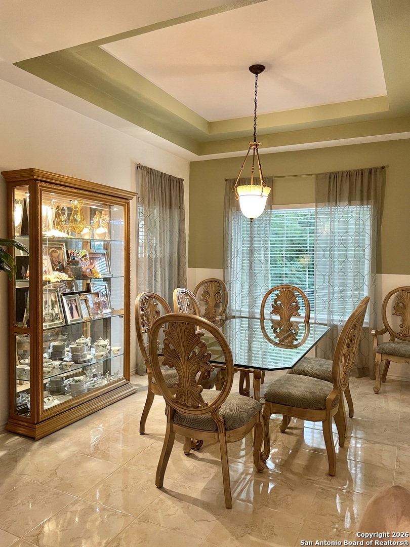 One with nature on this property that backs up to a greenbelt. The greenbelt adds privacy and nature views. The current owner states that the back patios are their "favorite room" Cozy family room with fireplace open to the kitchen and breakfast room. New windows throughout in 2023. New stove, dishwasher, microwave and refrigerator in 2023. Terra Bella is a lovely, quiet no through street. Large covered patio in back plus an additional lower level patio, great for entertaining and peaceful bird watching. Formal living / dining on one side of the kitchen and family room, fireplace and breakfast room are on the other side of the kitchen. The only carpet in the house is on the stairs, Available to start showing around January 20. More photos and measurements to follow. Verify all tax and measurements as what is listed is strictly estimations.