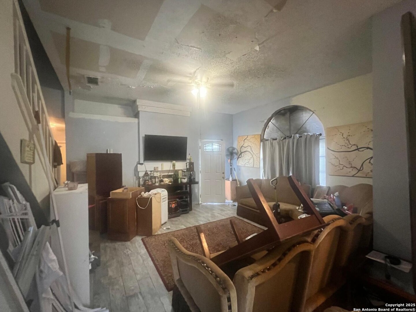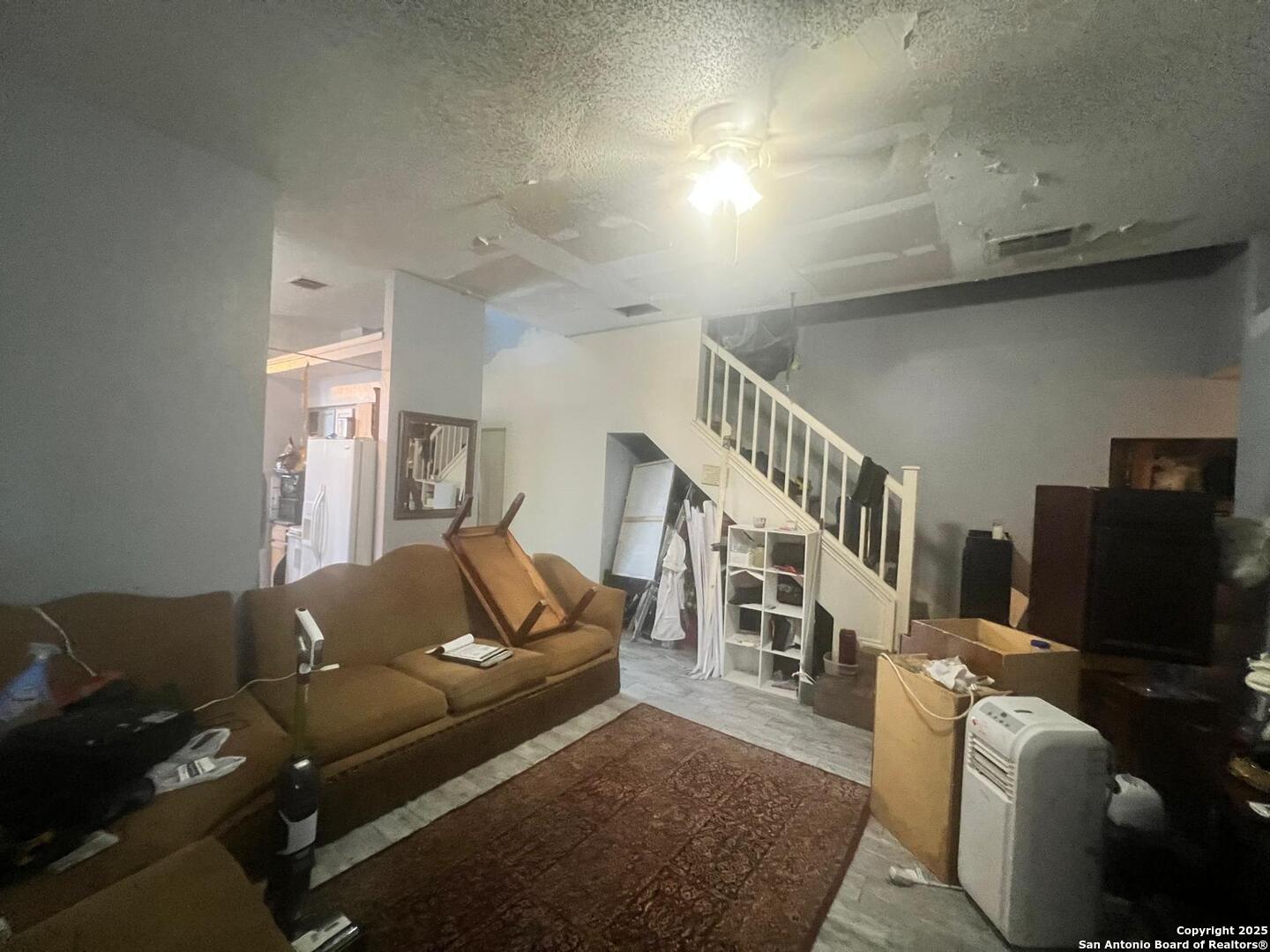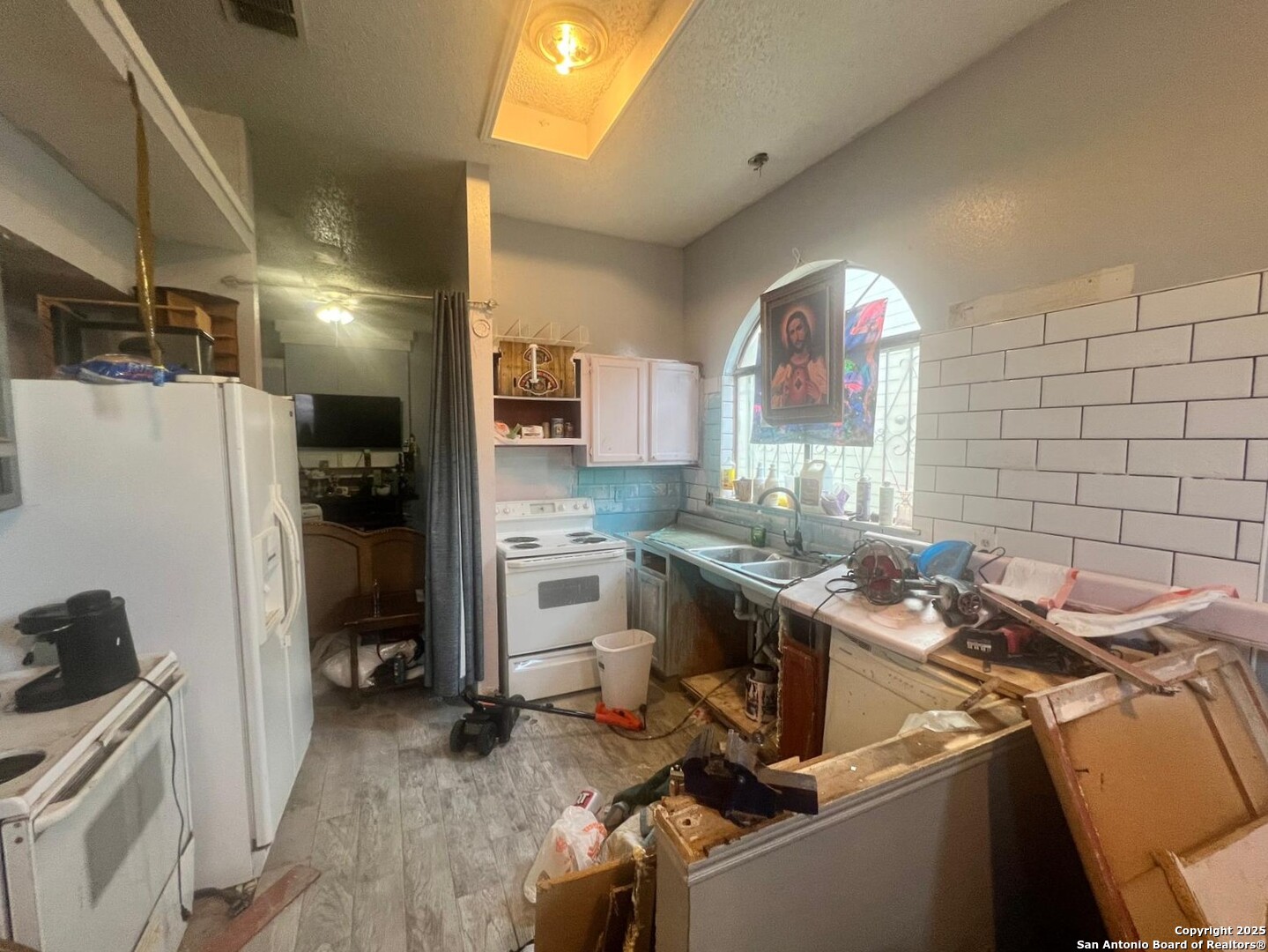 Opportunity knocks in this 4-bedroom, 2.5-bath single family home located in a safe and quiet owner-occupied neighborhood in San Antonio. With 1,443 sq ft of living space on a 5,567 sq ft lot, this property is full of potential and just needs your finishing touches. Tile floors downstairs and wood upstairs, stainless steel appliances, impact-resistant windows (partially updated), and a 2017 roof. Cabinet installation needed to complete the kitchen. Delivered vacant at closing.