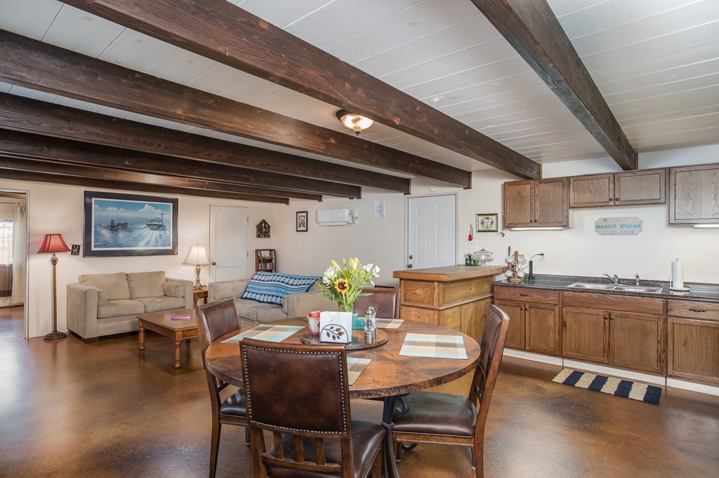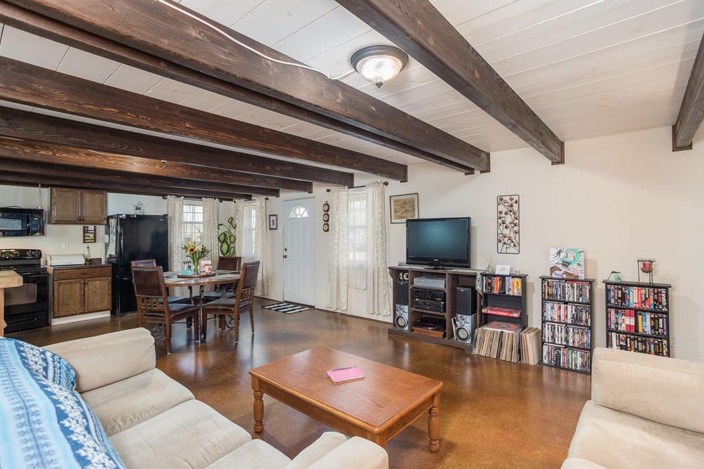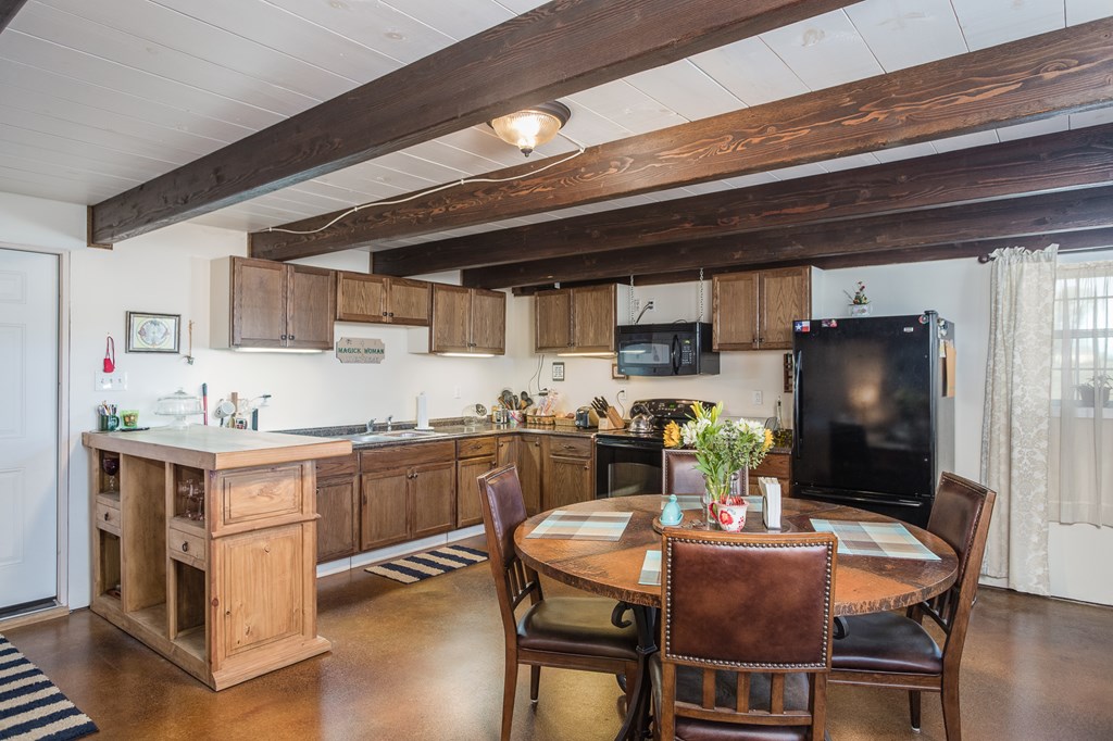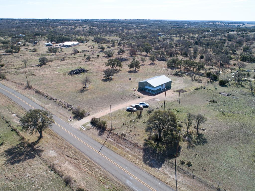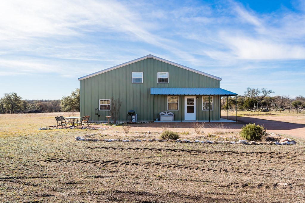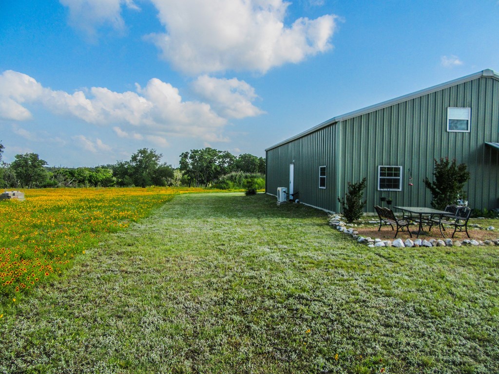 This is a lovely, rustic look 1500 sq ft living area, 2-3 bedrooms, 1.5 bath energy efficient bardominum with a 1600 sq. ft attached fully insulated and lit shop with a heavy concrete floor and large shop doors that can accommodate an RV or other large equipment. The building could also easily accommodate living space expansion. Lots of built in shelving for storage as well. Well and septic both licensed and the well features a double water filtration system! This property is fully fenced and under Bee Keeping Ag-Exemption! An exceptional property and great location. Drone video available! The property is beautiful in the spring with an abundance of yellow wild flowers; See updated pics! HVAC is Mini Split systems installed June 2018. One upstairs & one downstairs for maximum efficiency!