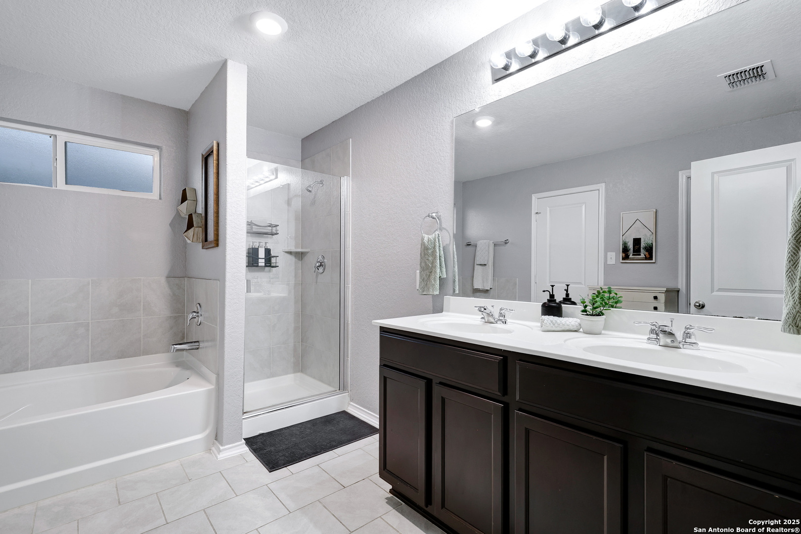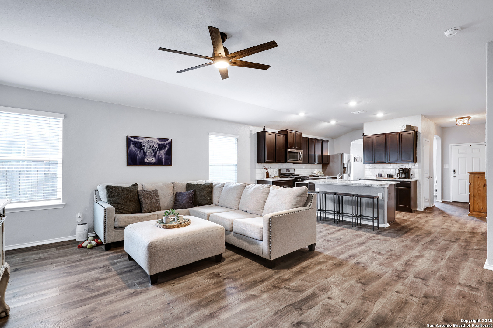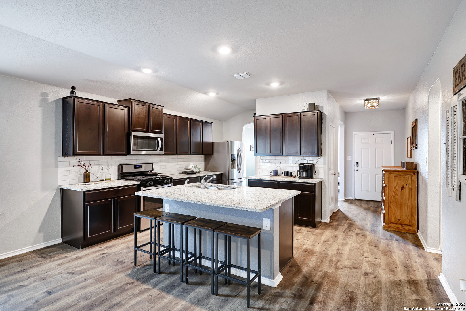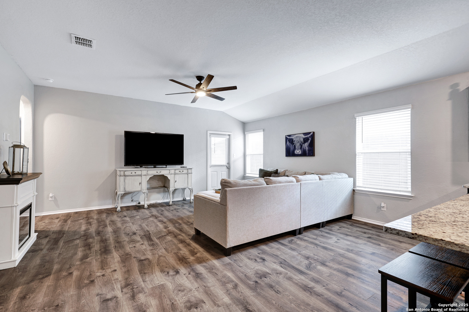 This charming 3bedroom, 2bath home offers both style & functionality. The versatile formal dining room can easily serve as a home office, creating flexibility to fit your needs. Designed w/ an open floor plan, this home boasts luxury vinyl flooring throughout the main living areas, blending durability w/ modern appeal. The kitchen is the heart of the home, featuring a large breakfast bar, granite countertops, stainless steel appliances, & gas cooking. The private primary suite is separate from the secondary bedrooms & includes a walk-in shower, a soaking garden tub, double vanity & walk-in closet. Enjoy the benefits of a vibrant community w/ access to a neighborhood pool, splash pad, & playground!