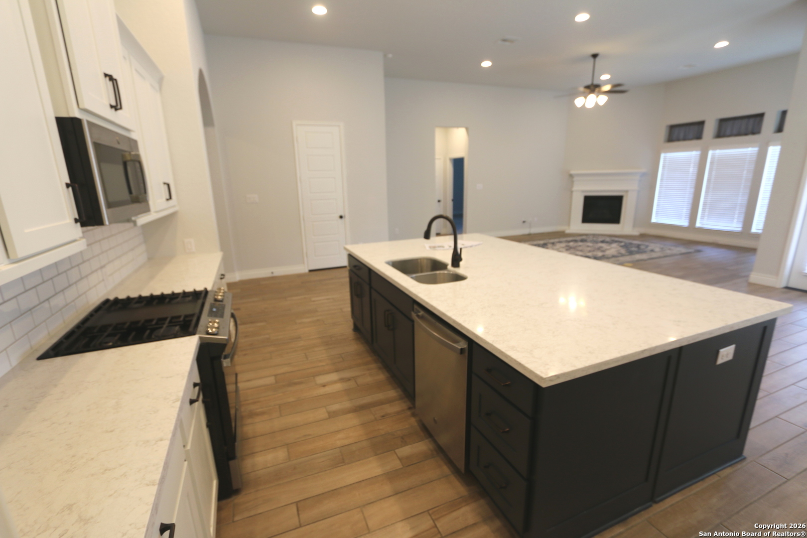 ......"Very Clean" 5-Yr Old Nearly 3000sf "SINGLE STORY" Perry Built Rock Faced Hm w/Hardi-Plank Concrete Siding... 4-LG Bd's (2-Possible Main Bd Suites as they BOTH have their Own Ba & Walk in closet) and the other 2-BD's have a Jack & Jill Bathroom between them PLUS a 1/2 Ba in Hallway..PLUS a Study/Gm /or Media Rm w/French Doors,3.5 Total BATHROOMS & Lots of Extras' on a Fully Landscaped Nearly 1/4 Acre lot w/Privacy Fenced Backyard that has an Huge Approx 42x10 L-Shaped Covered Patio/Outdoor Living Area w/tiled flooring that Faces East "Thus no Late Afternoon Sun in the Backyard'....Hm has 12' Tall Ceilings..8' Tall doors..Upper Transom Windows for Natural Lighting...Natural Gas for Tankless Water Heater,Fireplace,Heat & Cooking...Whole House Water Filter,Softner,Insulated Garage Door..Lots of Storage Closets,Art Niches,Wood Looking Plank Style Flooring,Lots of Ceiling Fans & Recessed Lighting,Partial Rain Gutters,Rain Bird Sprinkler Sys...Very Open & Bright Floorplan....Spacious kit has Extra Lg Quartz Island Kit w/42" Sink,42" Tall Cabinets,Tiled Backsplash,Frig & Walk in Corner Pantry....Main Ba has 2-Sink Vantities,Lg Soaking Tub,Tiled Walk in Shower & 2-Closets,....Radiant Barrier Roof Decking & Roof Ridge Vents...Located in the sought after Navarro School Dist...Guadalupe Co...Low 1.98% tax rate...Hoa dues are only $250 a Yr..Call 4 Detailed Packet of Info to include Floorplan/Survey & Tax Info..AGAIN Very Clean Home that Displays a Ton of TLC Thru-Out....& Pride of Ownership...Note: Staged Pictures w/Furniture