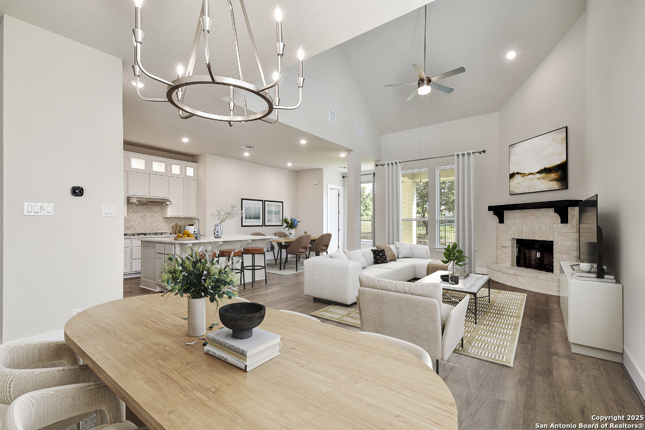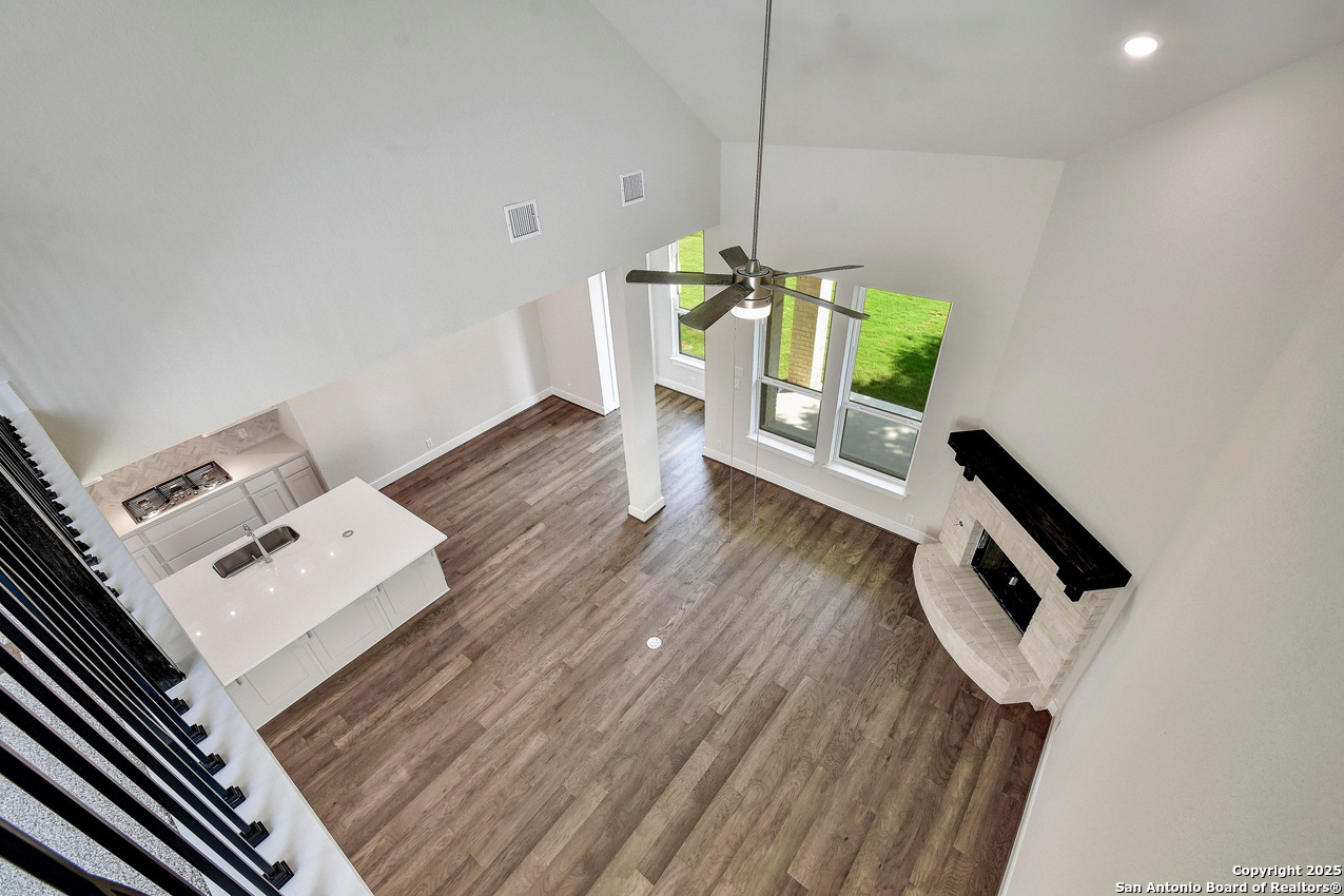 This spacious Highland home boasts open living space with soaring ceilings and generous windows. Downstairs, you will find a separate office and ample storage throughout. Relax in the family room with a cozy fireplace, or upstairs with a game room and entertainment room. This home only shares fencing with one neighbor as it has a side and rear open space! The details are well-appointed, with two-toned kitchen cabinets and built-in appliances, wood flooring in the downstairs living areas, and a metal spindle stairwell. Too many upgrades to list! Come see this beautiful home.
