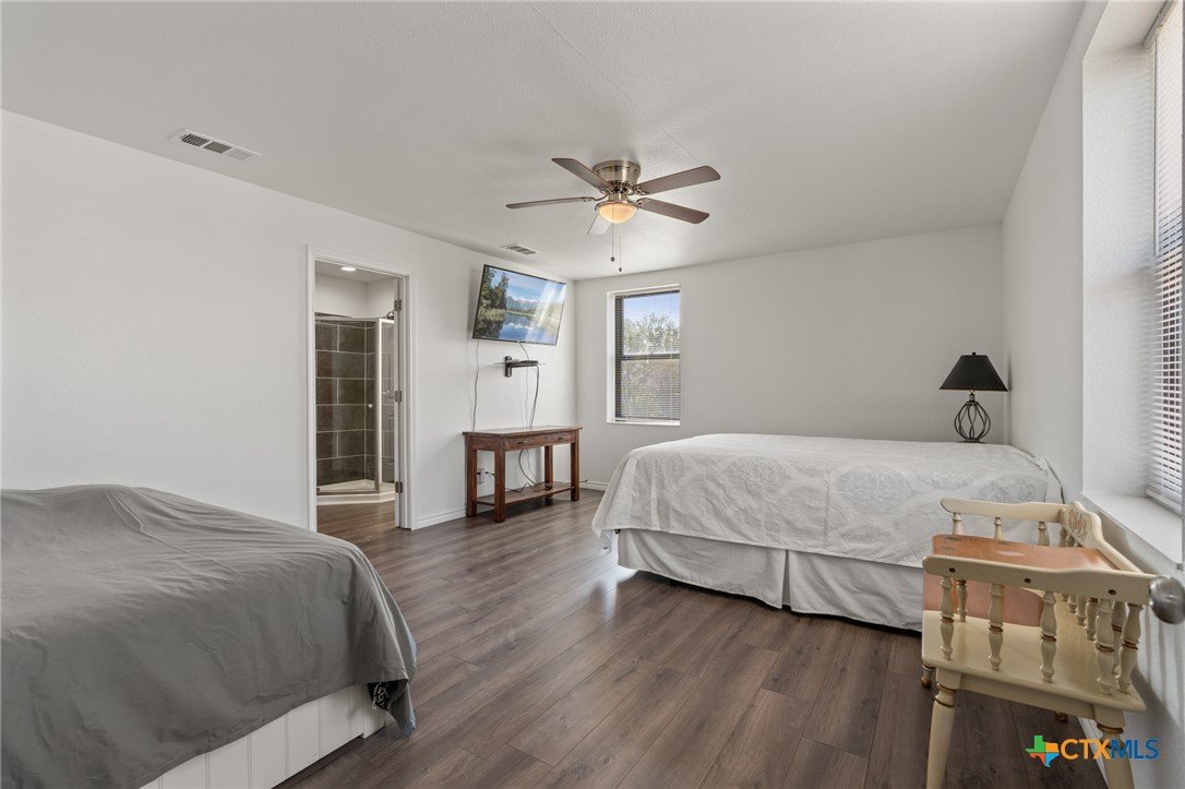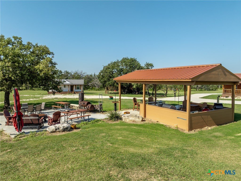 617.69 acres located on FM 1241 just west of Purmela in Coryell County. Cow House Creek forms the southern boundary of the property with approx. 4,400 ft of beautiful rock-bottom frontage. The land offers a 160 ft elevation change with rolling terrain, scenic views, bluffs, ravines, and seasonal branches. About 35 acres are farmable, and the property has 4 stock tanks and 3 water wells, 2 with solar power. The ranch has excellent improvements. The main home is a 3 BR 2.5 BA cabin built in 2022 with approx. 1,400 sq. ft., a front porch, and a detached 2-car garage. Additional lodging includes a 1 BR 1 BA cabin, two small cabins each with bathrooms, a nostalgic camper trailer, and a tree house for kids or grandkids. A central kitchen/gathering area, a outdoor kitchen, men’s and women’s restrooms with showers and A/C, making it ideal for family or group events. The main workshop includes 2 storage rooms with 2 BR 2 BA guest suites above. Other outbuildings include a 24x12 storage, 30x24, and 40x60 metal building. There is also a chicken coop and garden area. This property is designed for both recreation and relaxation. It offers multiple homesites, excellent water, and diverse topography with open pasture, wooded areas, and creek frontage. It is perfect as a weekend get-away, hunting and recreation retreat, or future forever home. Centrally located, the ranch is approx. 20 minutes from Evant, Hamilton & Gatesville, 1 hour from Waco, Temple, Stephenville & Brownwood, 1.5 hours from Austin, and 2 hours from Fort Worth.